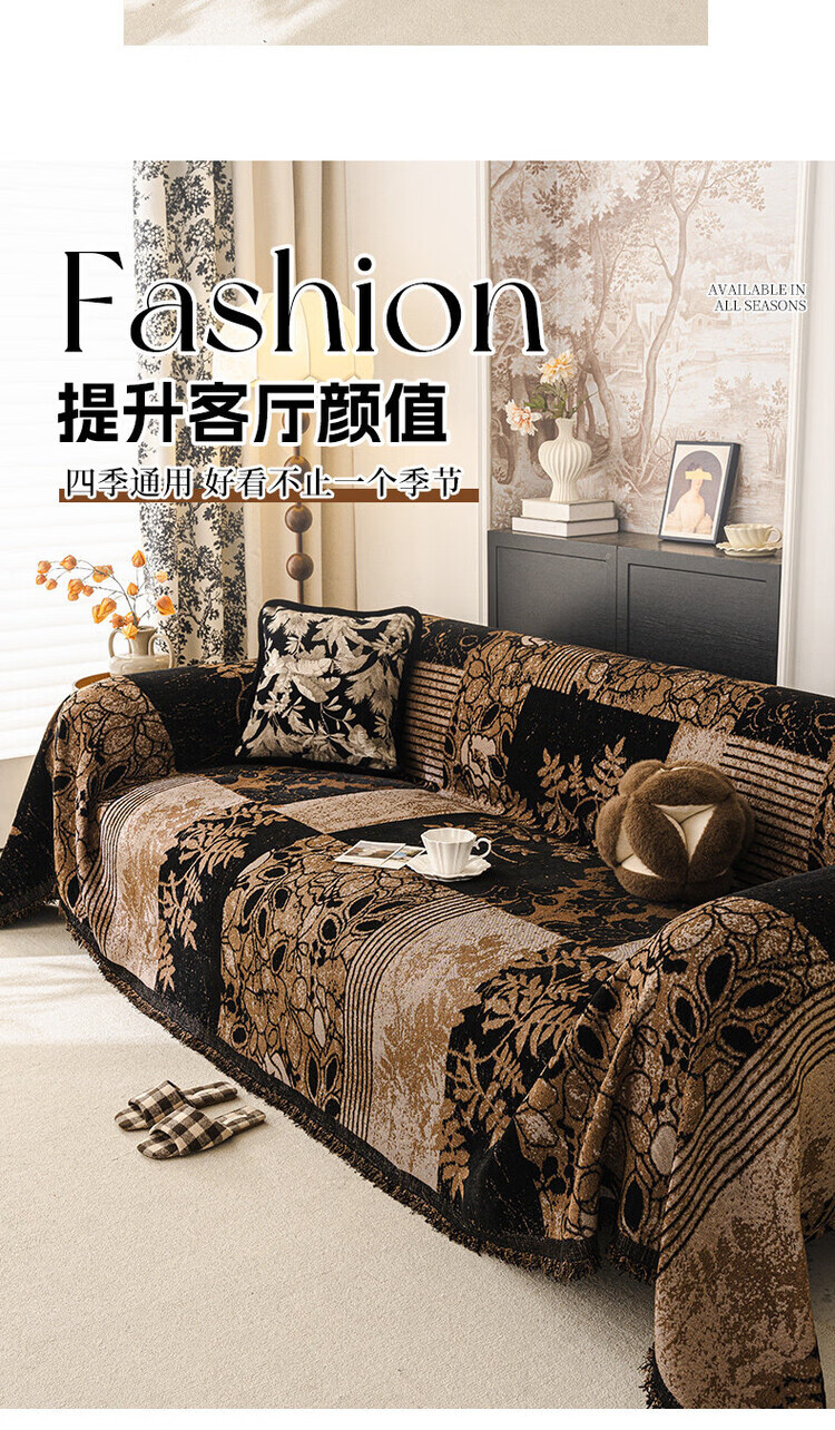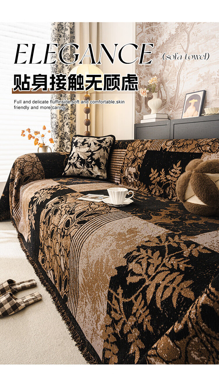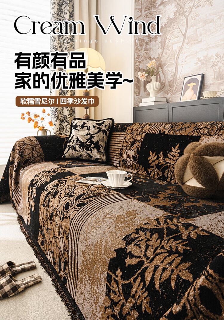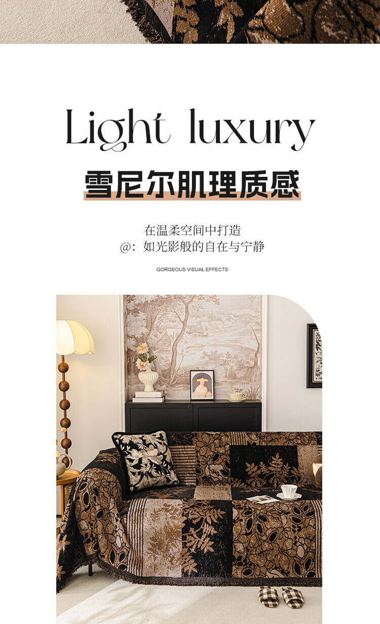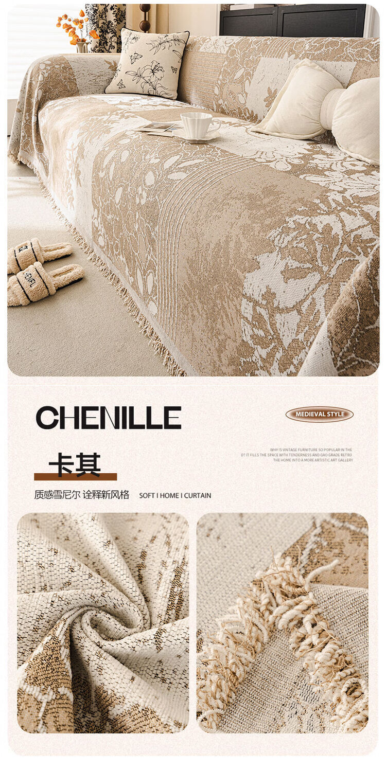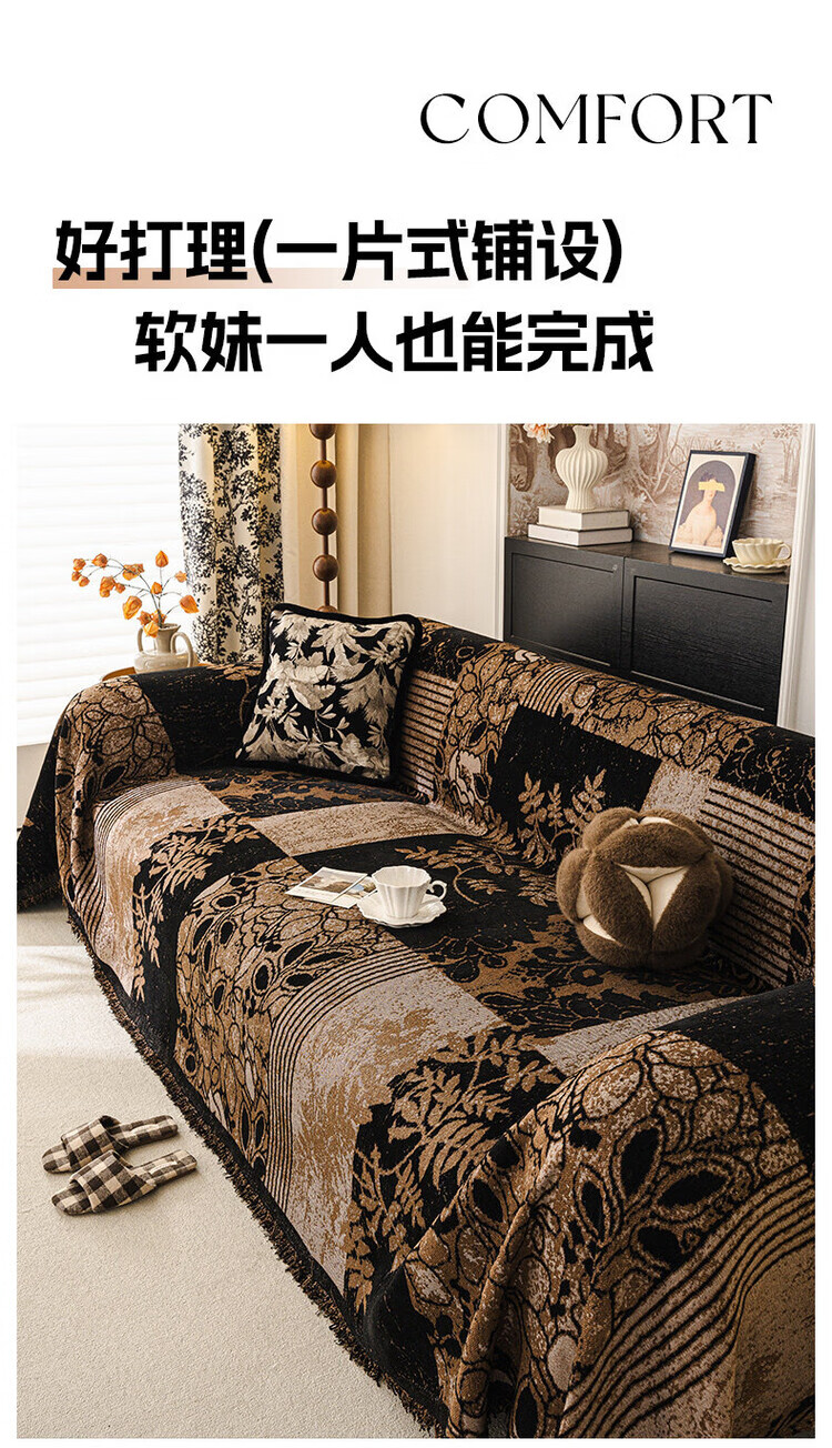 ALPLUME中古风雪尼尔沙发盖布2025新款全包设计四季通用防滑防猫抓沙发毯 知许-棕色 双人位 180*230cm【适合双人位】