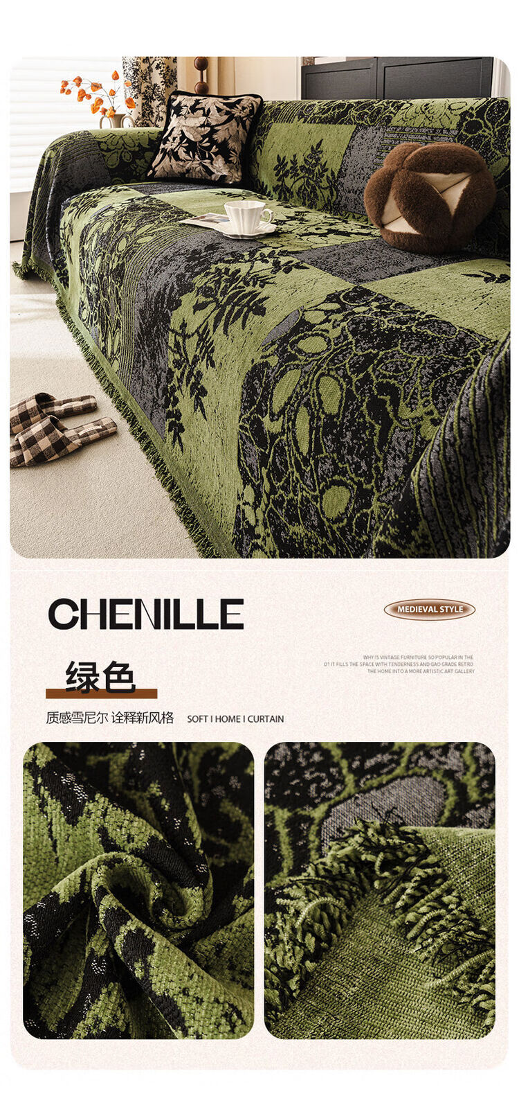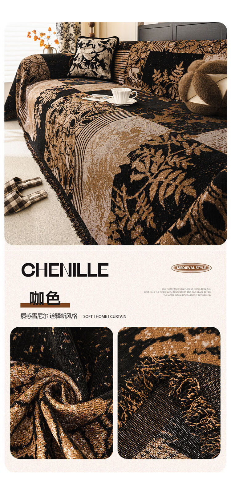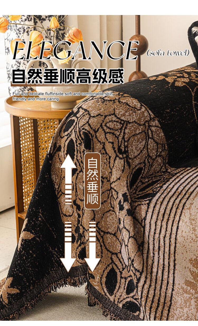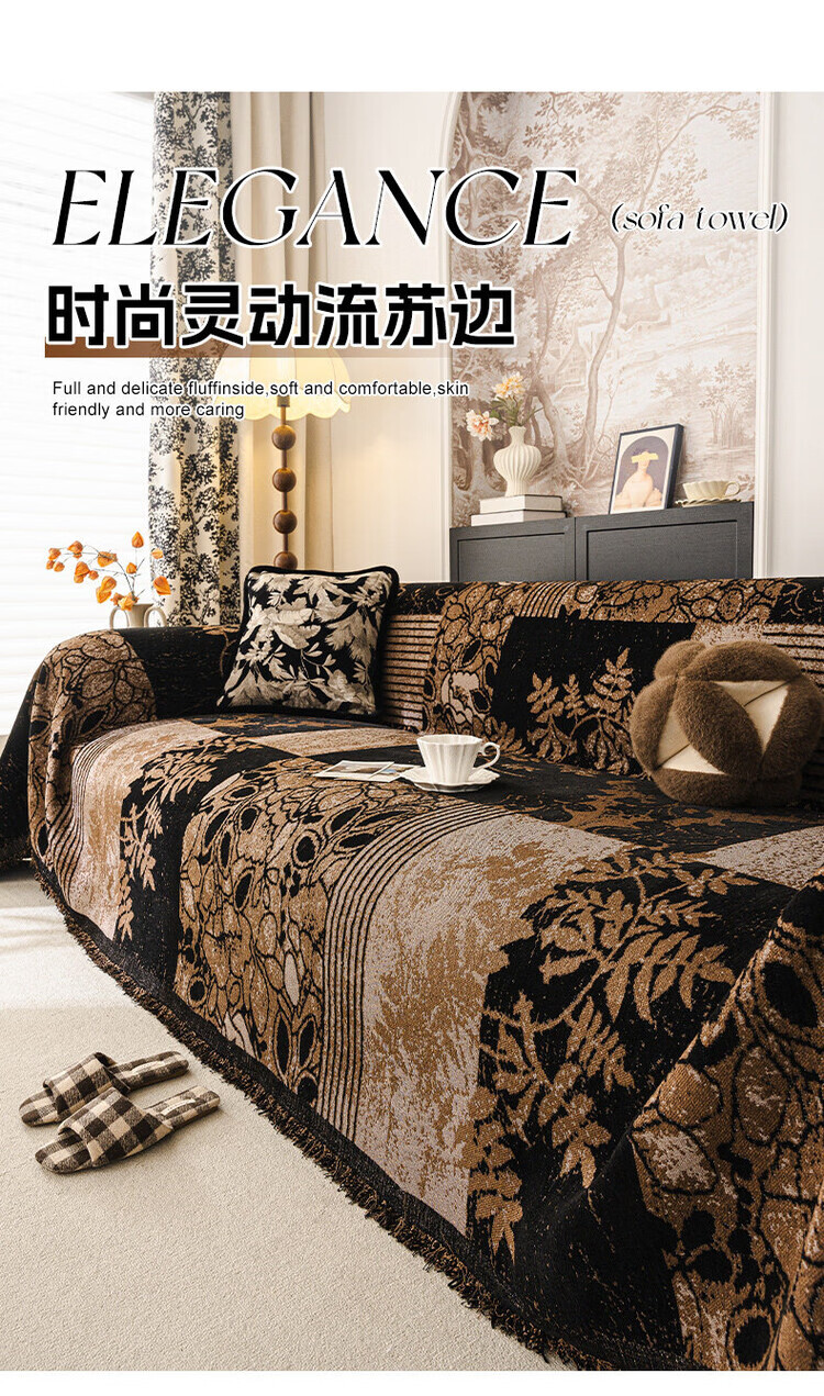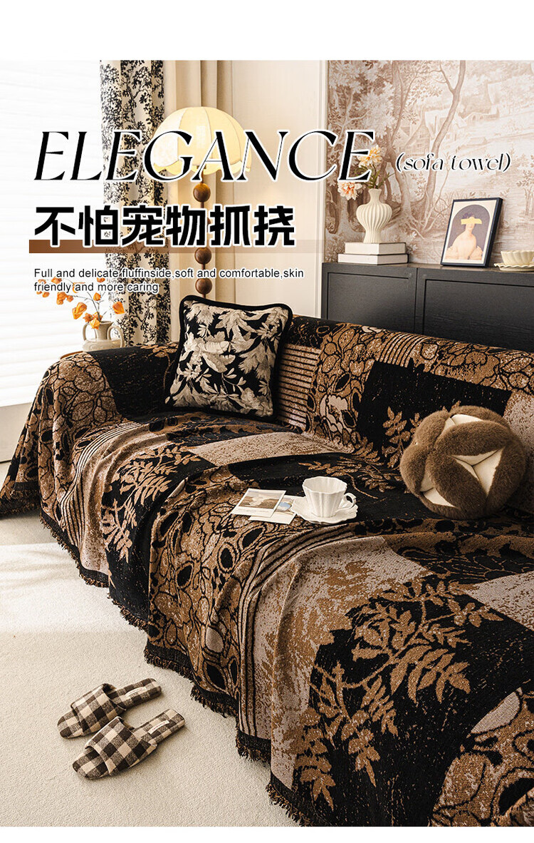 ALPLUME中古风雪尼尔沙发盖布2025新款全包设计四季通用防滑防猫抓沙发毯 知许-棕色 双人位 180*230cm【适合双人位】