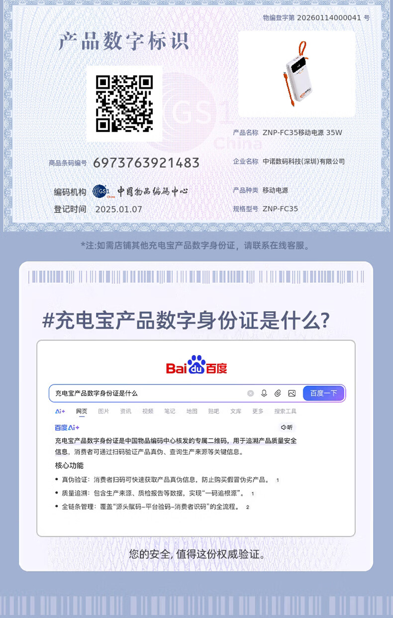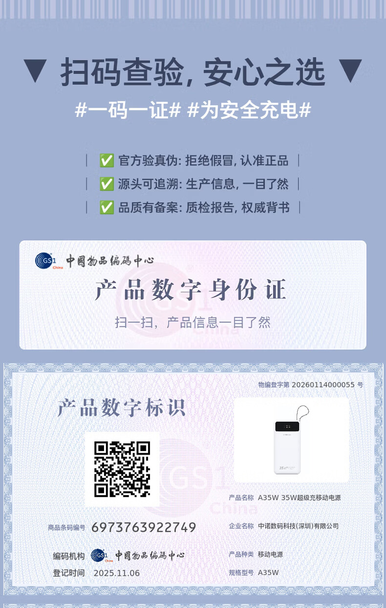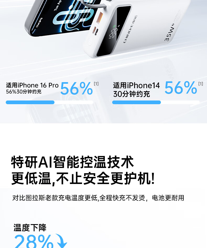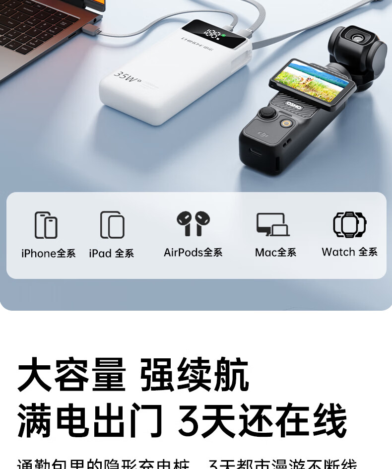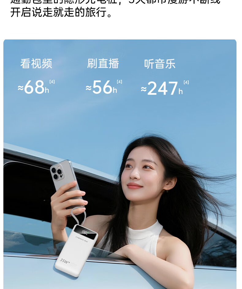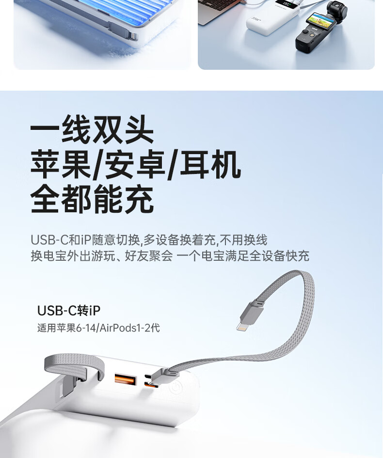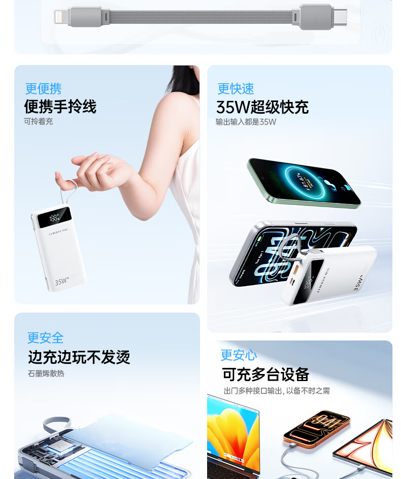 中诺(CHINO-E)【3C认证 可上飞机 35W快充】充电宝20000毫安自带线移动电源可充笔记本/苹果/15/16/iphone17安卓 【35W超级快充 | 2万毫安】标准版