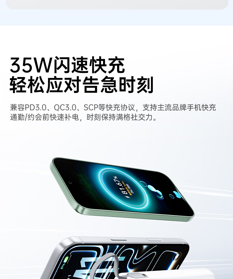 亿色【苹果15W快充丨3C认证】磁吸充电宝MagSafe15W无线快充10000/5000毫安可上飞机移动电源适用苹果 典雅白丨5千毫安【3C认证】 支持苹果15W无线快充