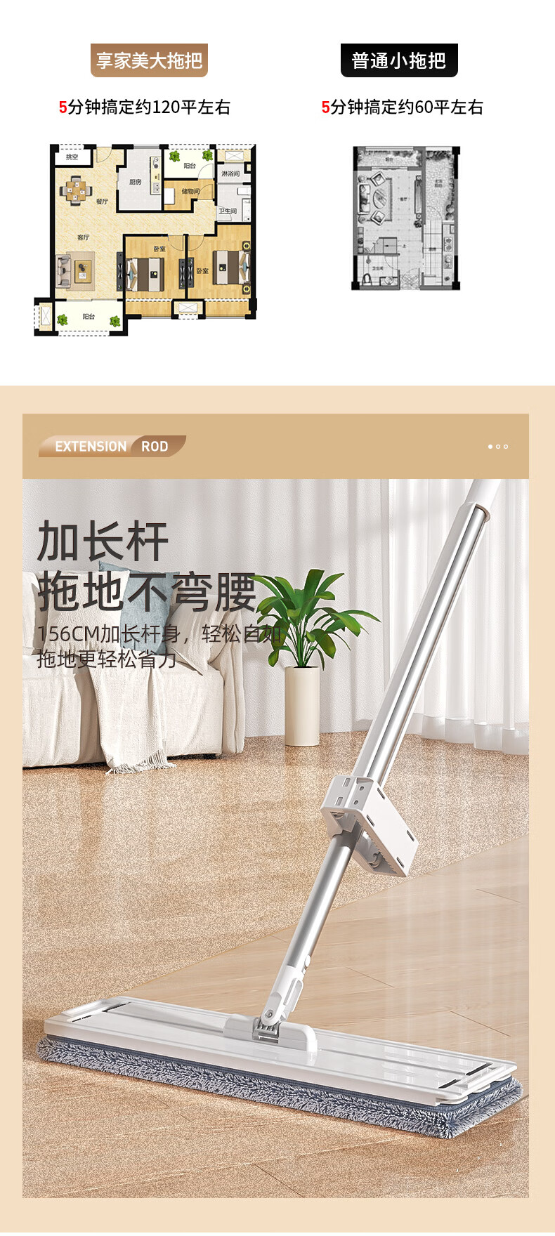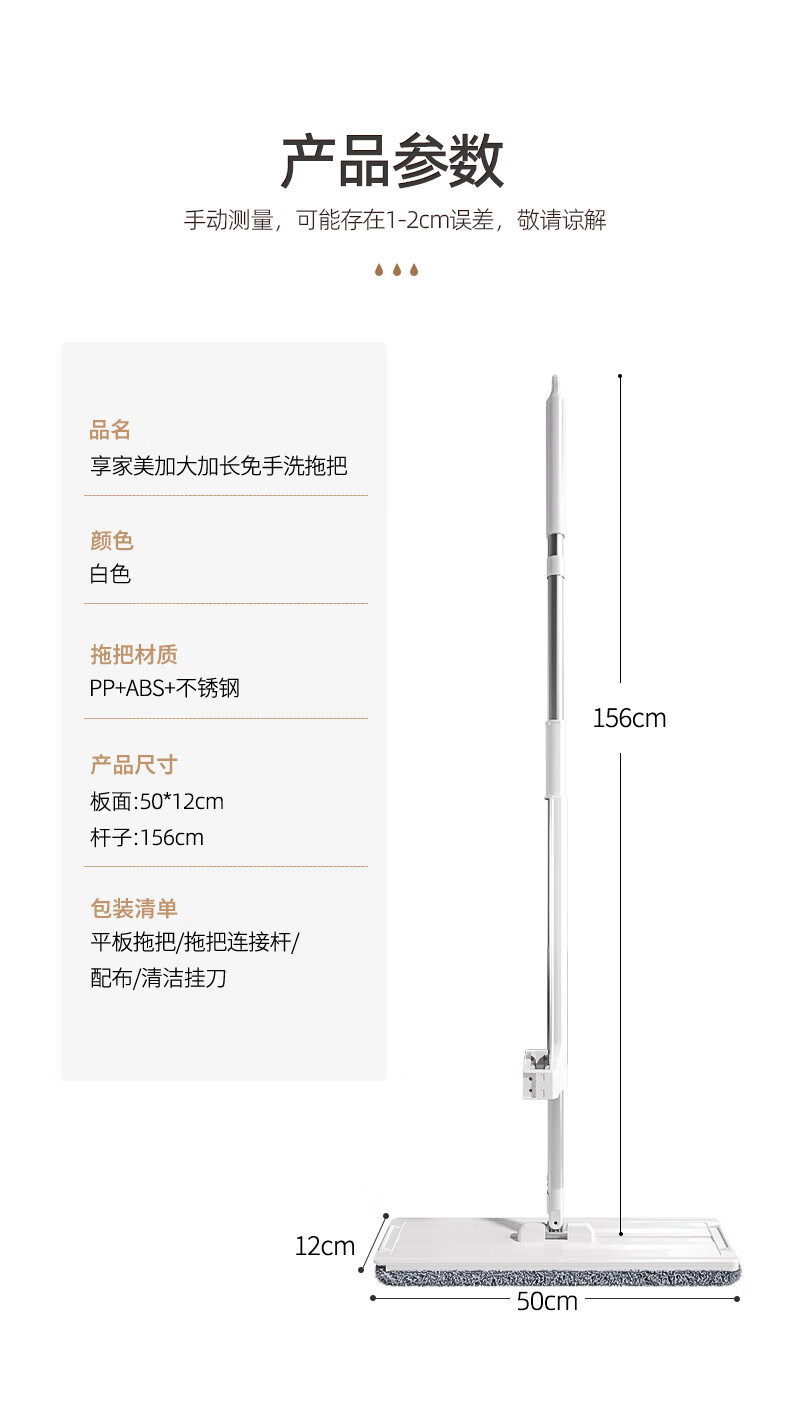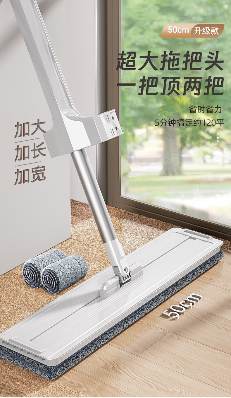享家美50cm大号拖把家用一拖净免手洗2026新款刮水一体三合一平板布神器 50cm面板【共2布】