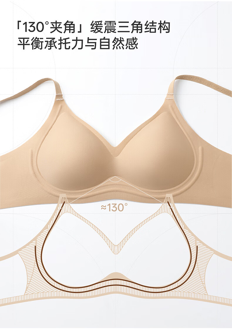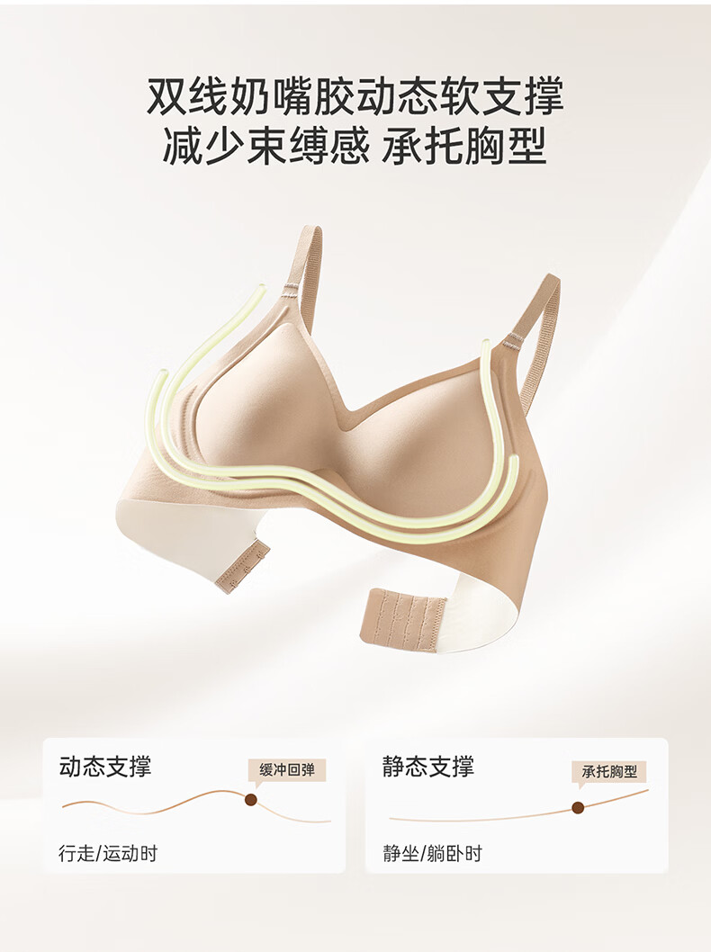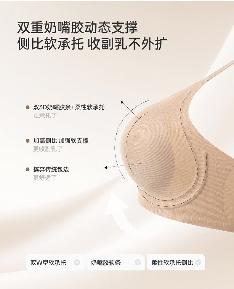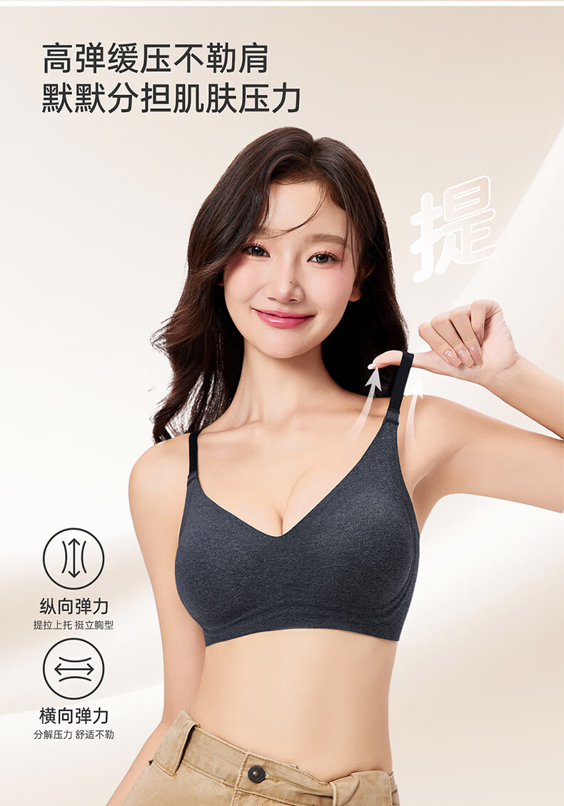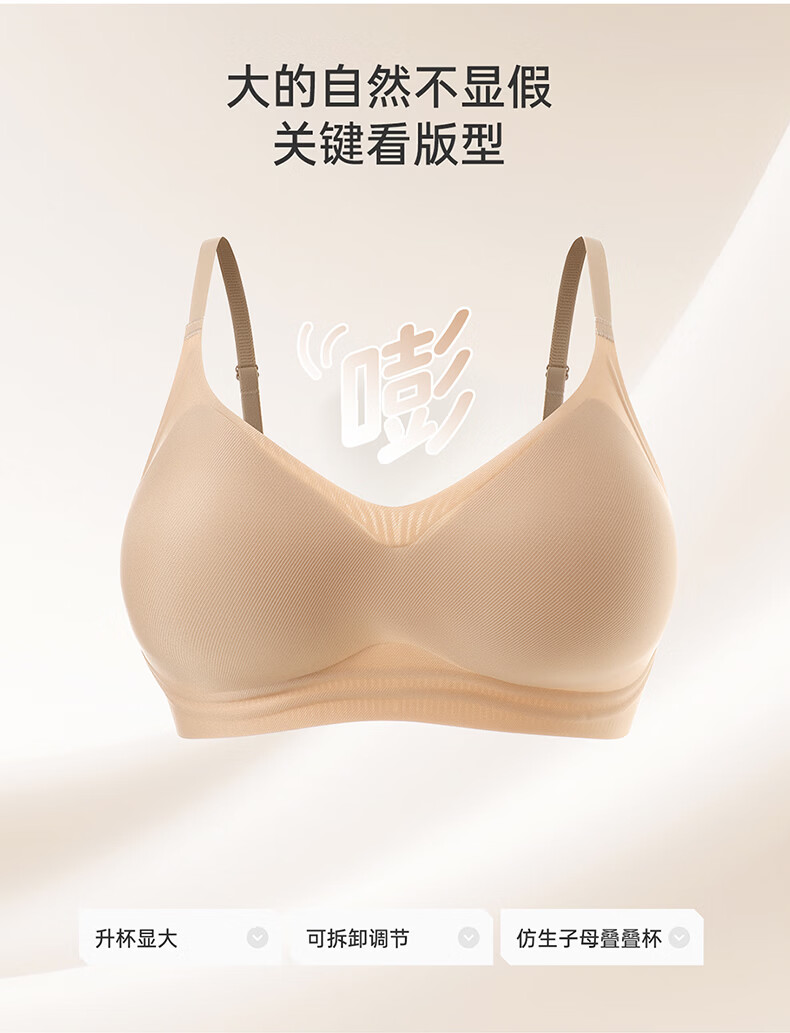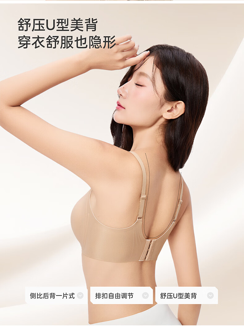 芬腾可安无钢圈文胸无痕内衣女夏季大胸显小胸罩收副乳防下垂调整型 燕麦 M
