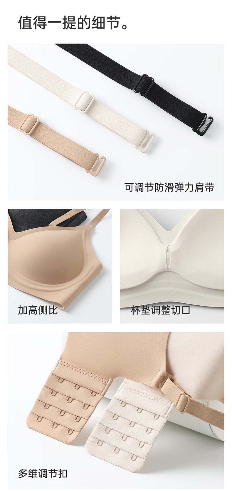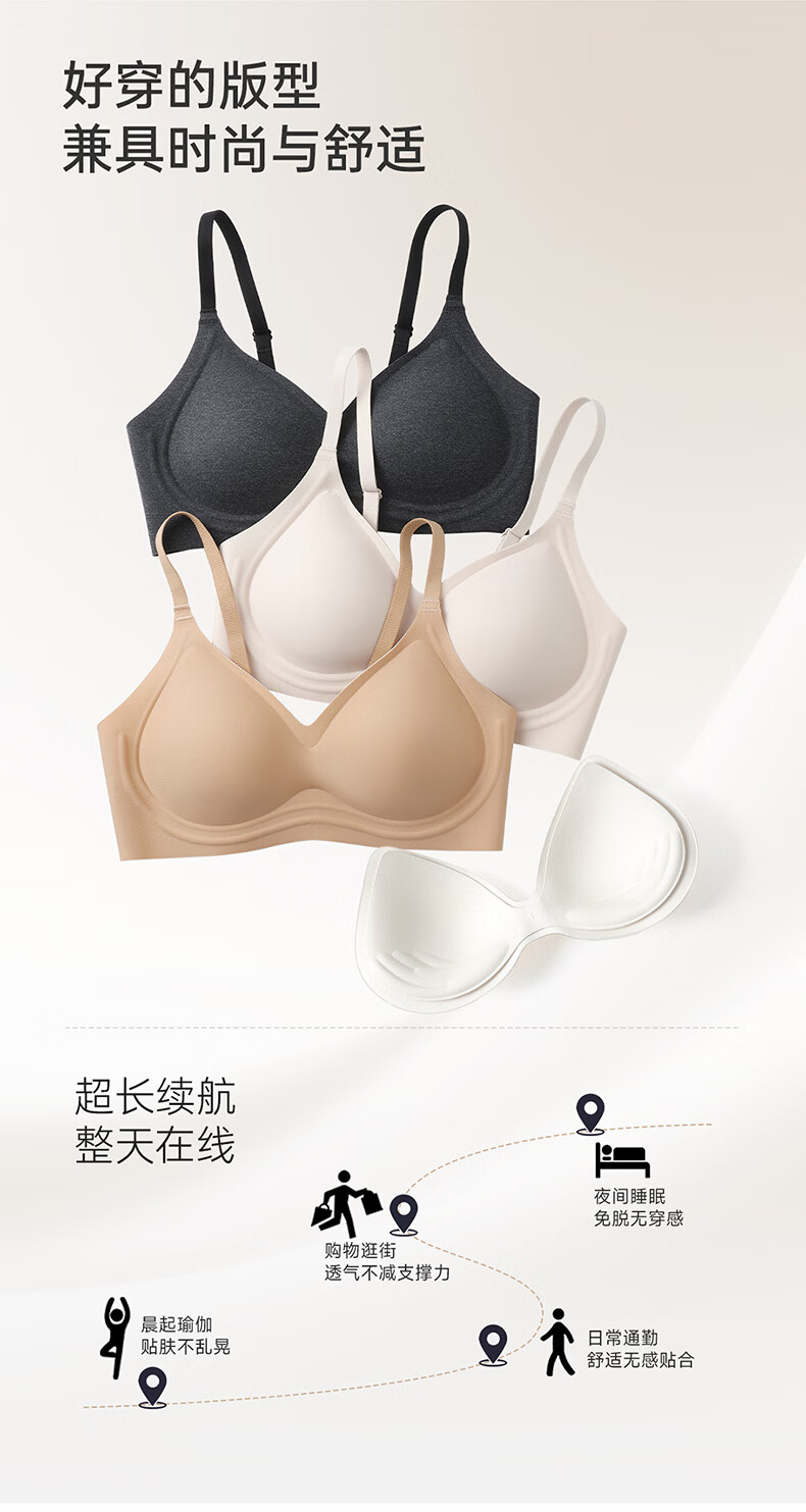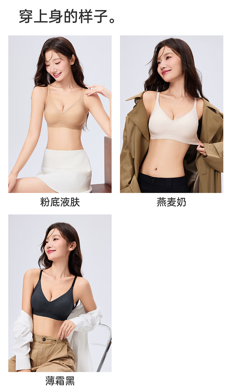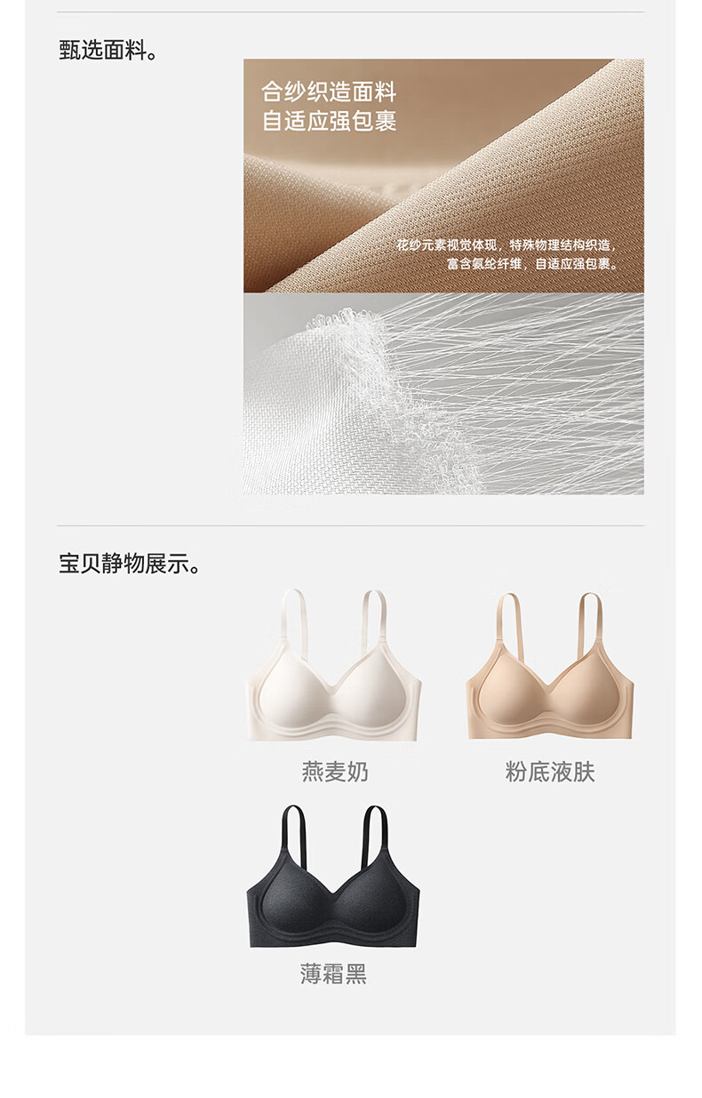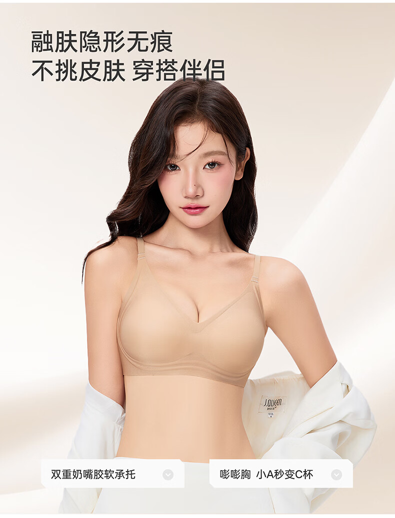 芬腾可安无钢圈文胸无痕内衣女夏季大胸显小胸罩收副乳防下垂调整型 燕麦 M