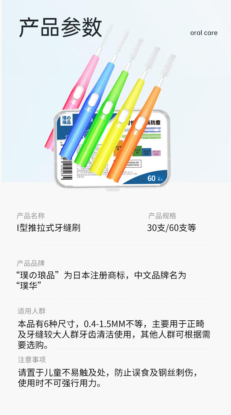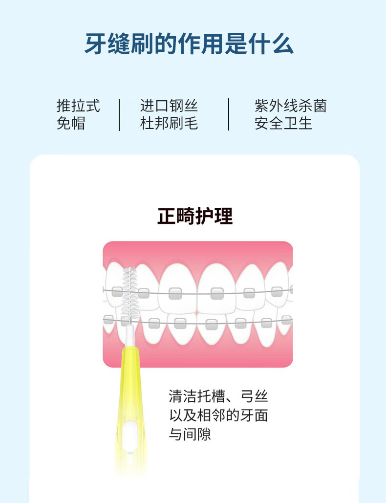 日本品牌原装进口牙缝刷I型进口钢丝正畸专用齿间刷矫正牙刷牙线 0.6mm60支超级细号