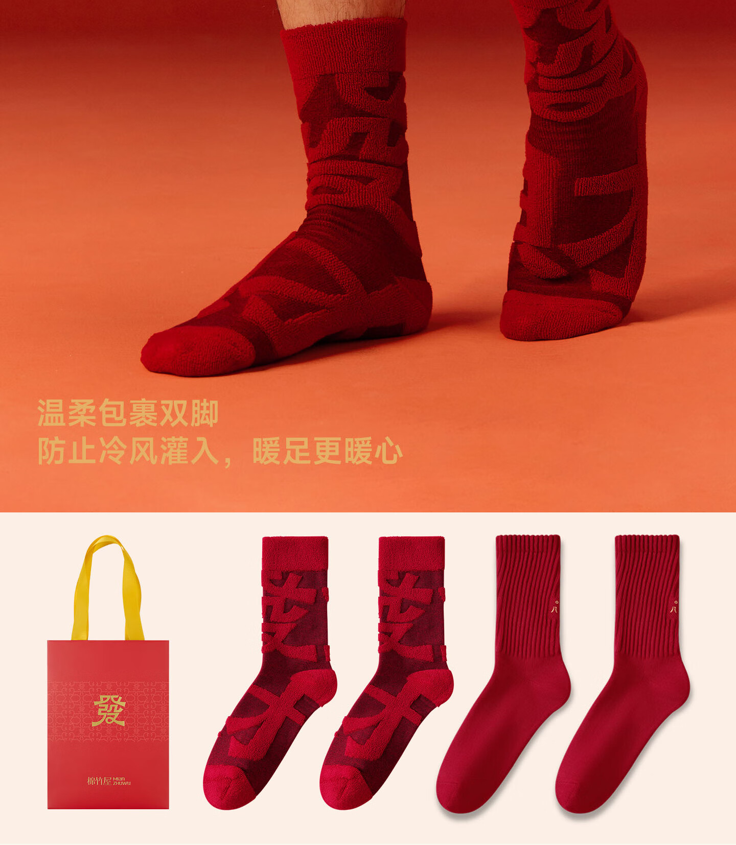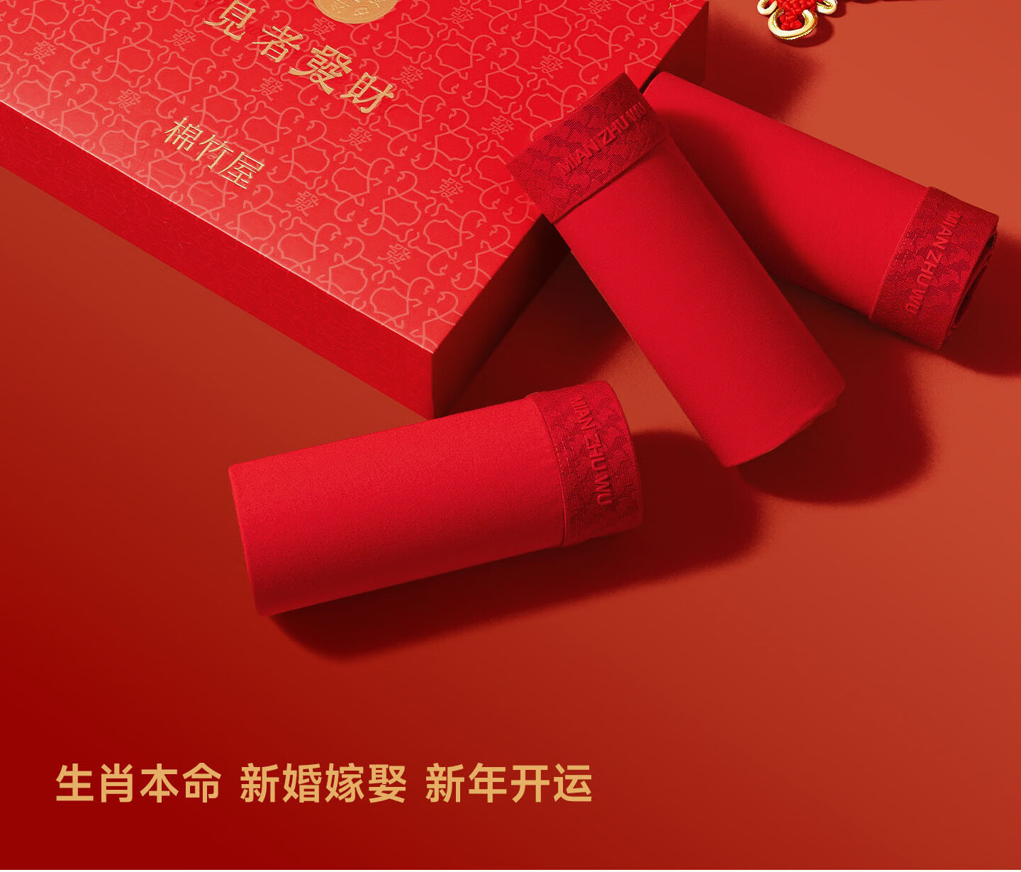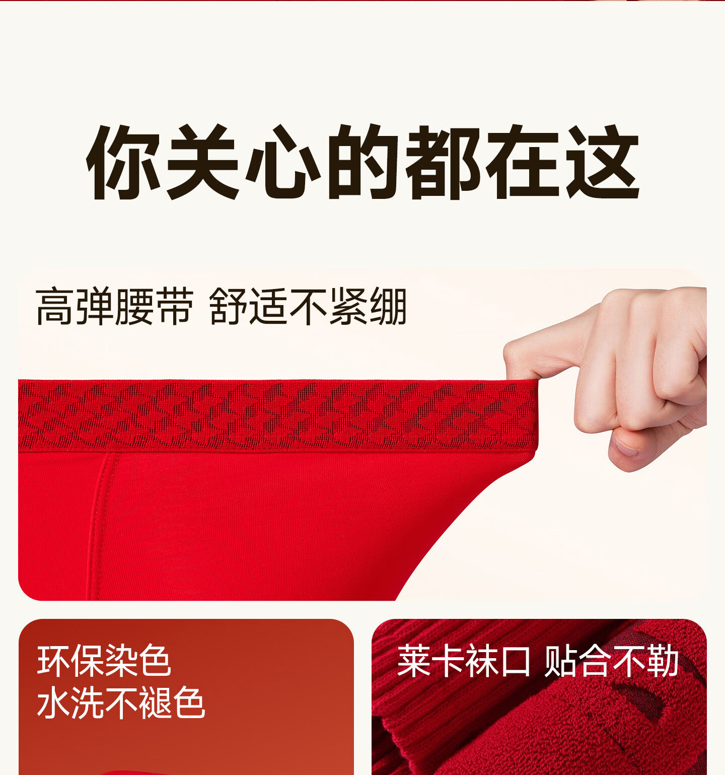 棉竹屋红色内裤中腰纯棉抗菌全棉裆本命年袜子新款男士结婚礼盒 财迎双至礼盒 2XL 70-80公斤
