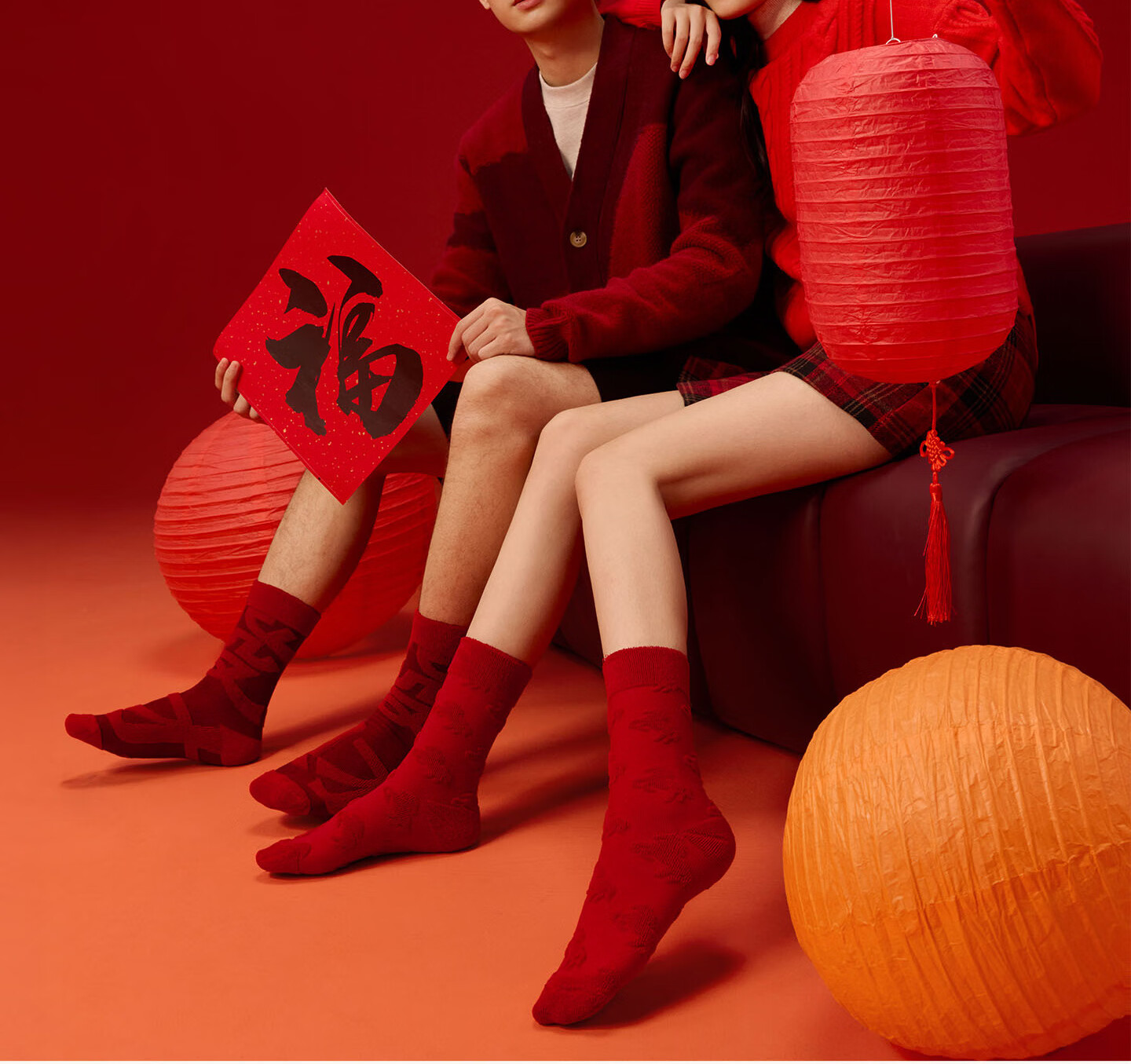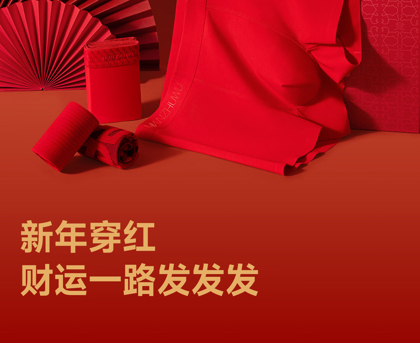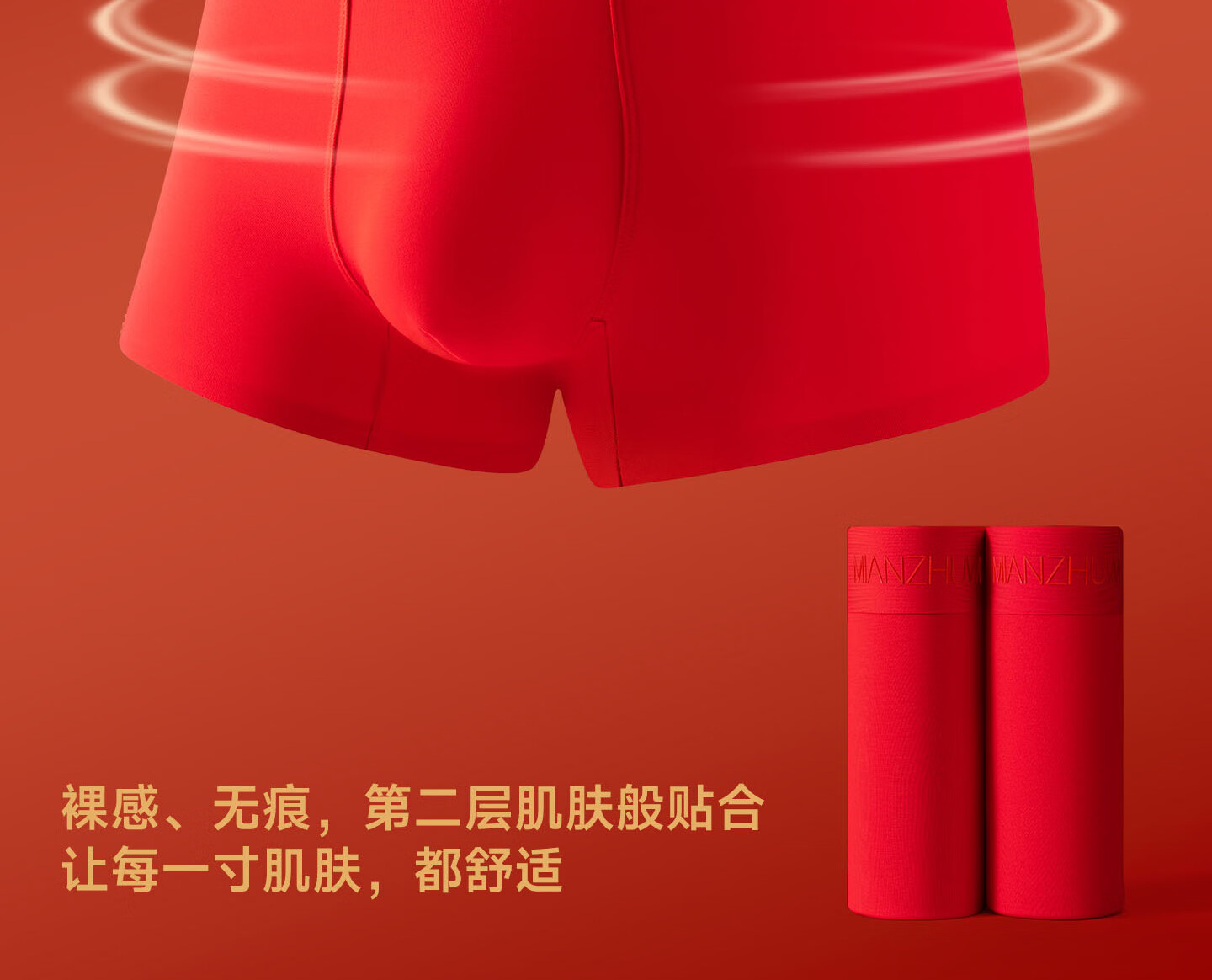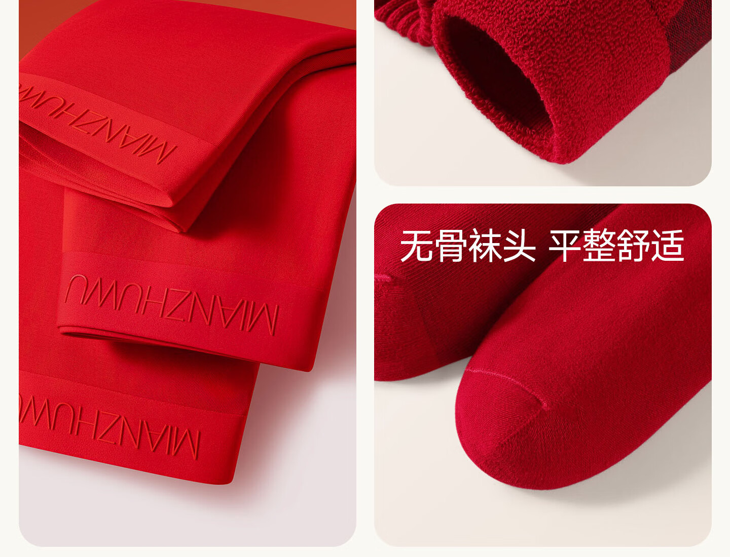 棉竹屋红色内裤中腰纯棉抗菌全棉裆本命年袜子新款男士结婚礼盒 财迎双至礼盒 2XL 70-80公斤
