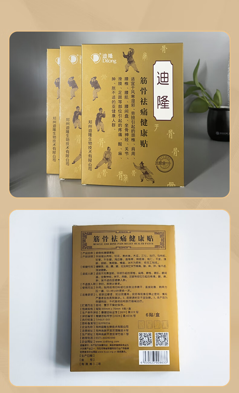 D筋骨健康贴 腰疼贴膏腰间盘劳损颈椎肩周贴膏膝盖膝关节膏贴迪隆 迪隆5盒装