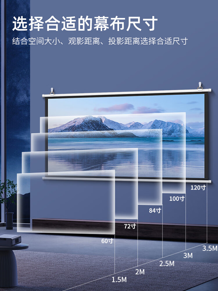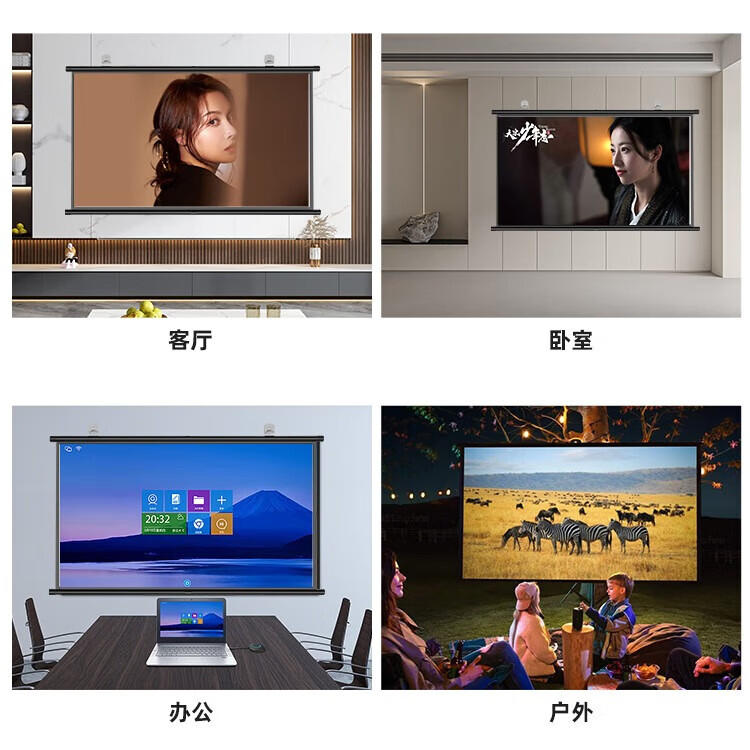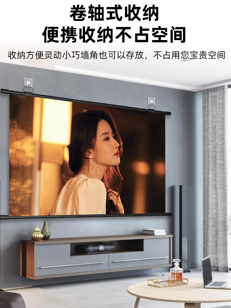 强普投影幕布壁挂抗光幕布高亮免打孔家用客厅卧室户外投影仪幕布屏幕72寸/84寸/100寸高清幕布家用 灰玻纤【色彩增益】 72寸壁挂幕布【1.59x0.9米】送挂钩