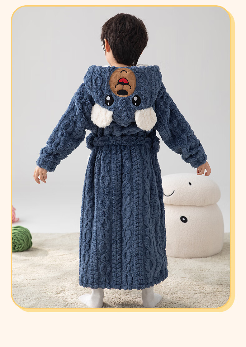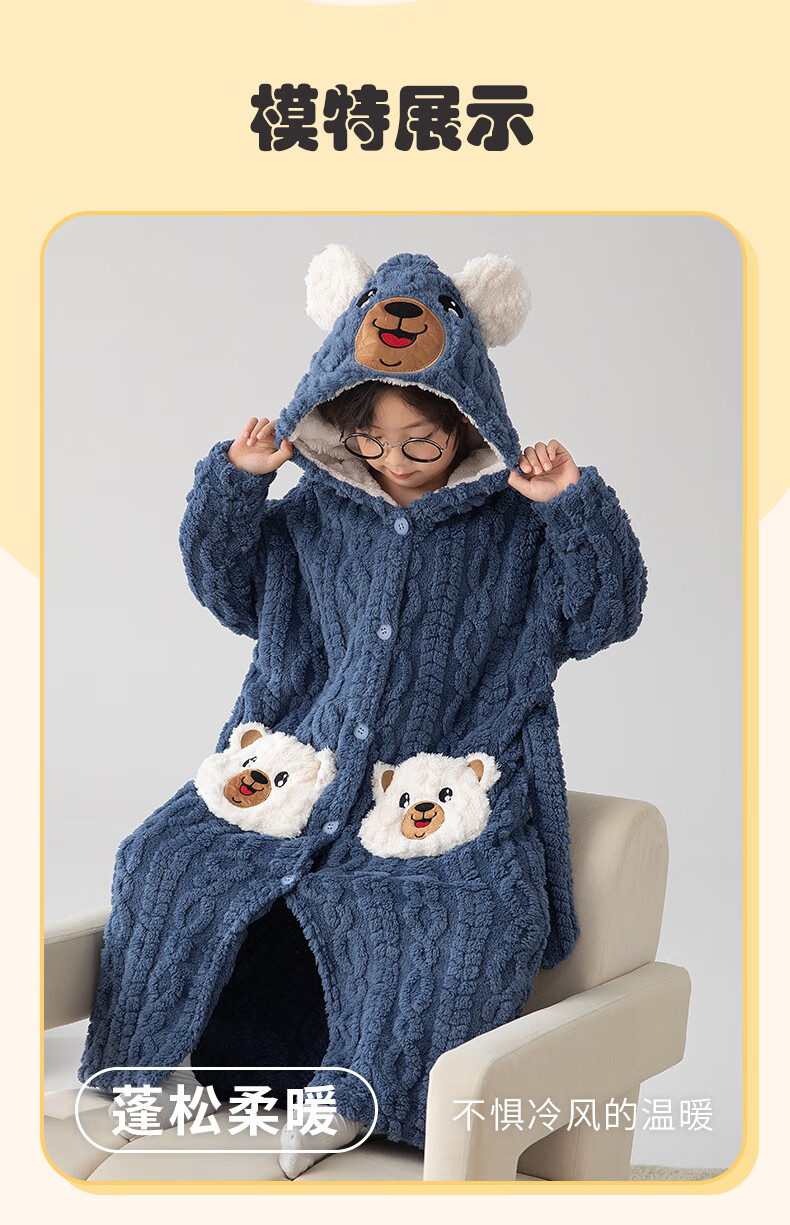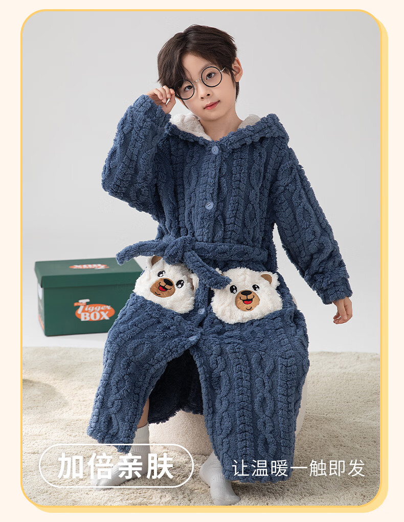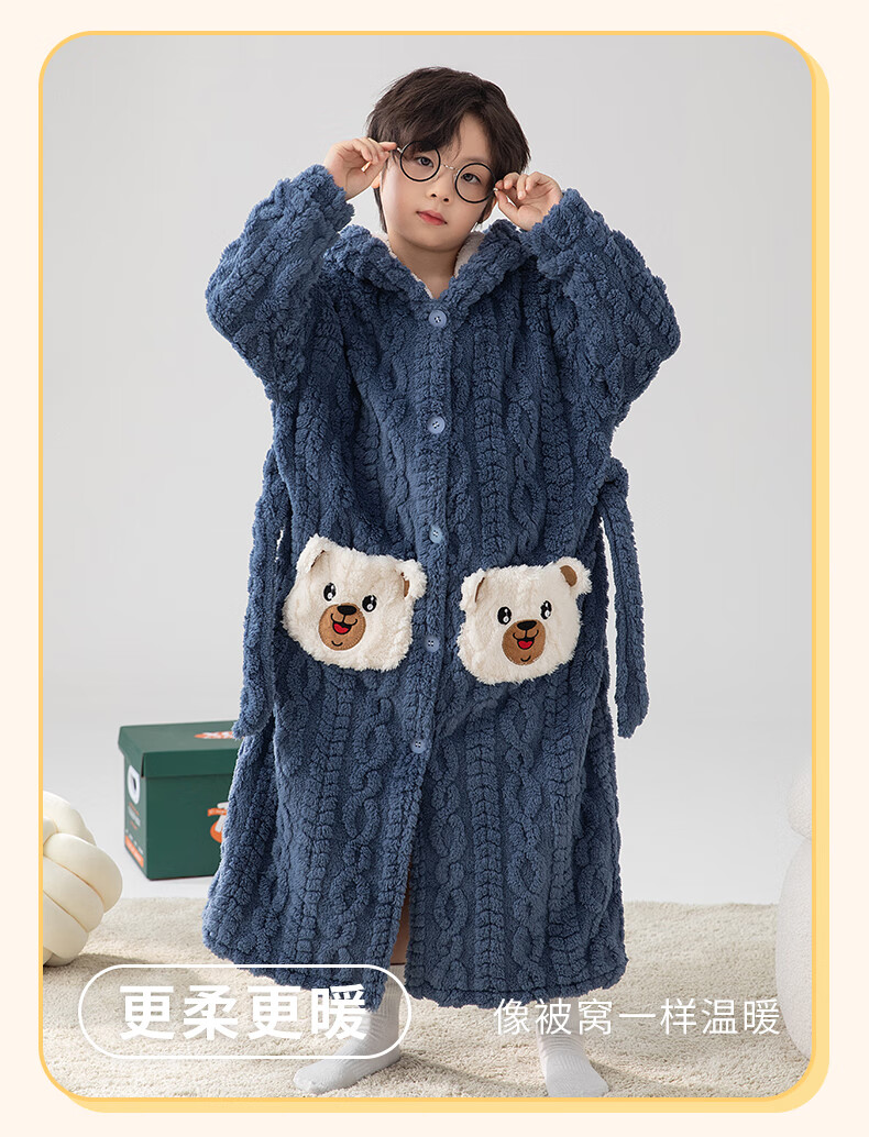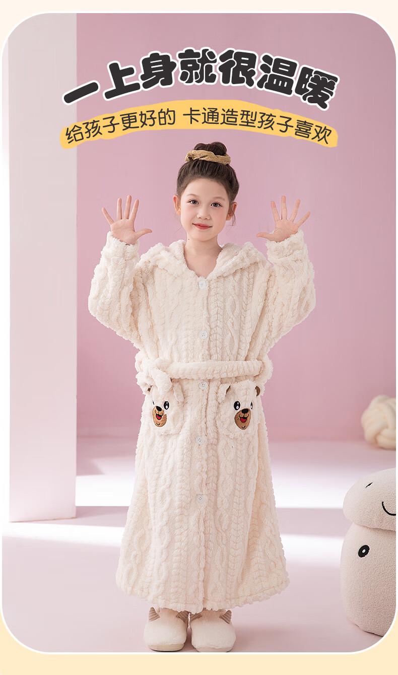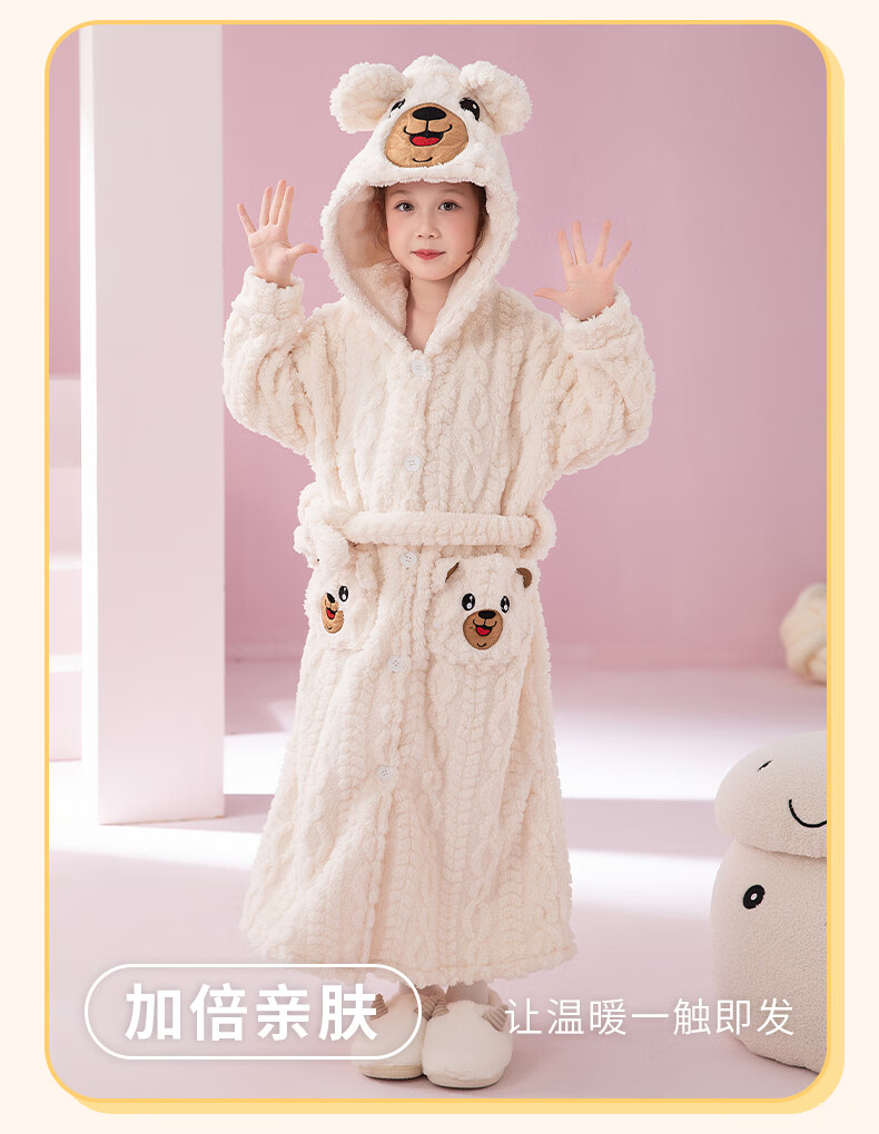 猫人(MiiOW)睡袍儿童秋冬季珊瑚绒浴后加厚男童浴袍小童中大童睡衣家居服 红色(睡袍+裤子) 110 建议身高 101-105