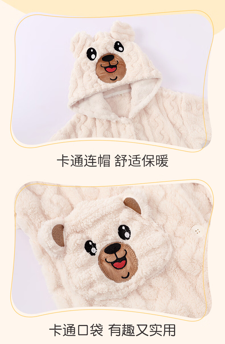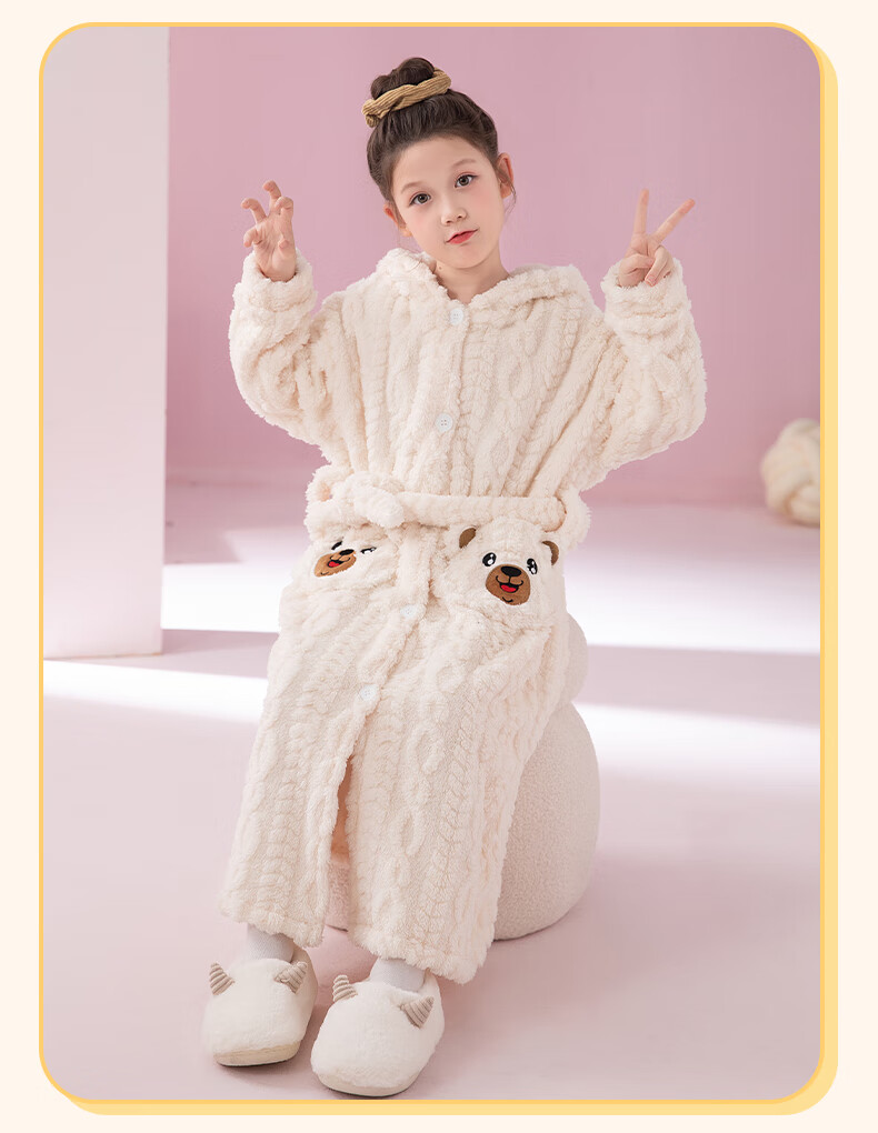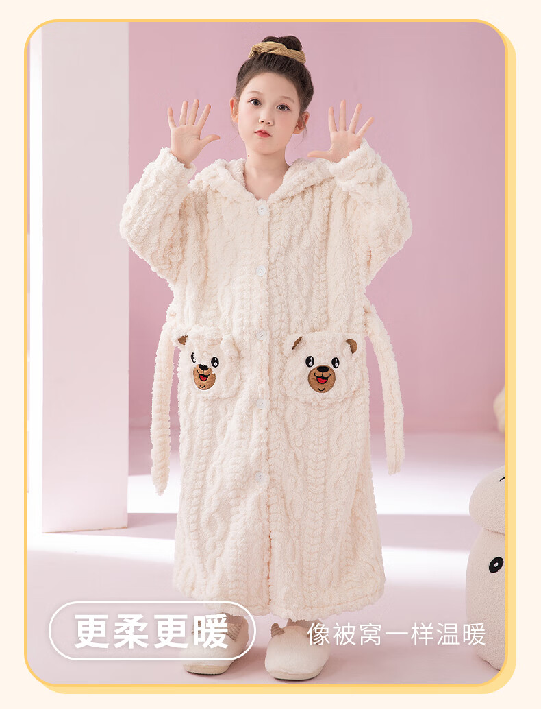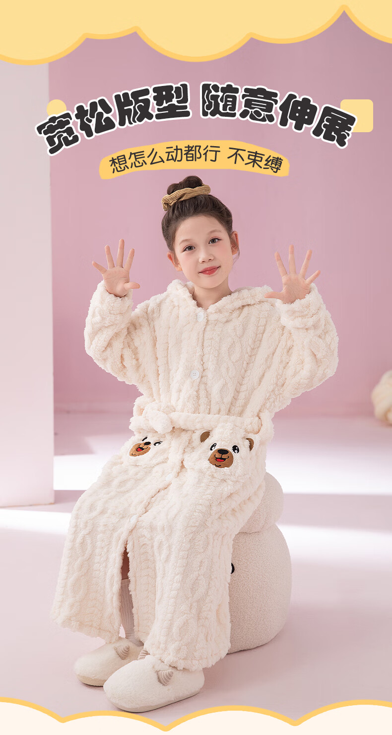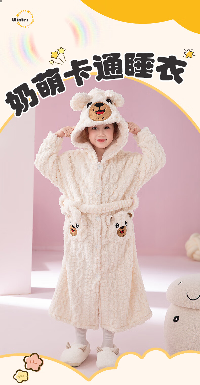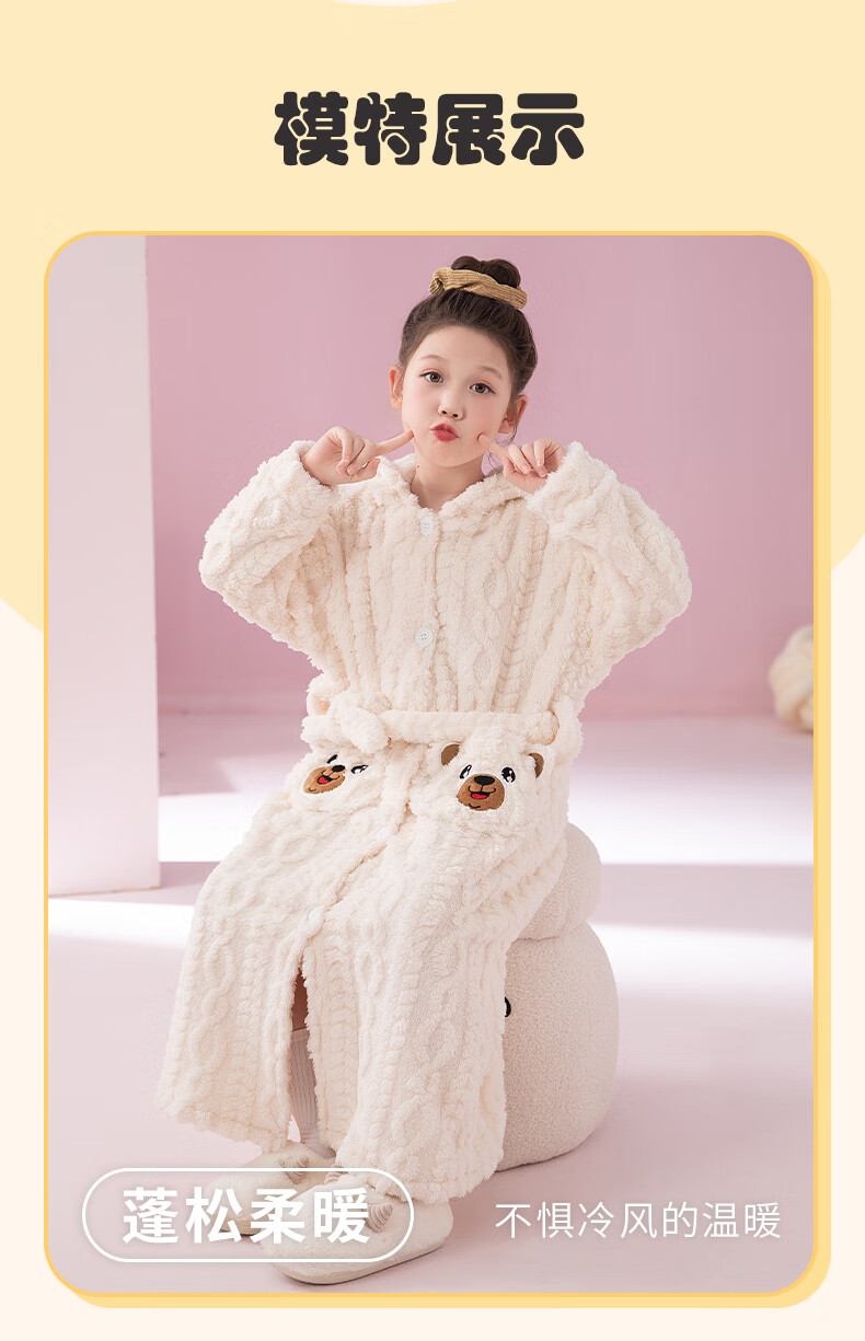 猫人(MiiOW)睡袍儿童秋冬季珊瑚绒浴后加厚男童浴袍小童中大童睡衣家居服 红色(睡袍+裤子) 110 建议身高 101-105