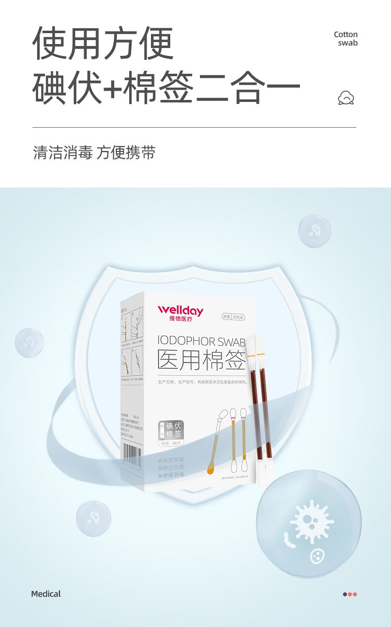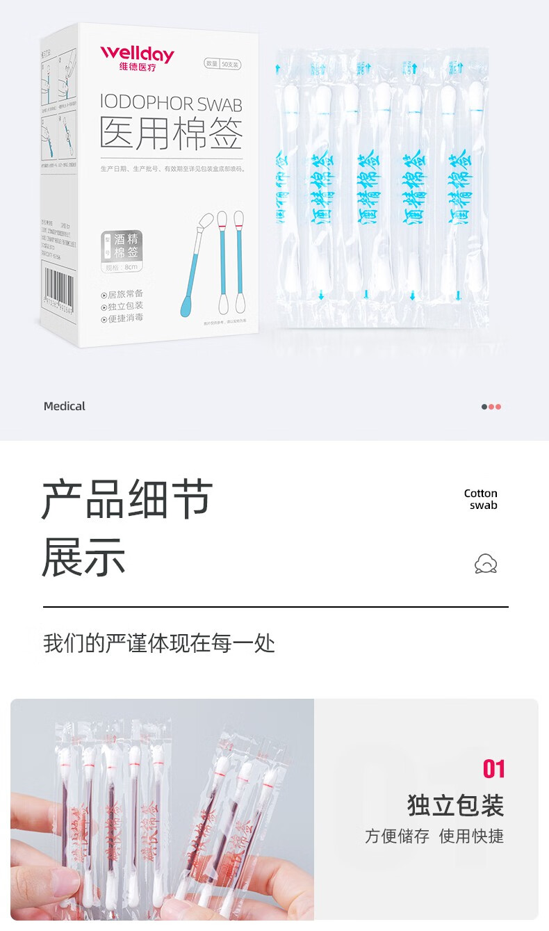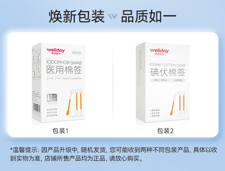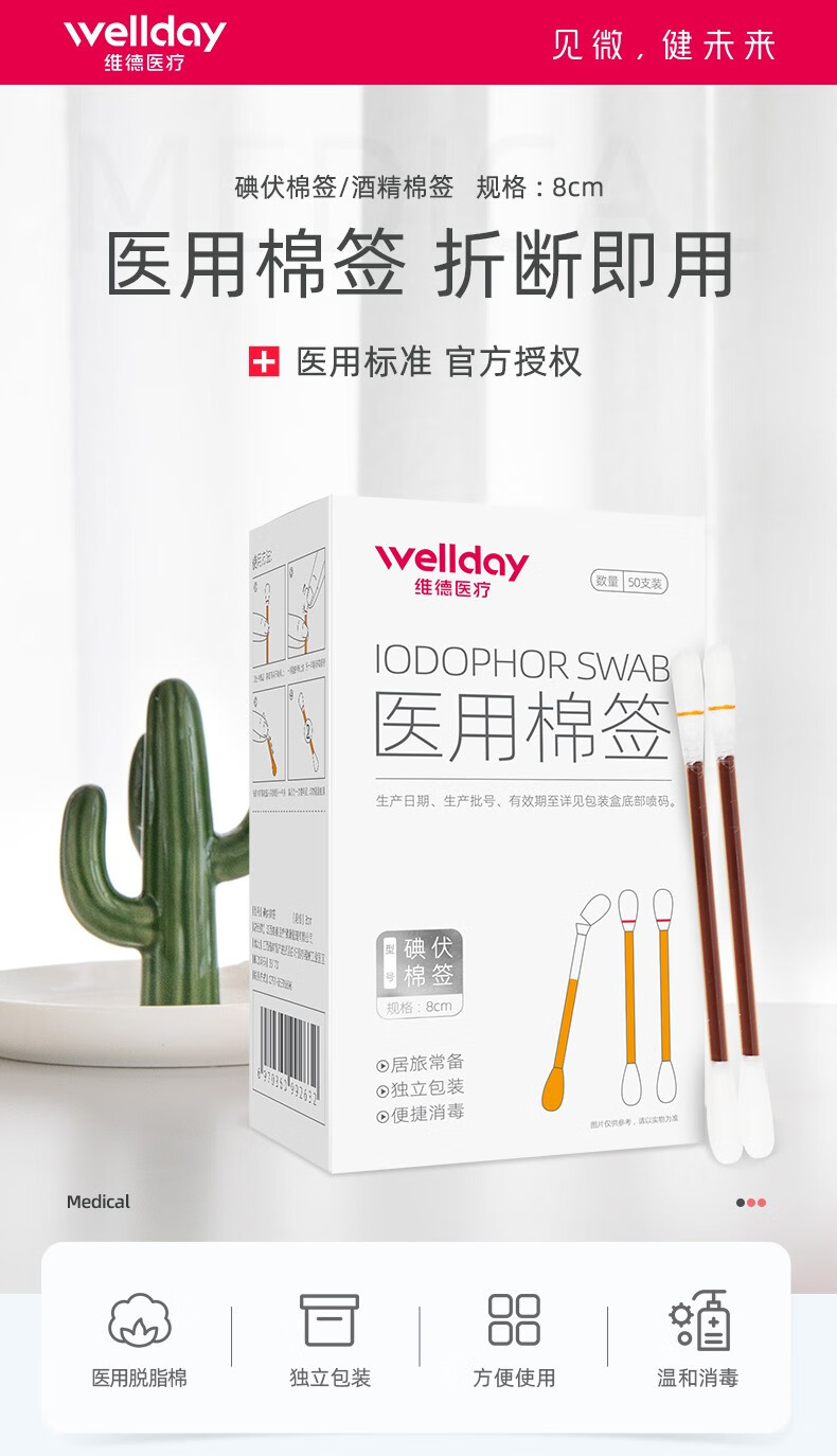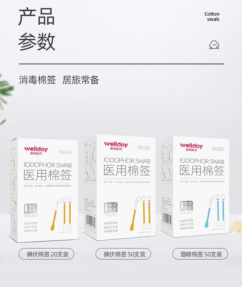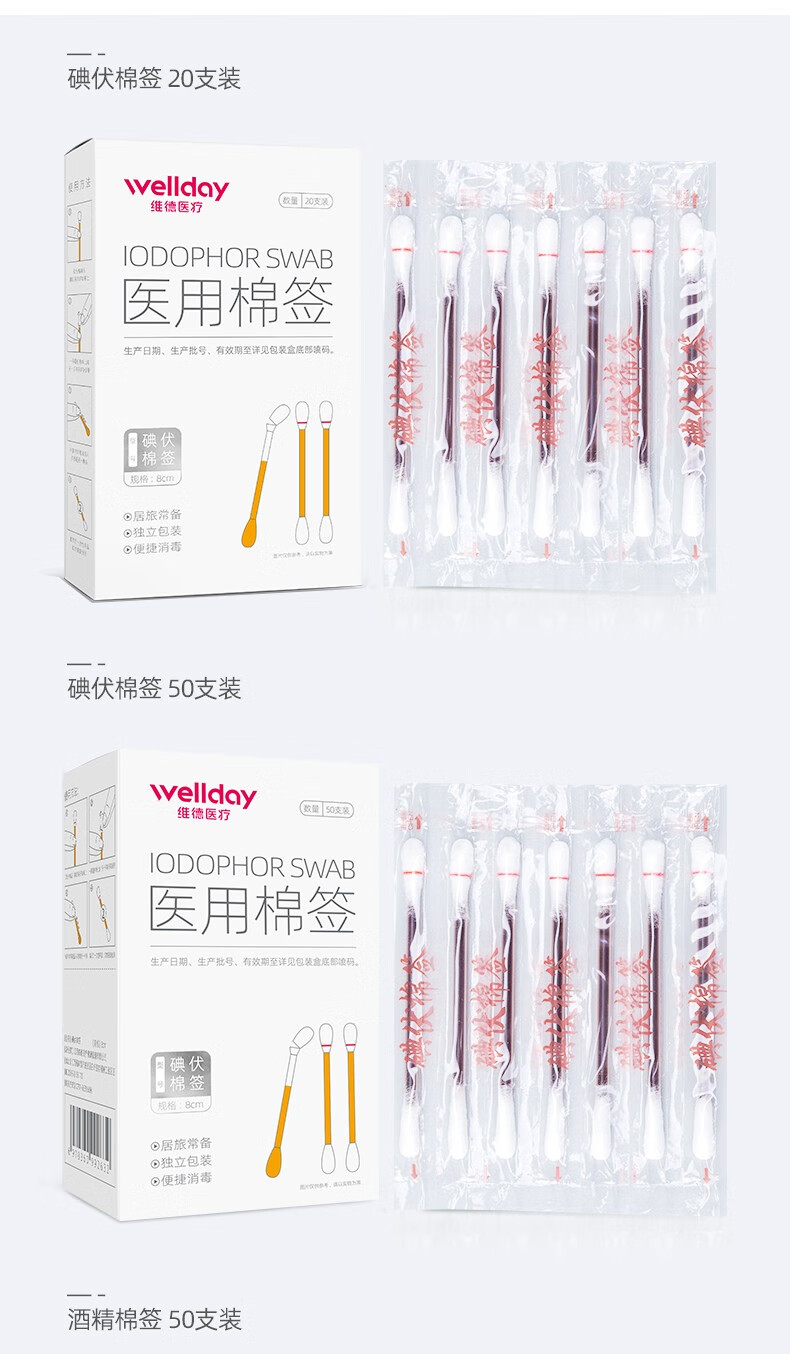维德(WELLDAY)医用碘伏酒精棉签棉棒即用消毒婴儿护脐带护理消毒液碘酊碘酒棉签 【碘伏棉签】3盒超值装