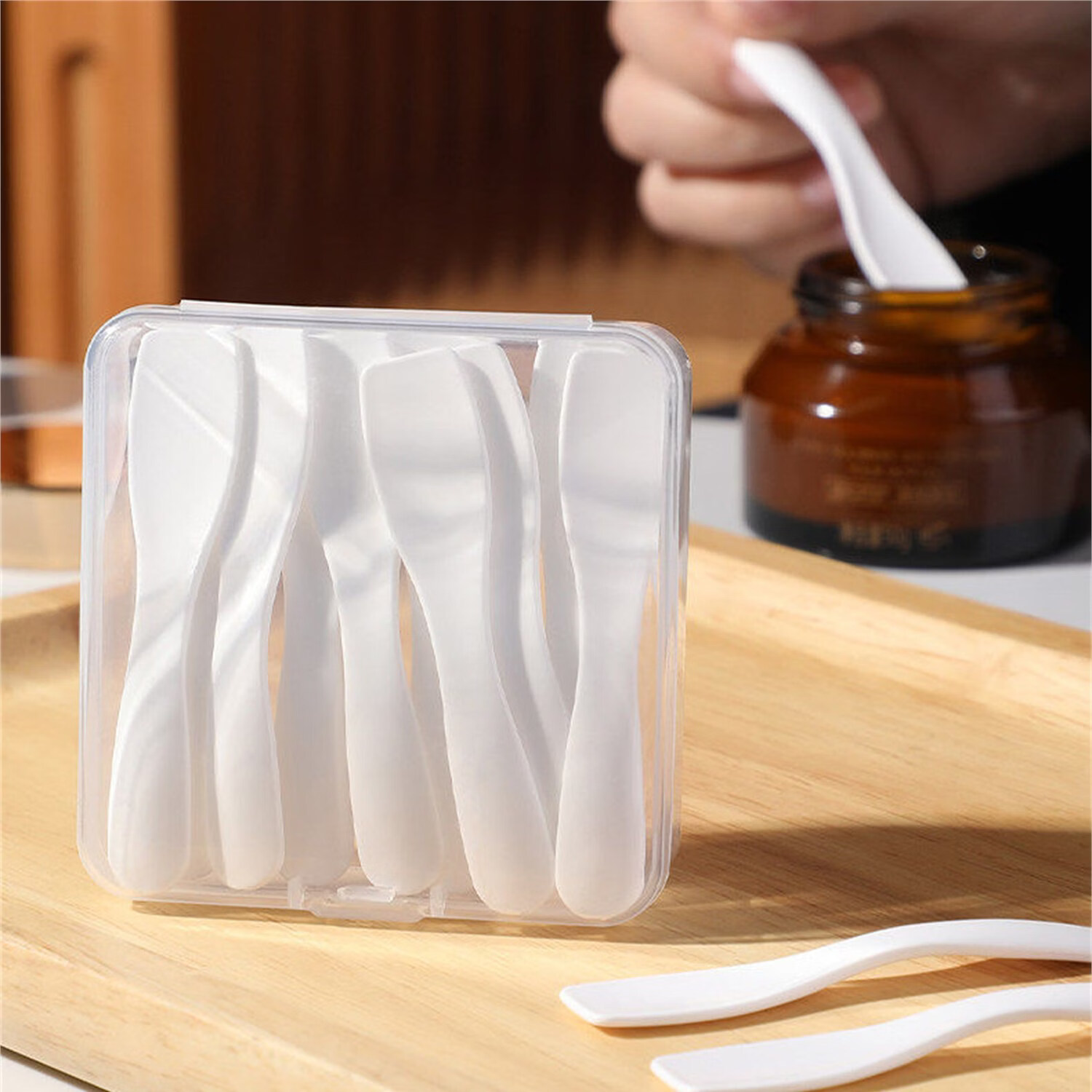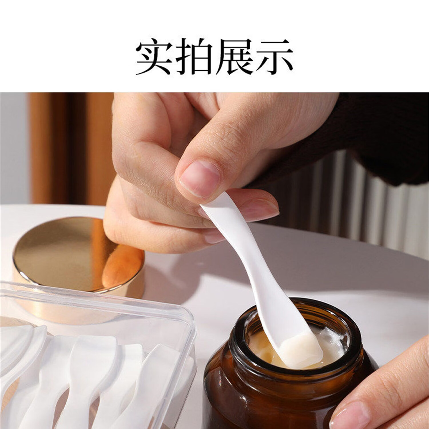 日禾盛唐护肤品挖勺面膜化妆品身体乳挖取勺分装小勺子眼霜面霜粉底液工具 【2盒共 20支 】赠收纳盒