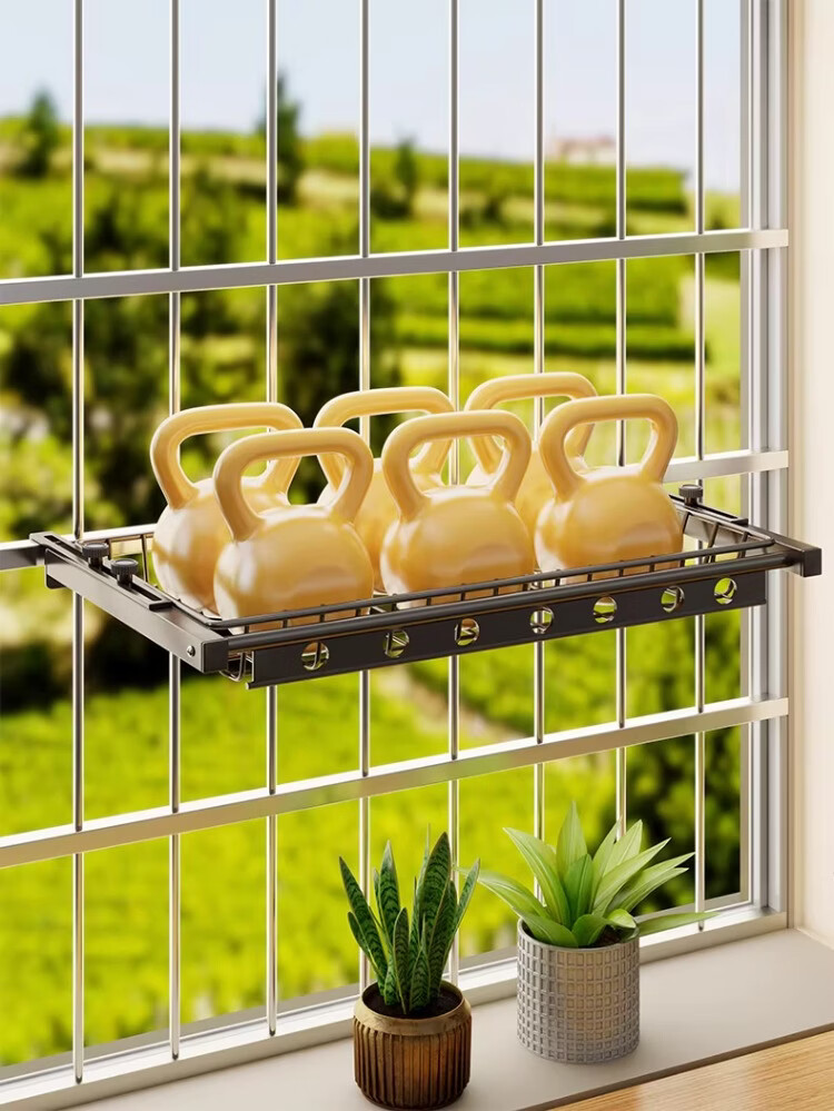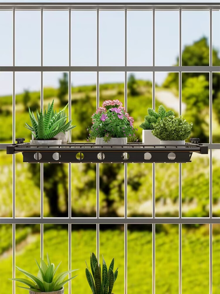 尔思家阳台花架悬挂盆栽置物架花盆架铁艺方形花架子客厅高颜值窗台挂篮 枪灰色60cm