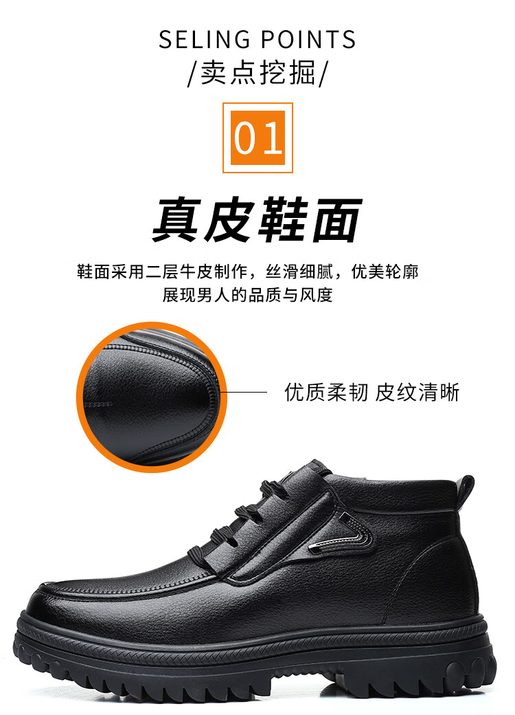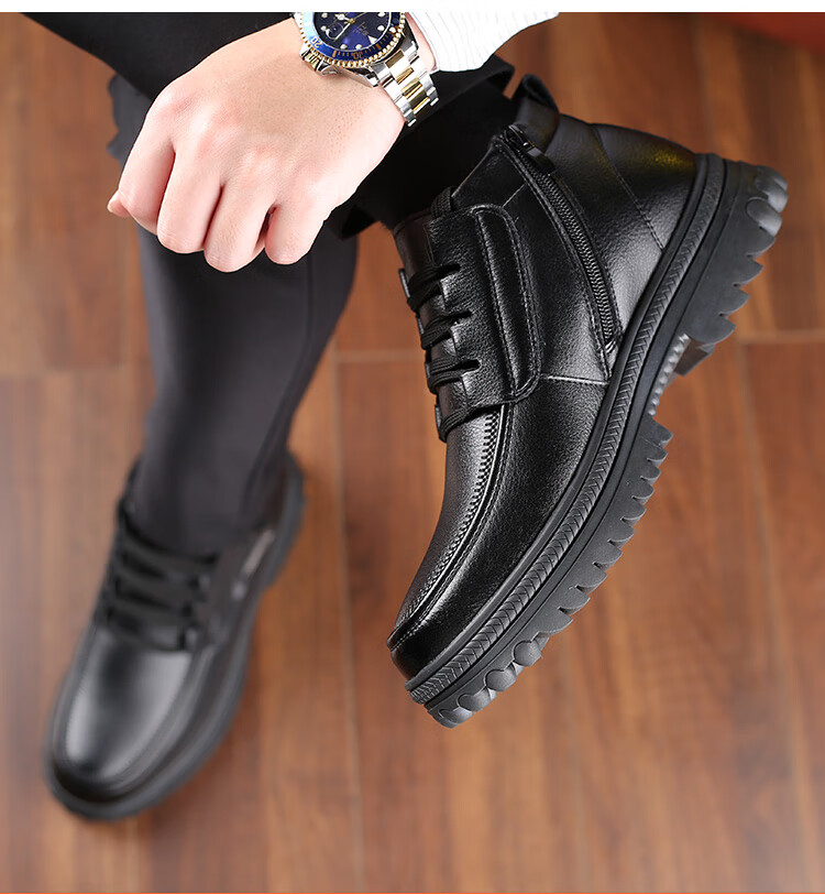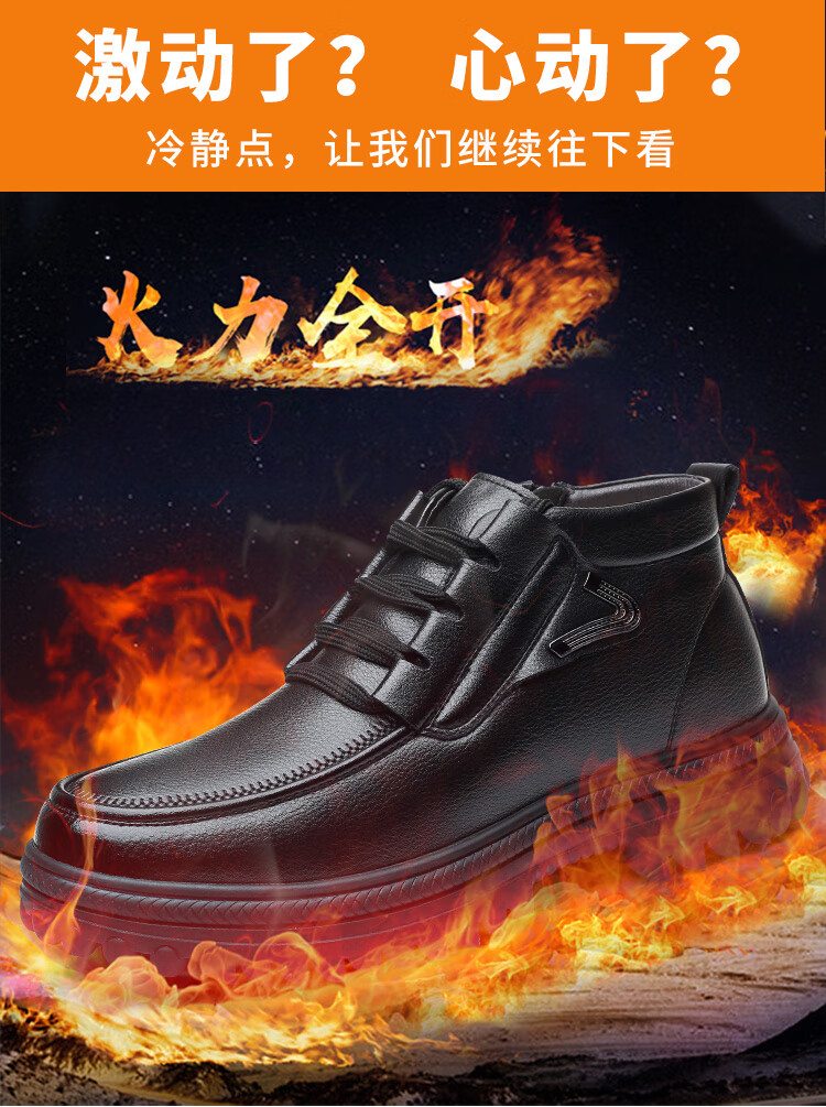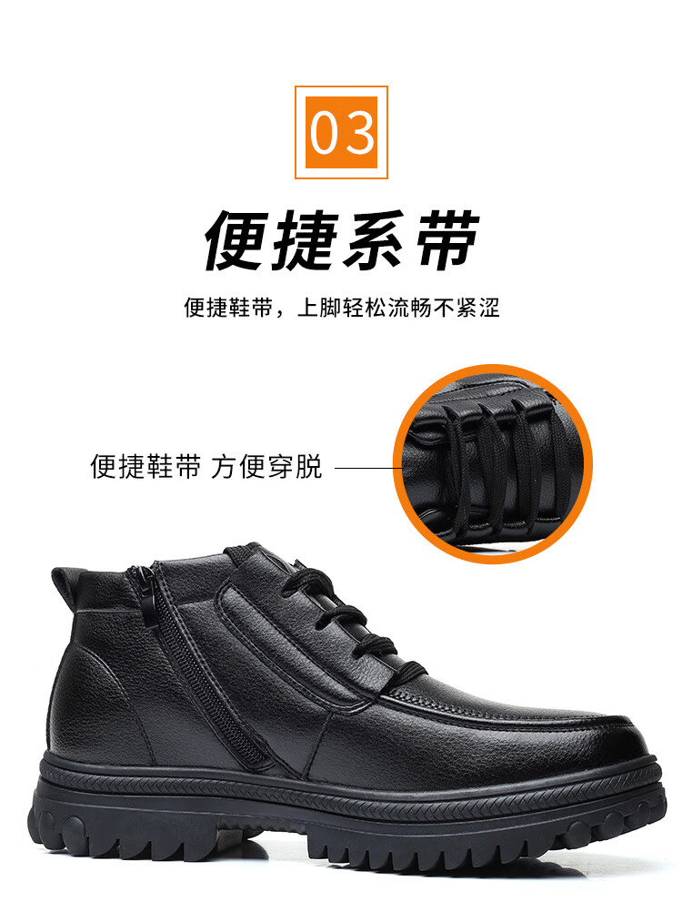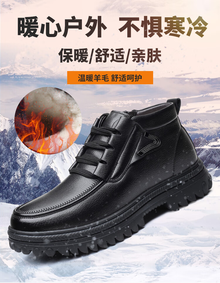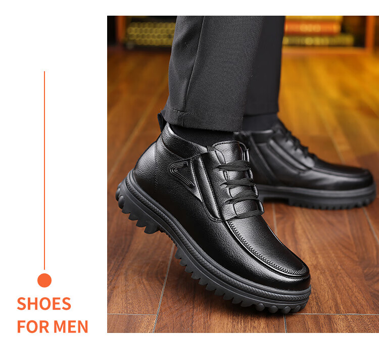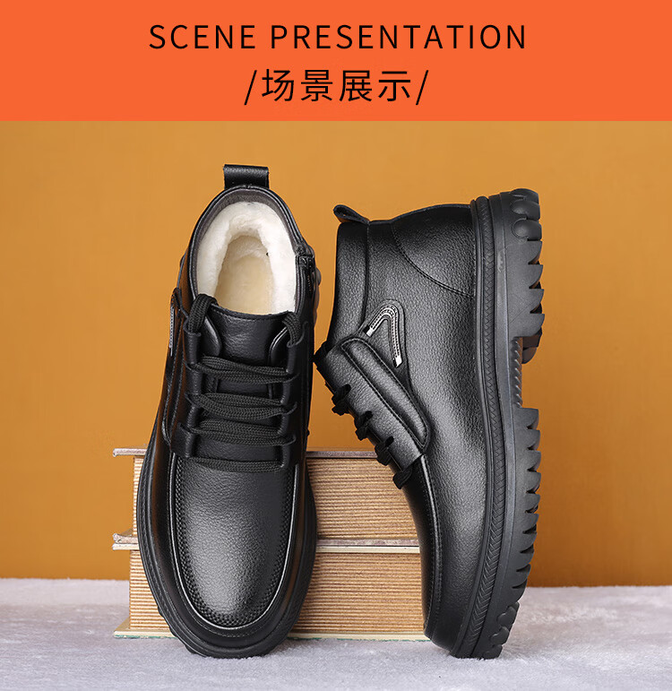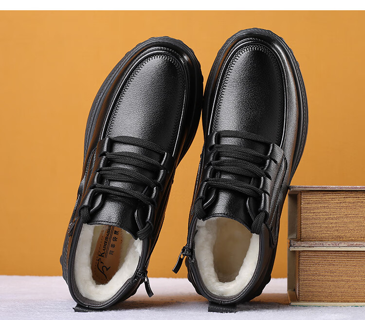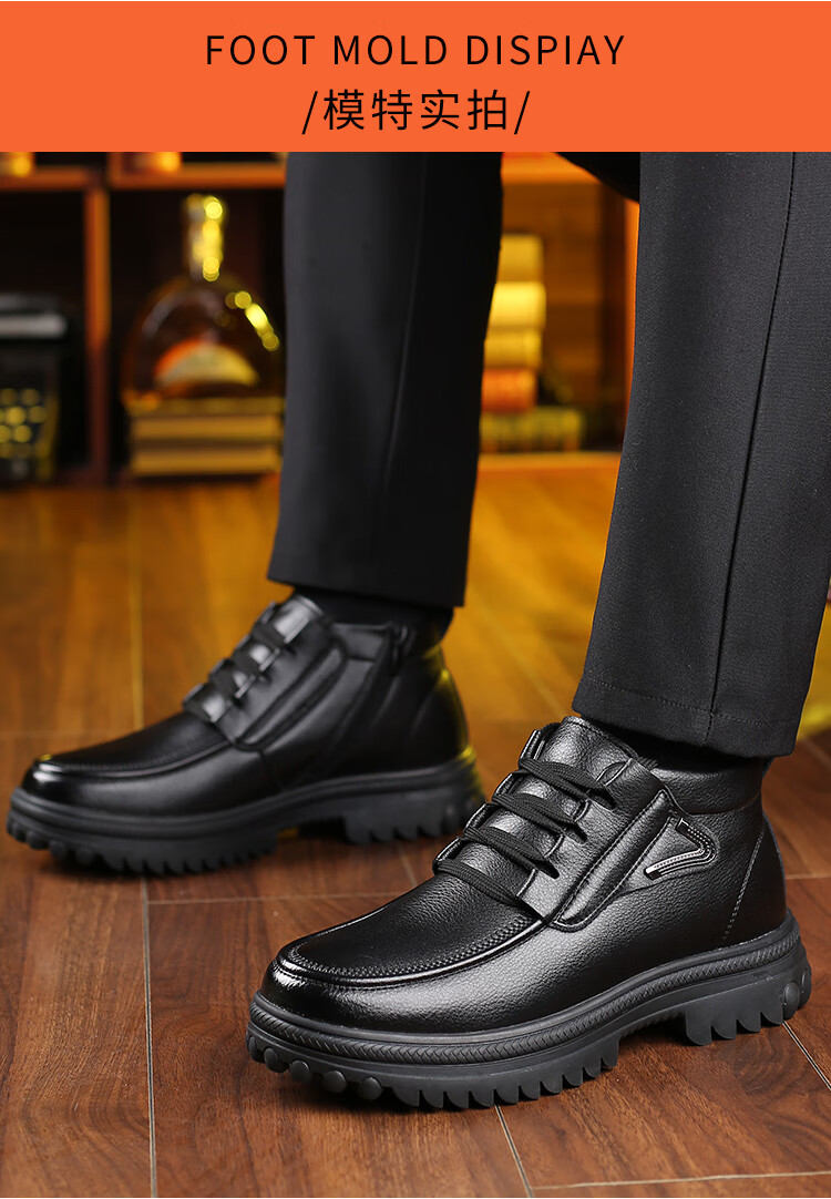稻草人(MEXICAN)特大码棉皮鞋45中老年男鞋46冬季保暖加绒羊毛一体47东北雪地靴48 5802黑色系带 38