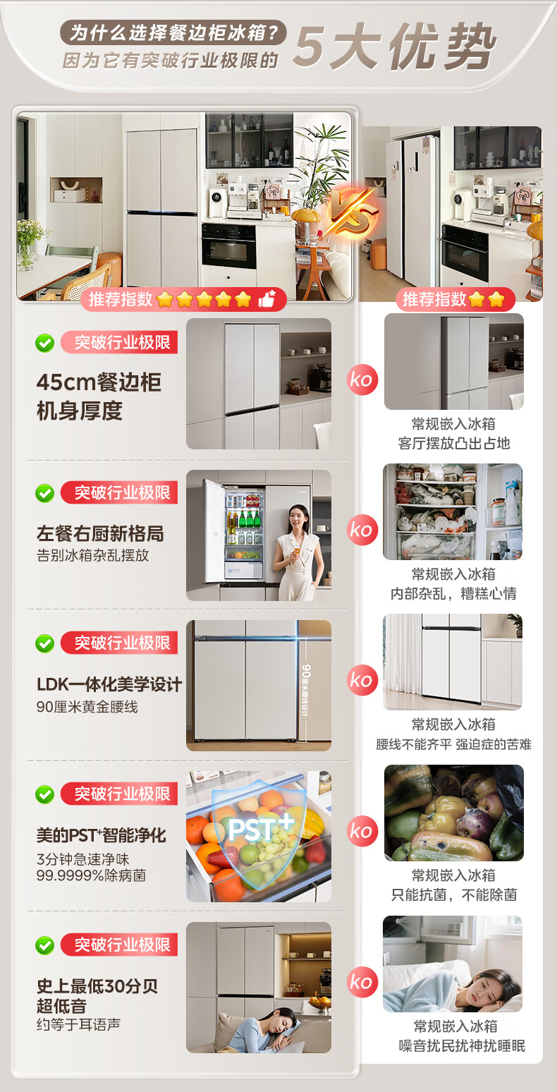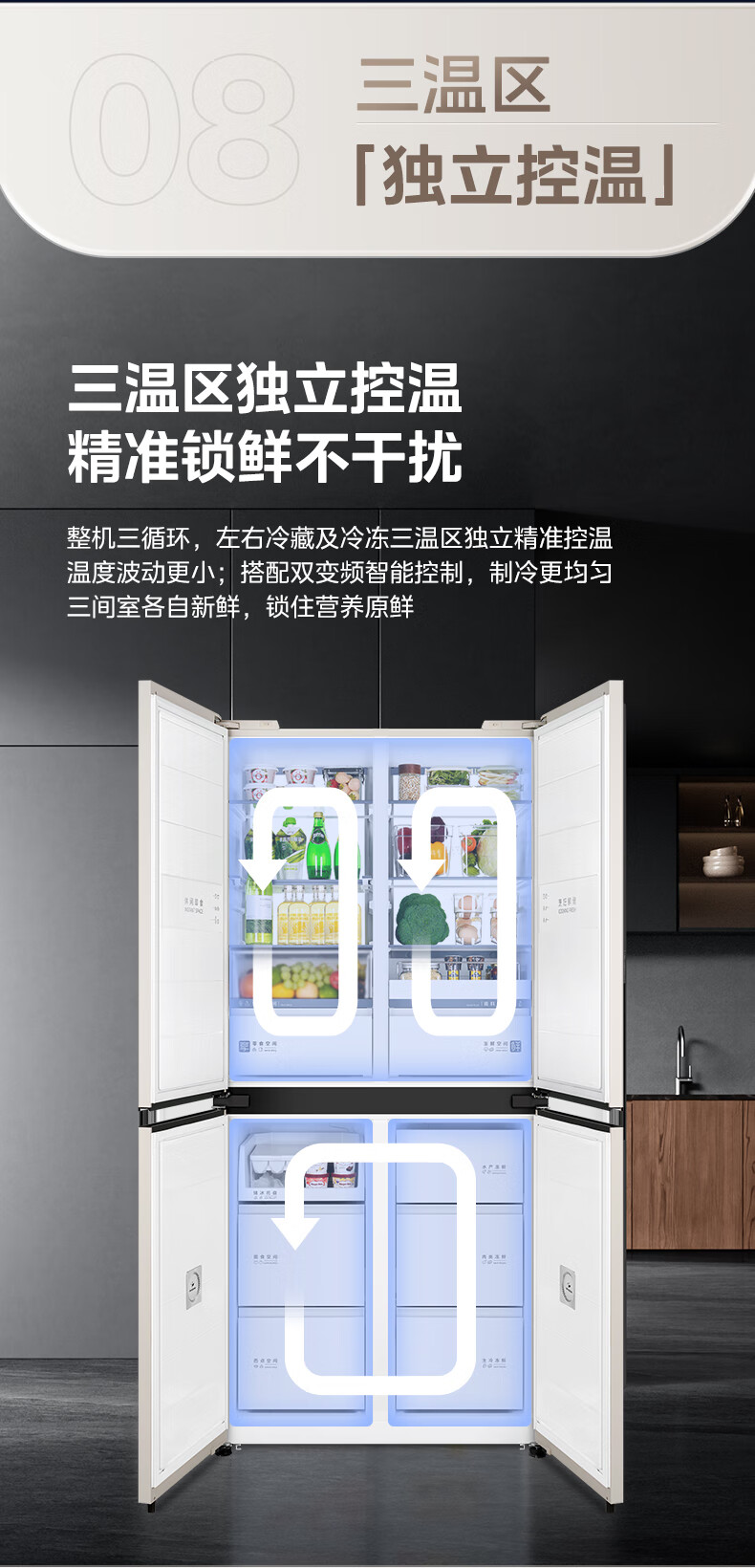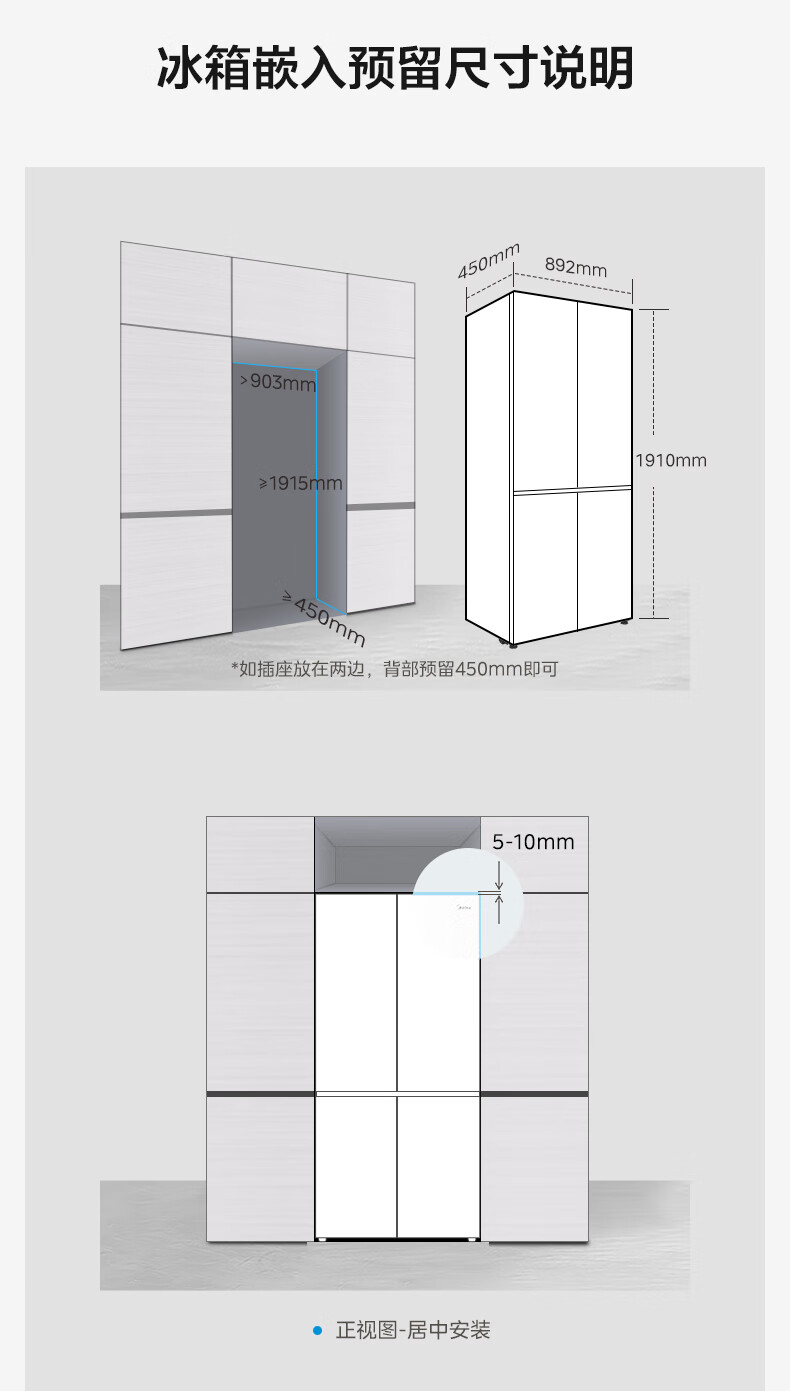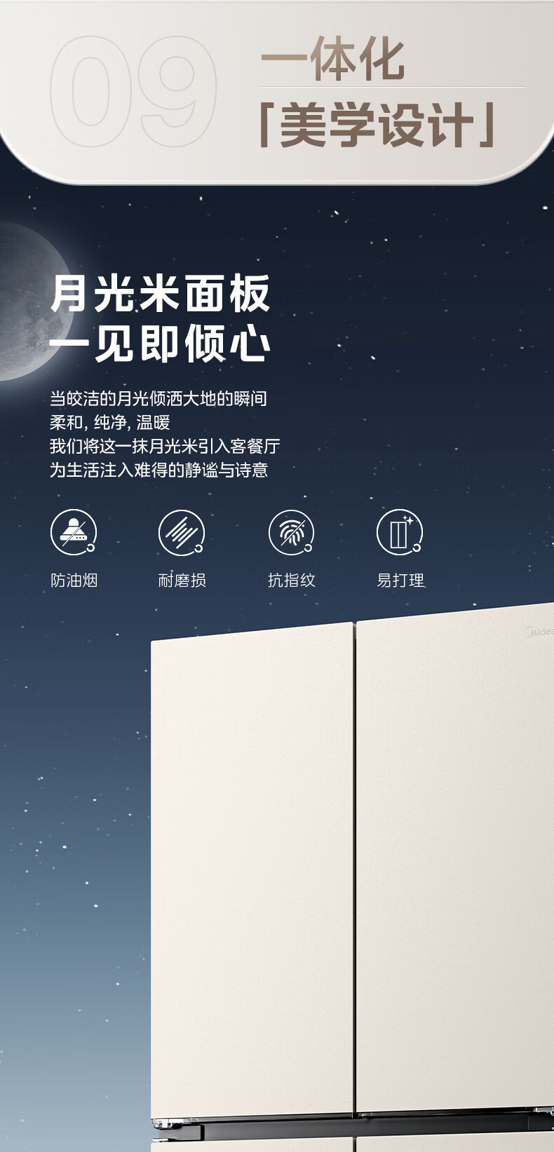 美的(Midea)餐边柜系列427L十字门45厘米薄嵌左餐右厨三循环一级能效风冷无霜以旧换新BCD-427WUSGPZM国家补贴