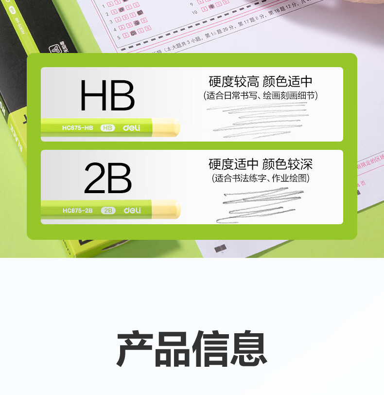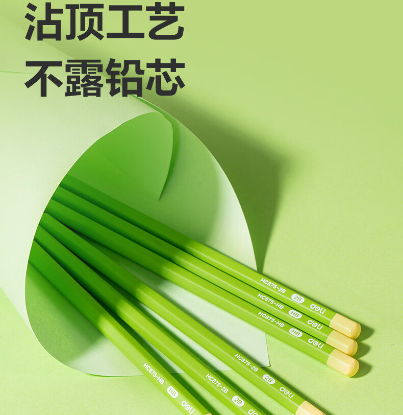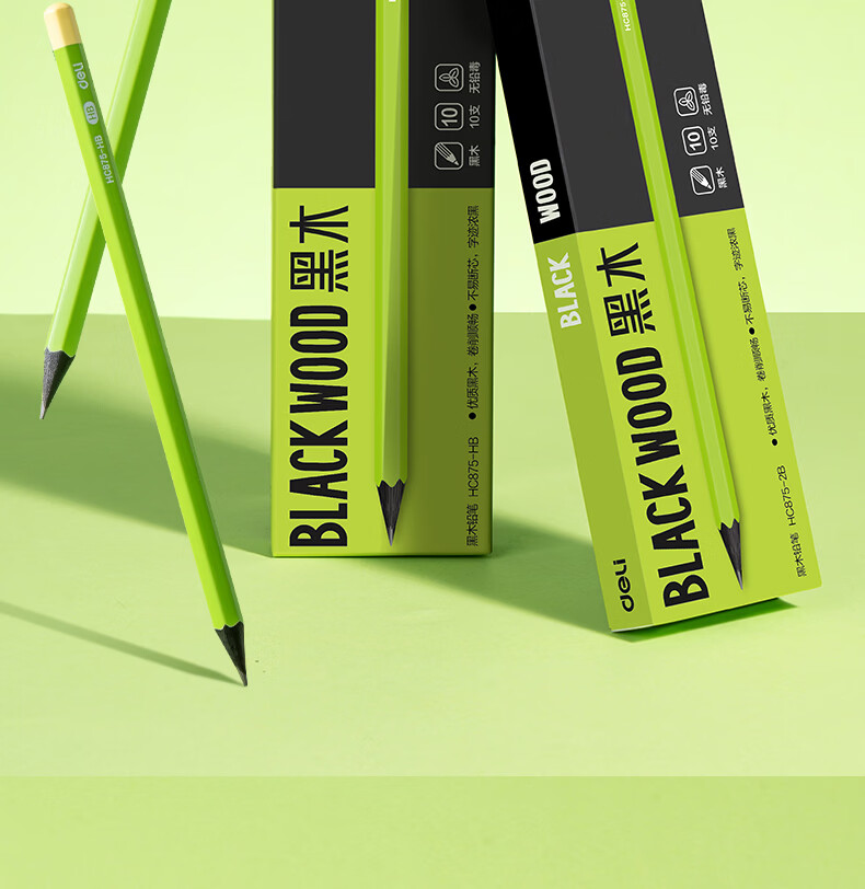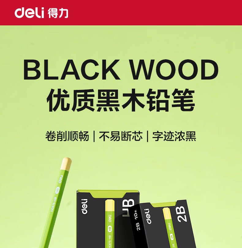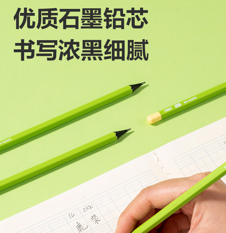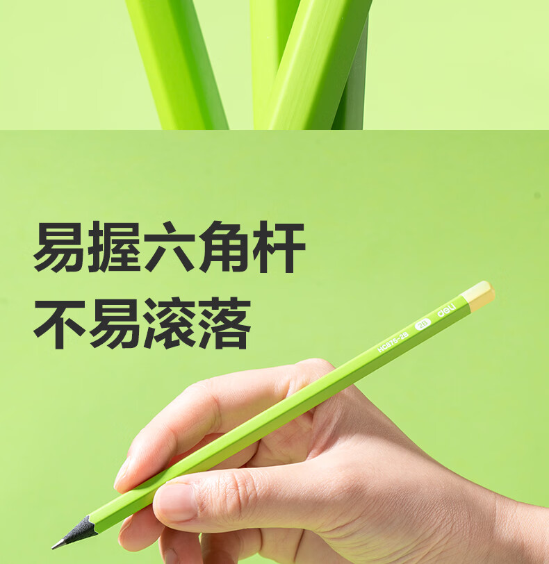 得力(deli)10支装HB黑木小绿杆铅笔护眼六角杆书写笔石墨铅芯无毒学生练字作业考试涂卡笔开学文具
