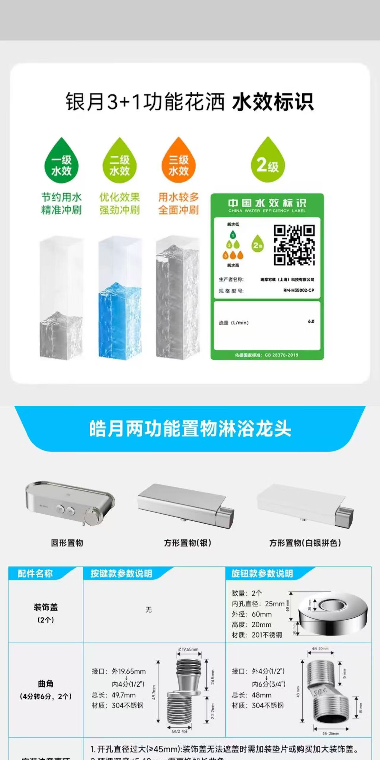 RESMO瑞摩皓月旋钮磁吸淋浴花洒套装全铜无顶喷增压花洒4件套