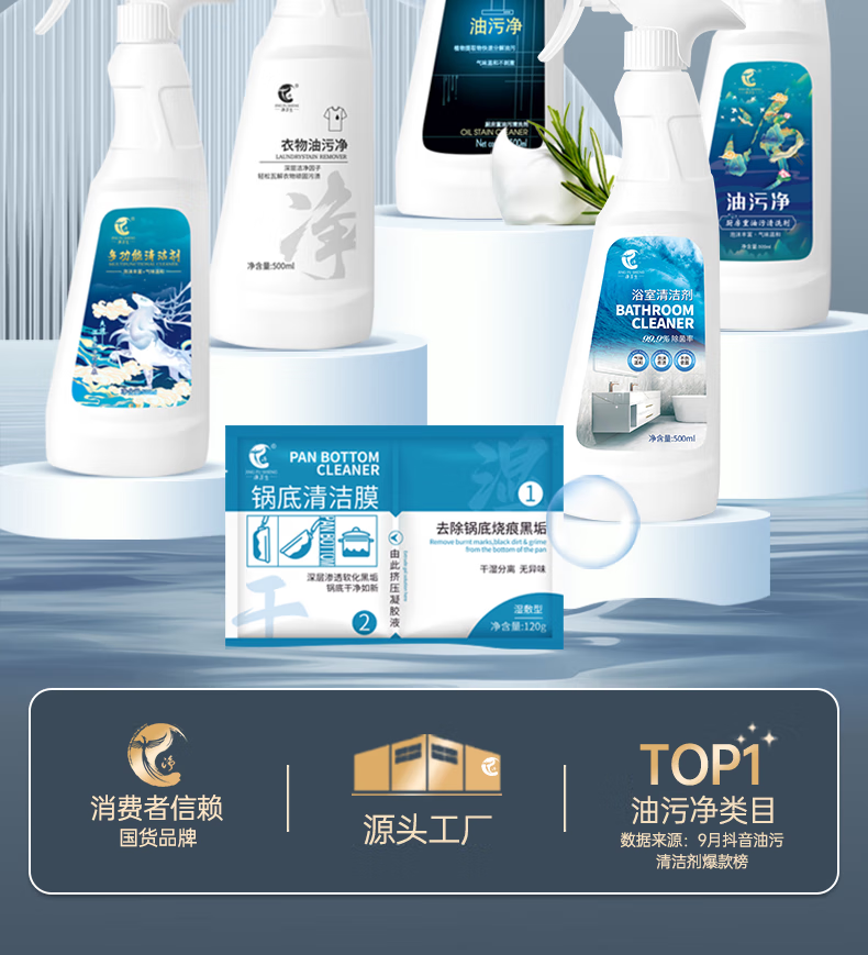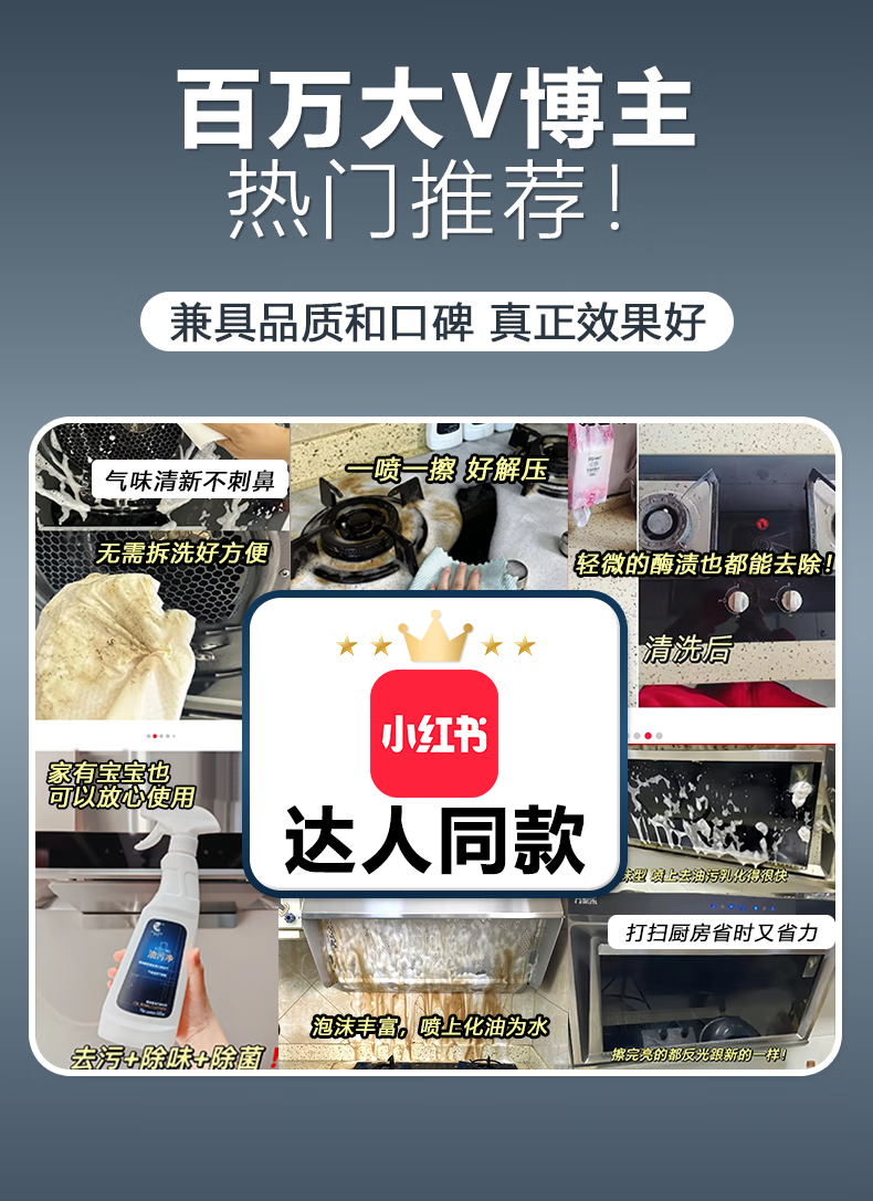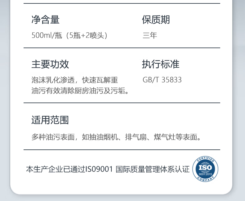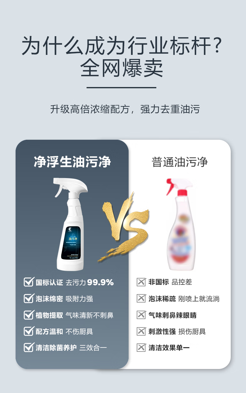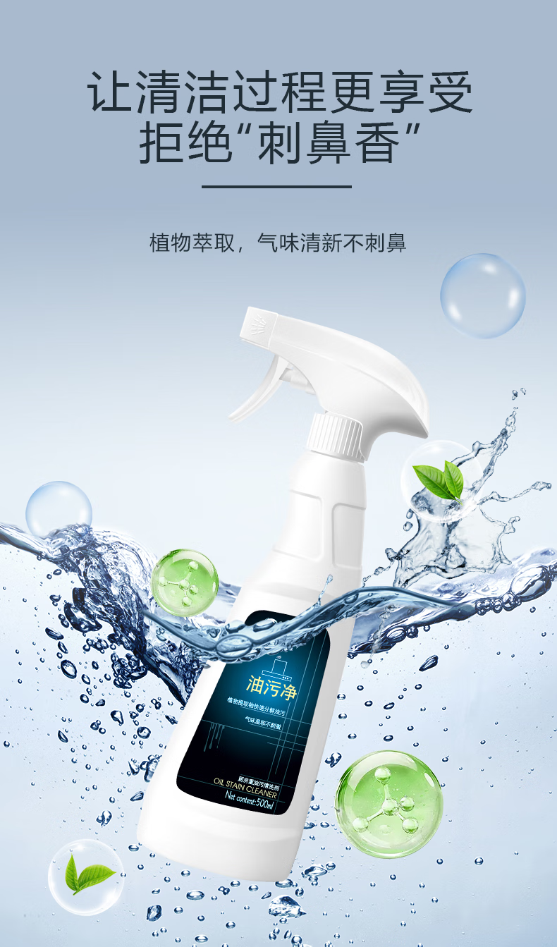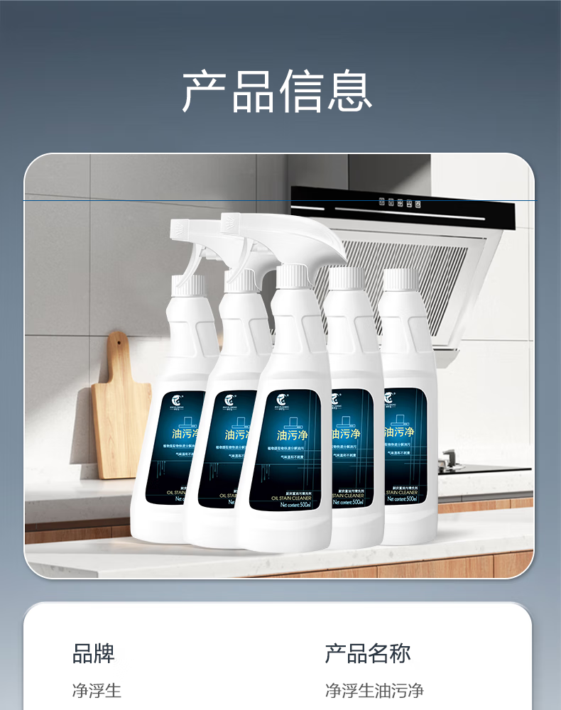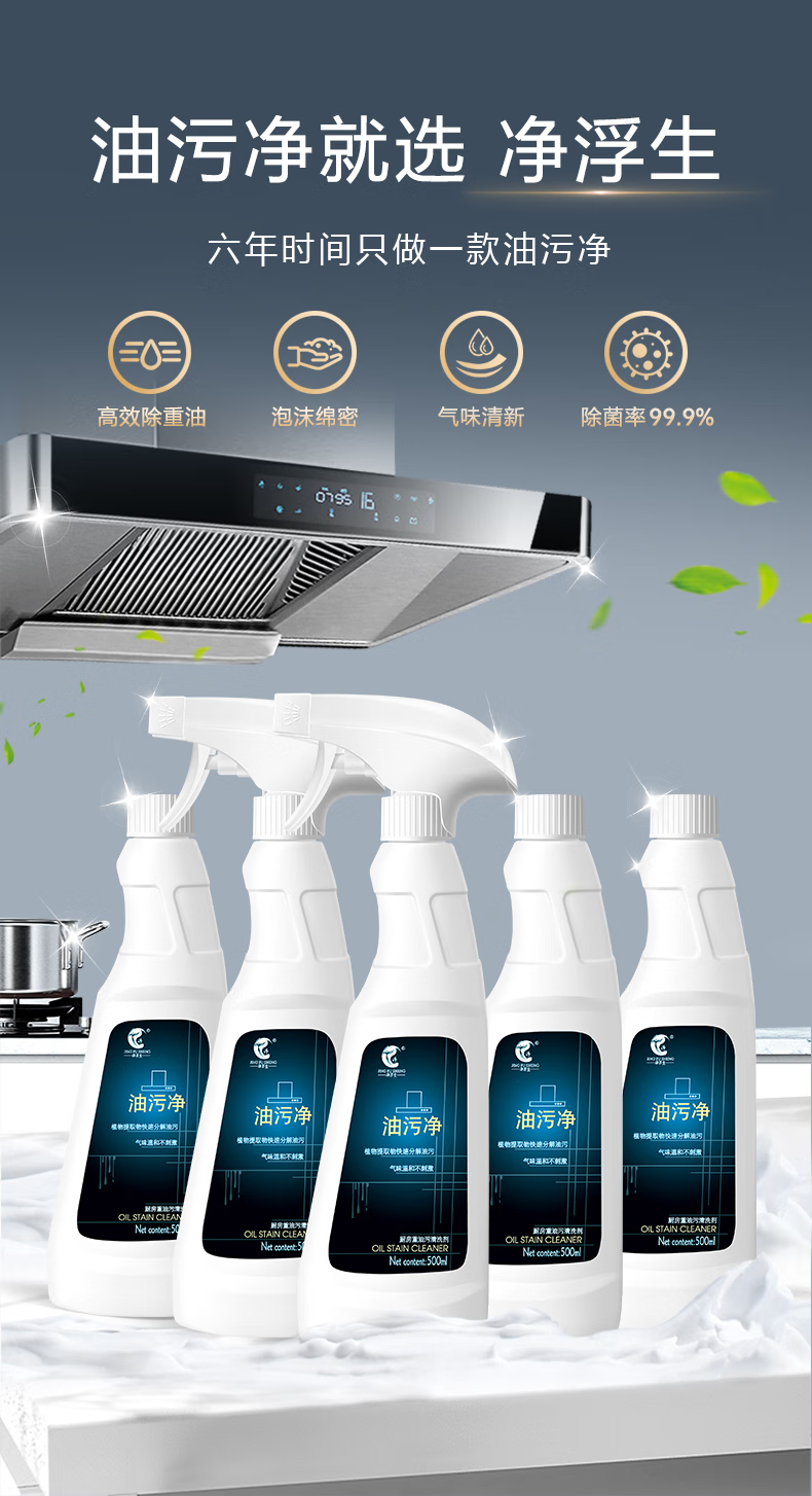 净浮生油污净厨房专用抽油烟机清洁剂去重油泡沫清洗剂年货节必囤 5瓶装 油污清洁剂500ml*5瓶+2个喷头