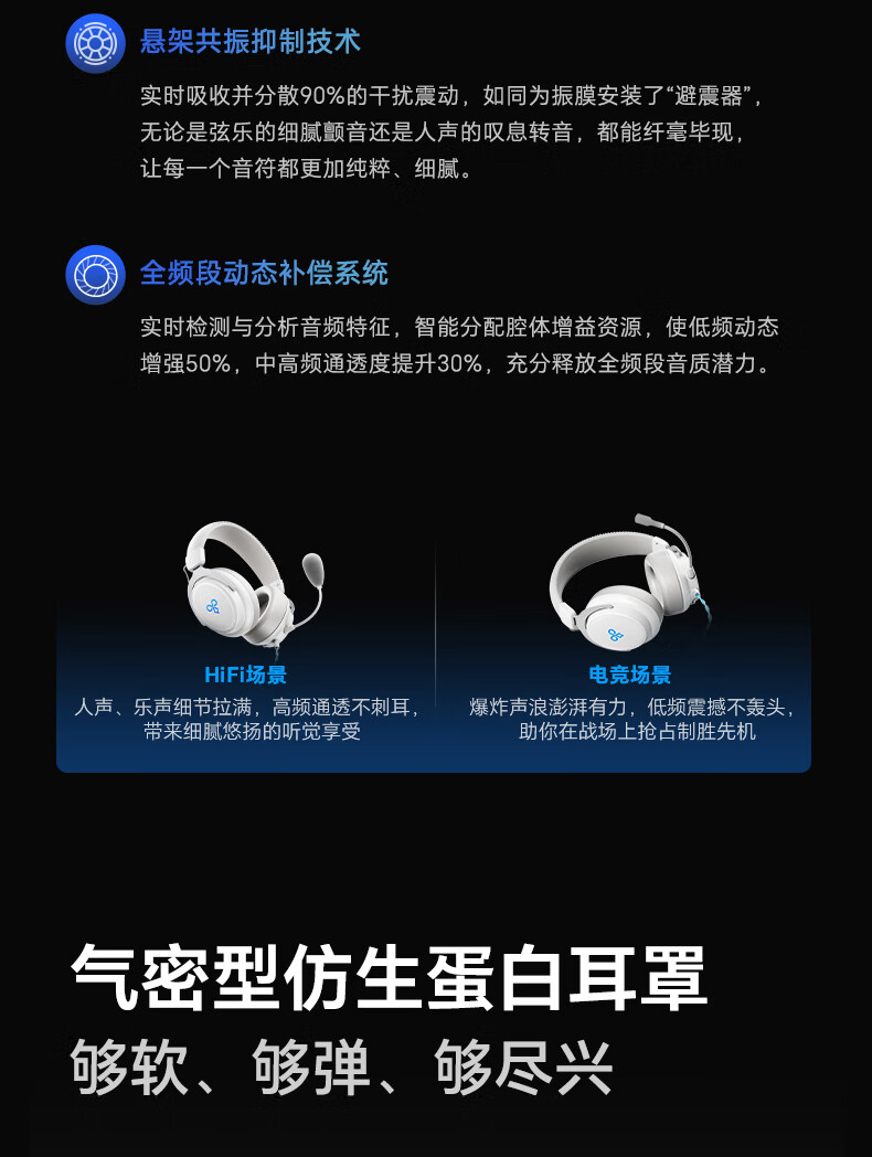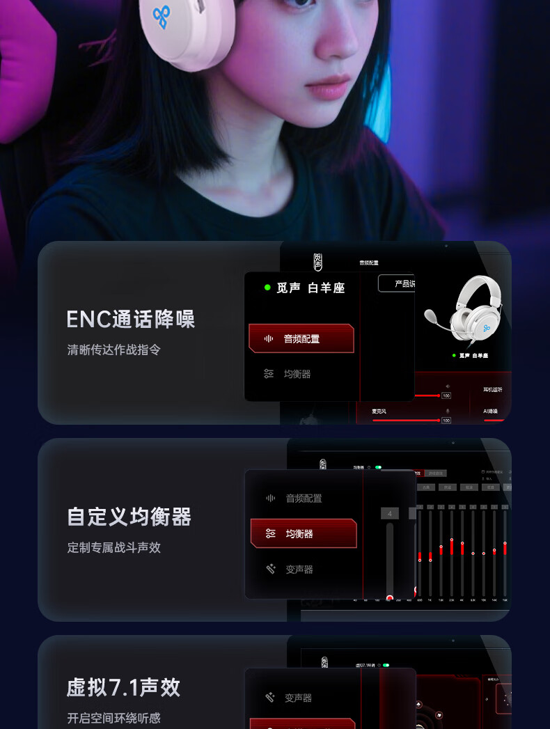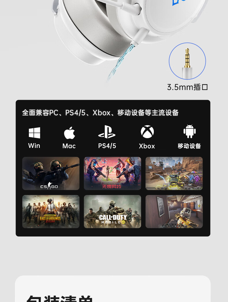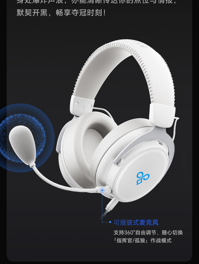 觅声白羊座游戏耳机头戴式有线带麦电竞专用电脑耳麦三角洲行动3.5/usb接口虚拟7.1音效声卡降噪麦克风 USB接口雪域白-赠耳机支架-集成星云声卡芯片