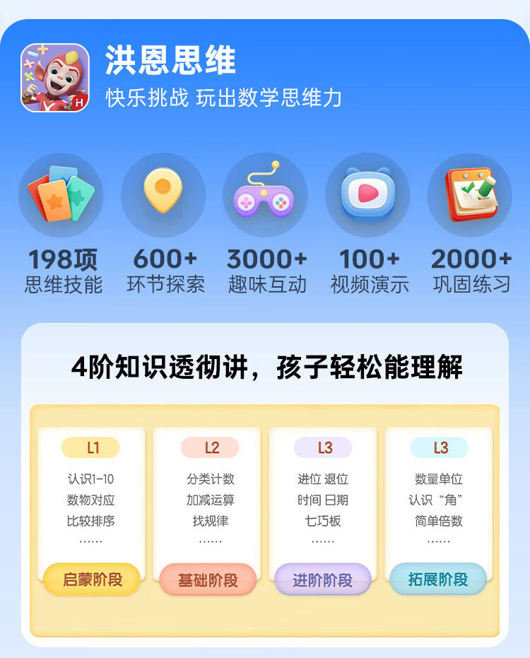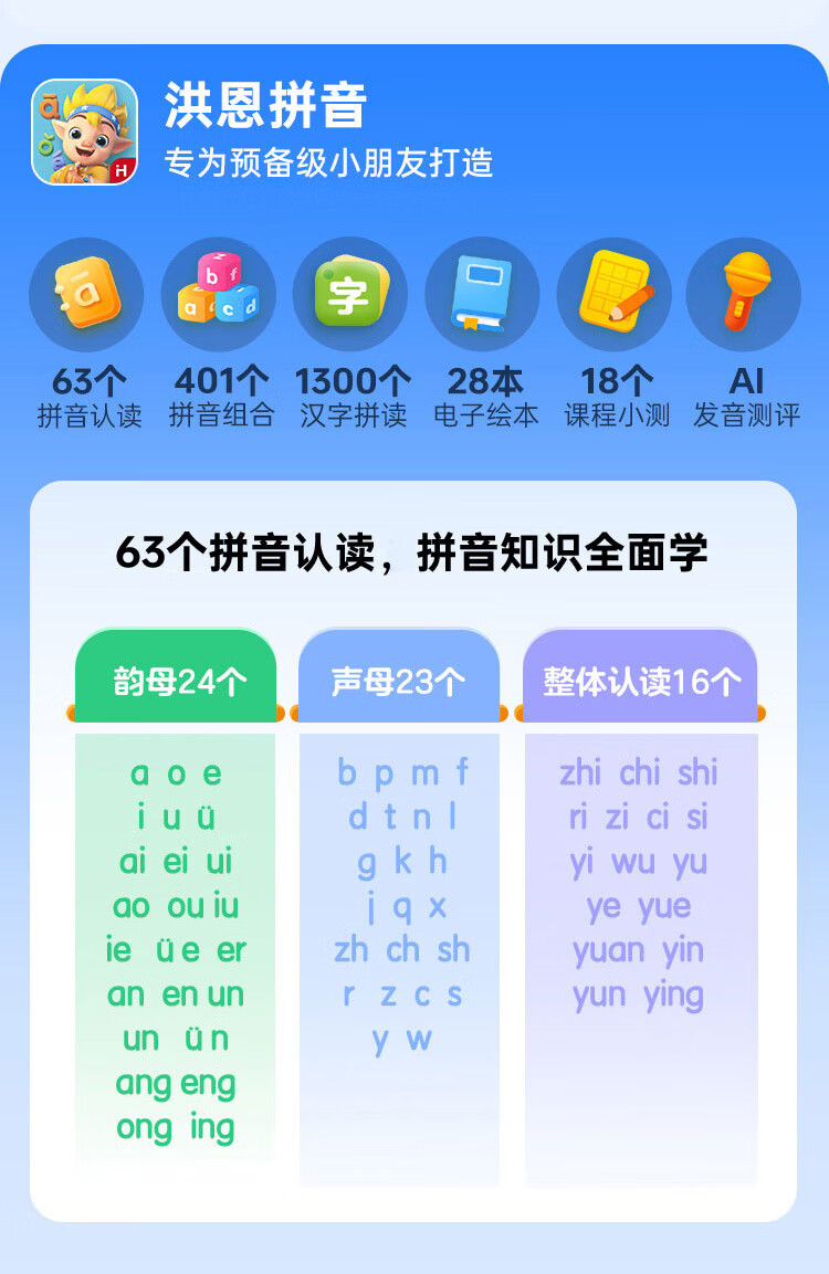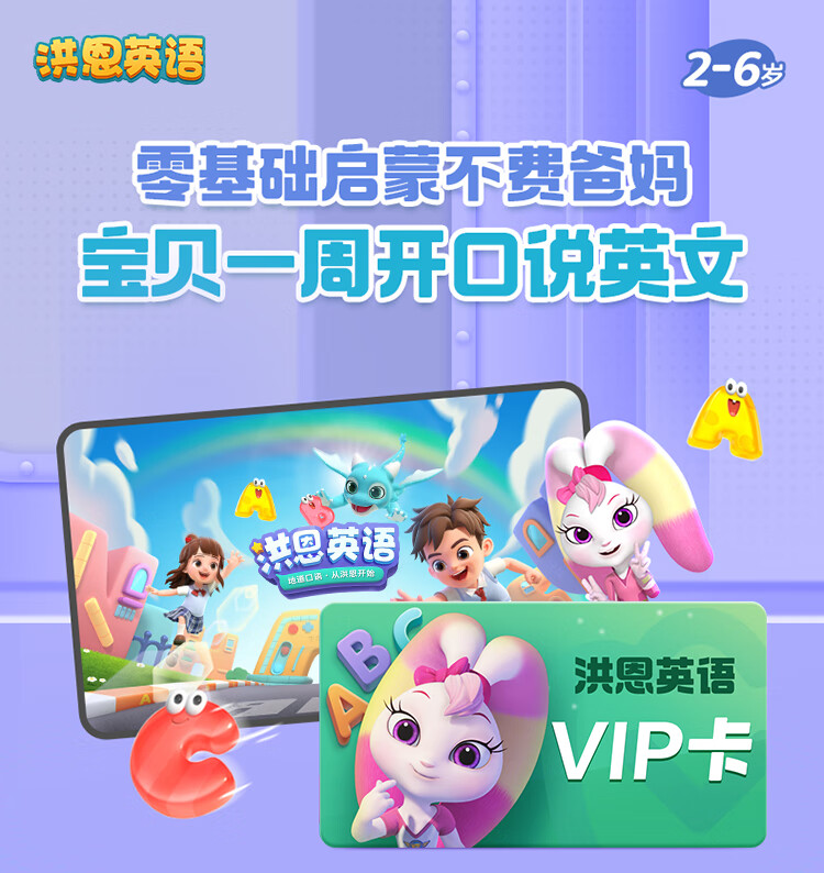 洪恩拼音启蒙数学启蒙英语会员早教男女孩儿童生日开学礼物3-6岁