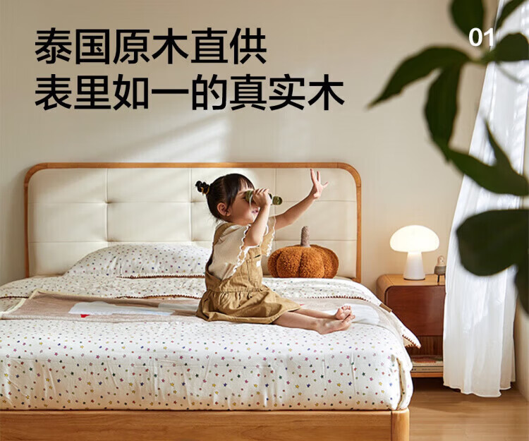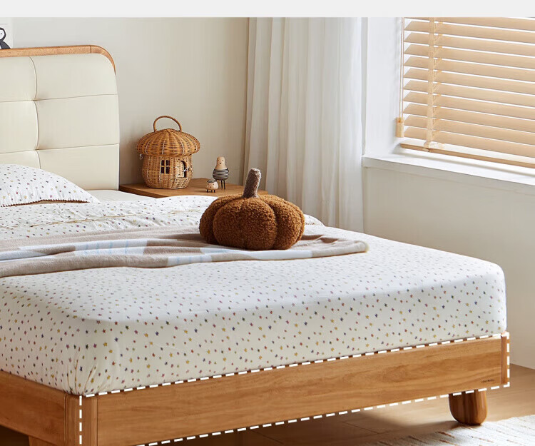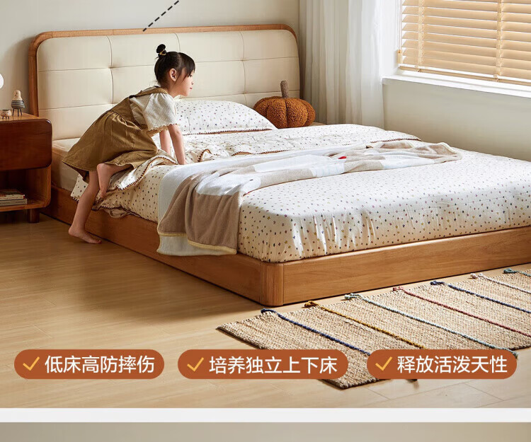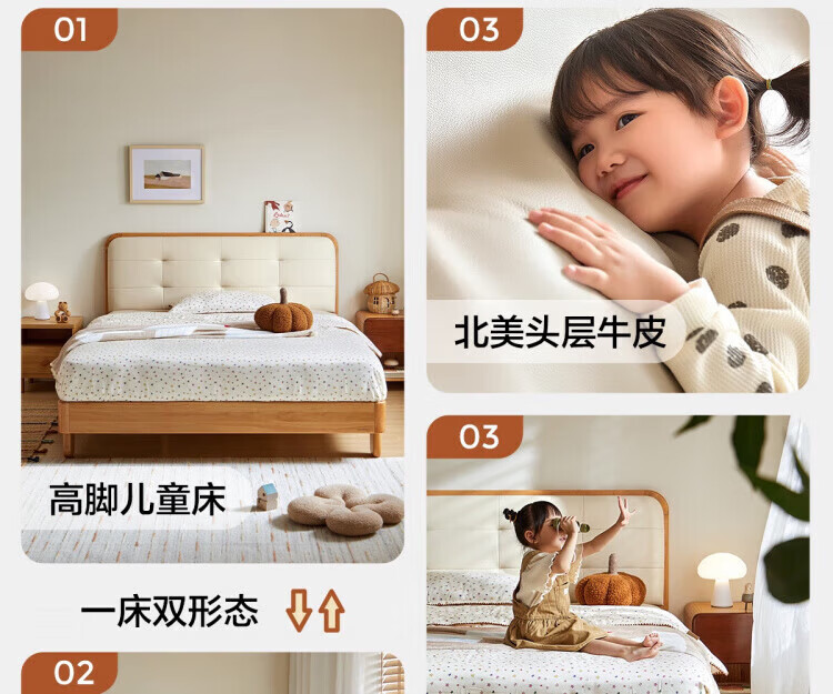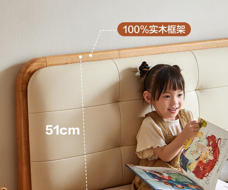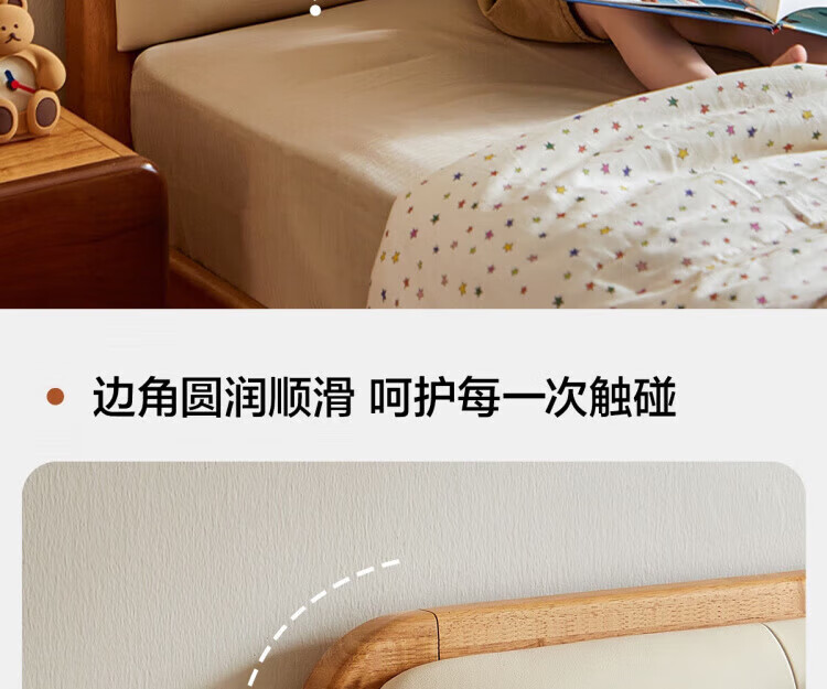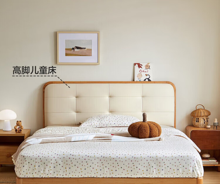 LINSY KIDS林氏家居儿童床1.35米1.5米可选软包真皮床卧室公主床LH275A1 原木色【真皮床】可选0胶垫 1.2x2米 单床