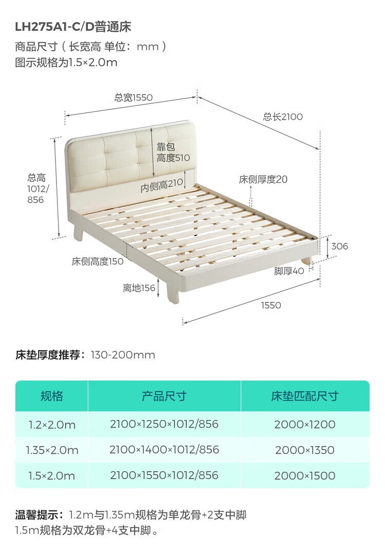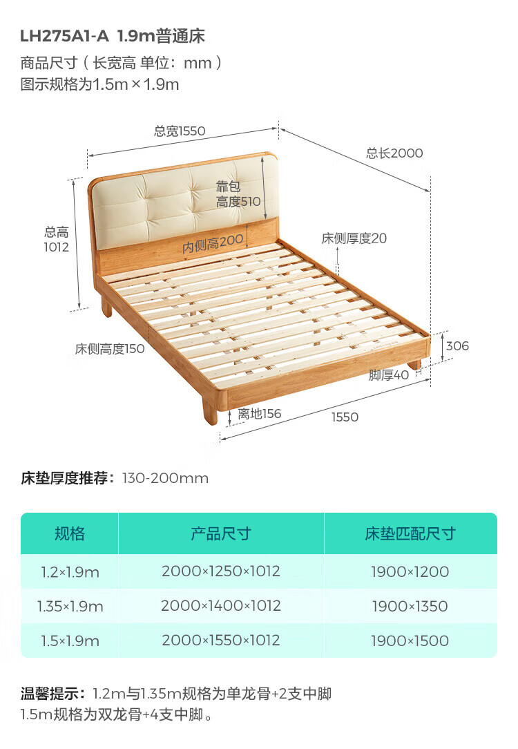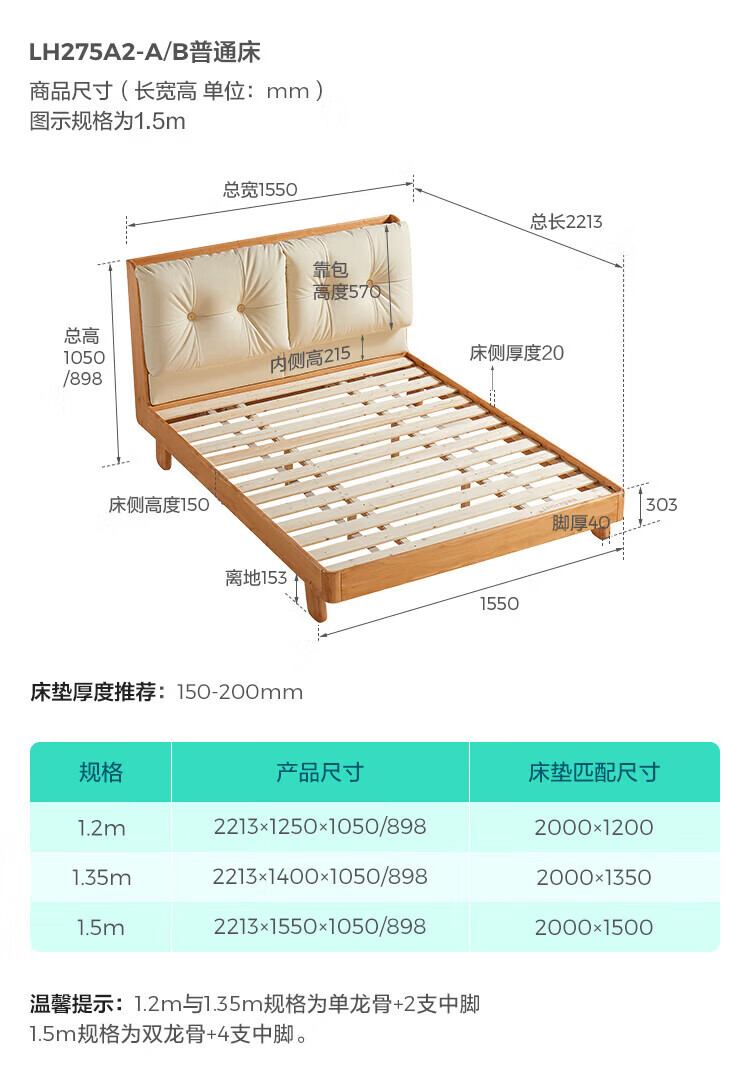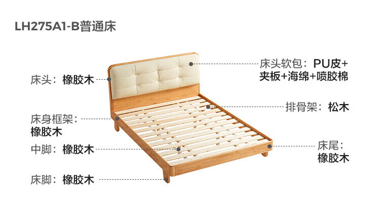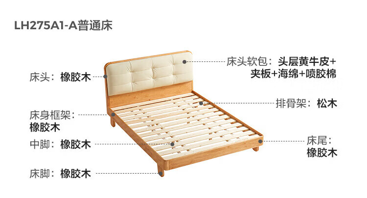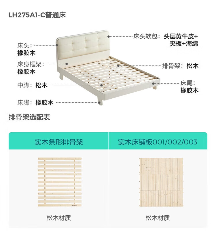 LINSY KIDS林氏家居儿童床1.35米1.5米可选软包真皮床卧室公主床LH275A1 原木色【真皮床】可选0胶垫 1.2x2米 单床
