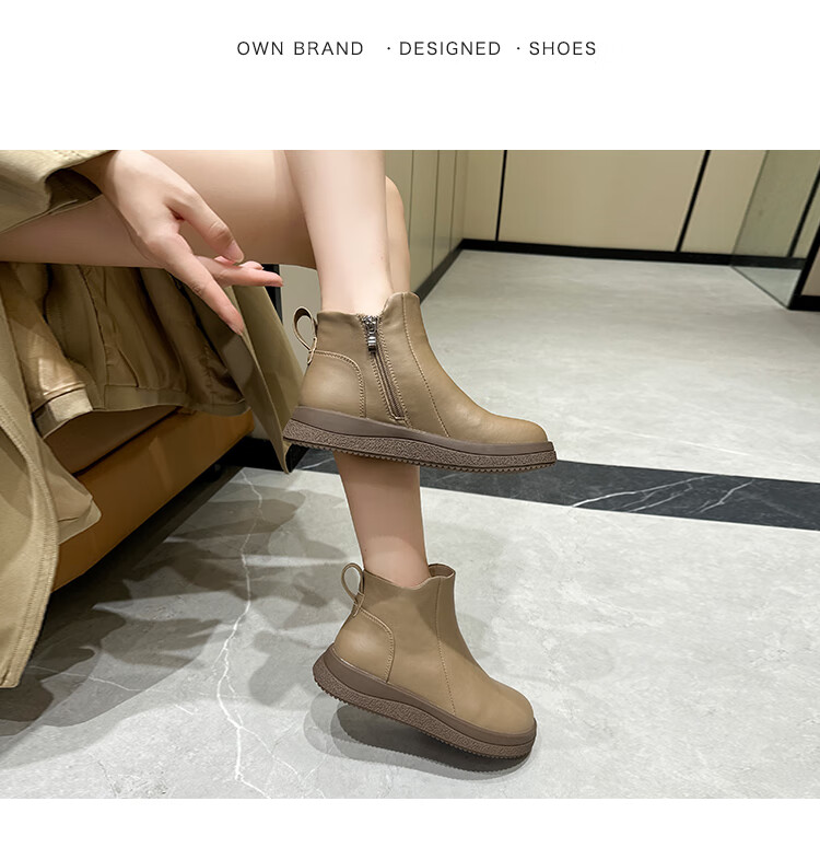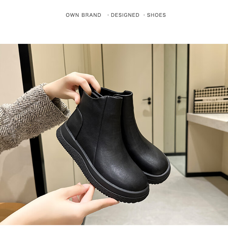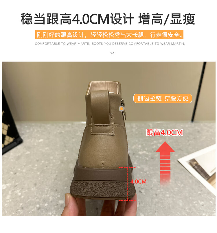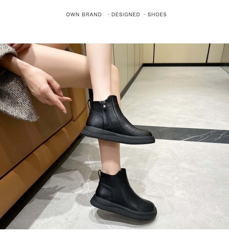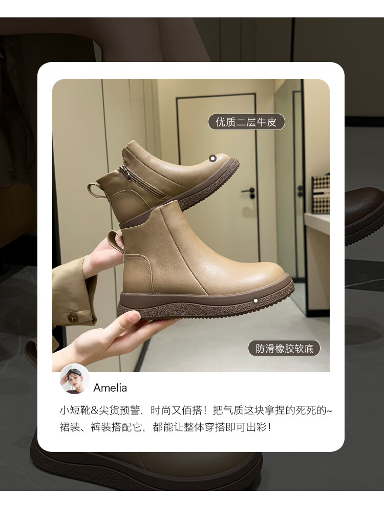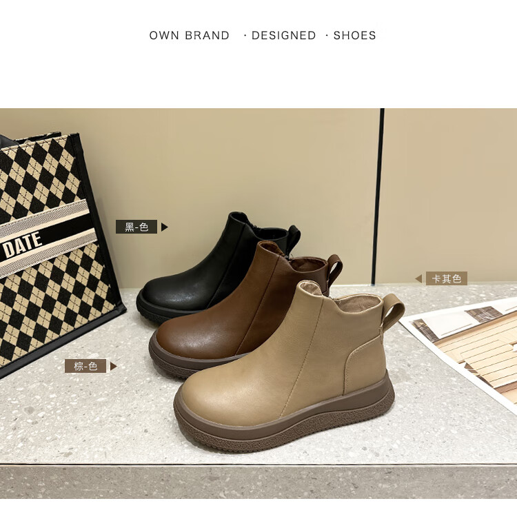 稻草人(MEXICAN)马丁靴女2026秋冬真皮爆款复古保暖棉靴皮鞋靴新款秋冬季软底短靴 黑色 36