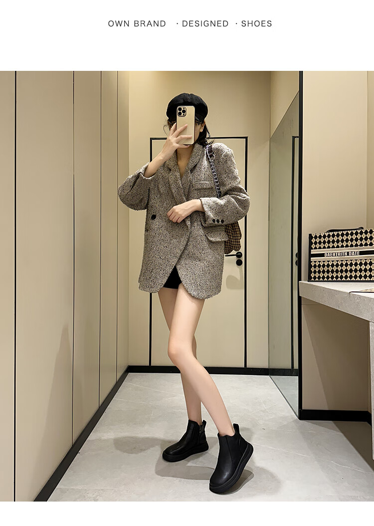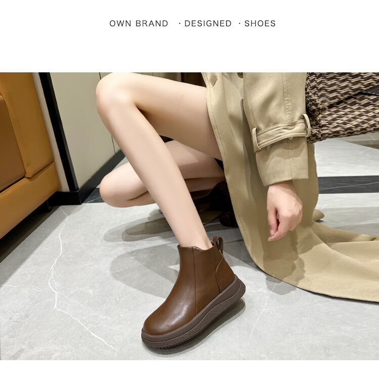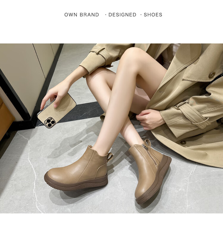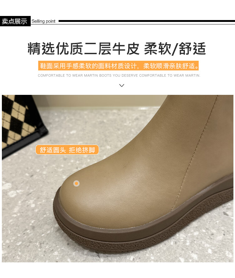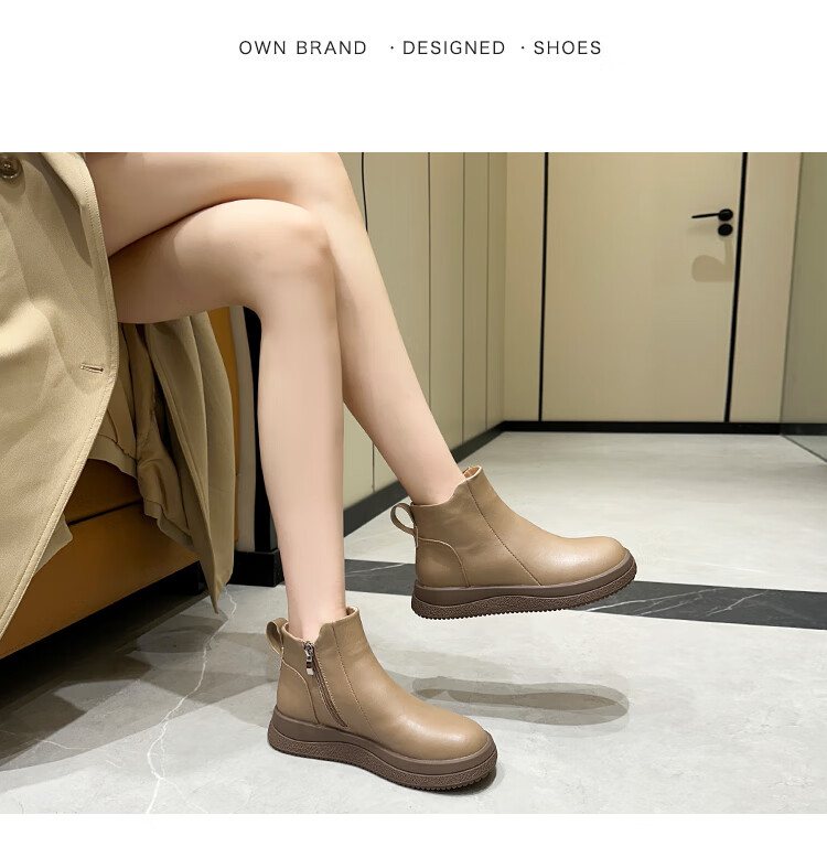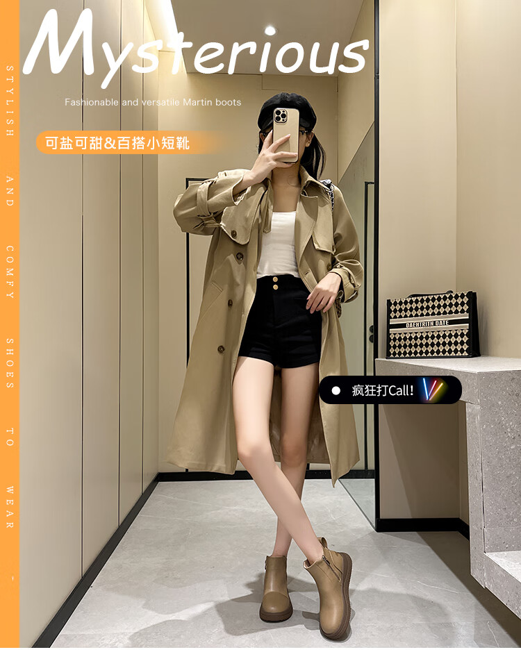 稻草人(MEXICAN)马丁靴女2026秋冬真皮爆款复古保暖棉靴皮鞋靴新款秋冬季软底短靴 黑色 36
