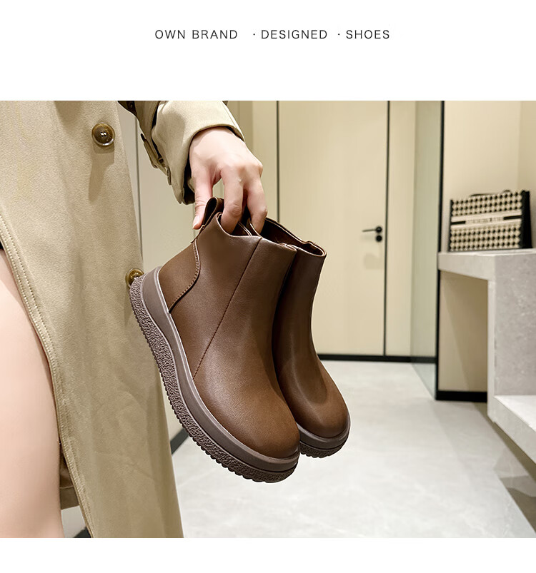 星期六厚底雪地靴女2025新款冬季加绒加厚面包鞋防滑短靴保暖棉鞋 咖啡色 【加绒保暖】 35