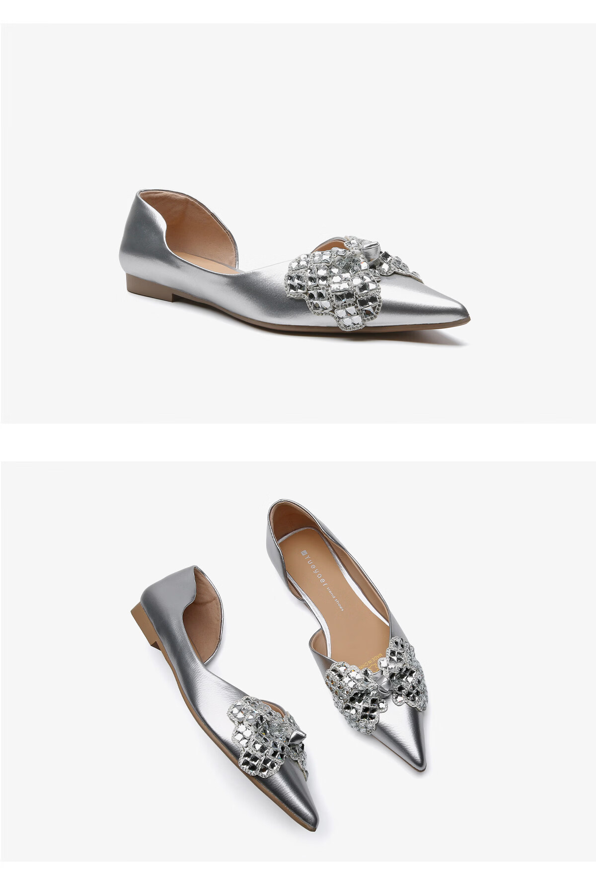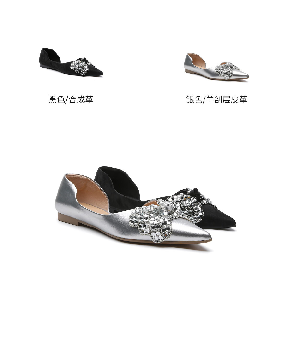 月芽儿2025年冬季夏季新款优雅水钻蝴蝶结尖头浅口单鞋女通勤猫跟女鞋 黑色01S 34