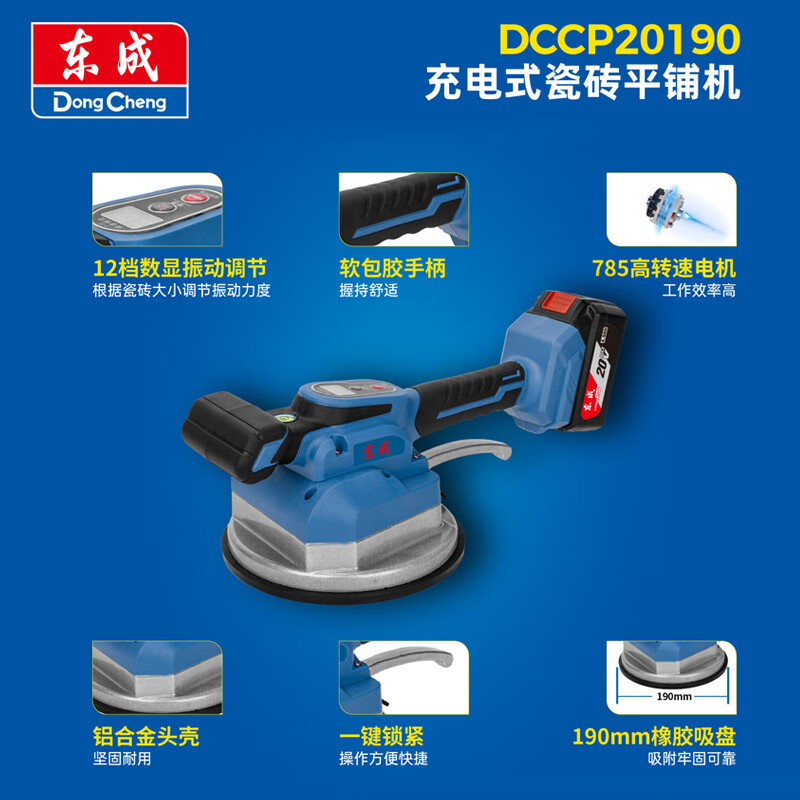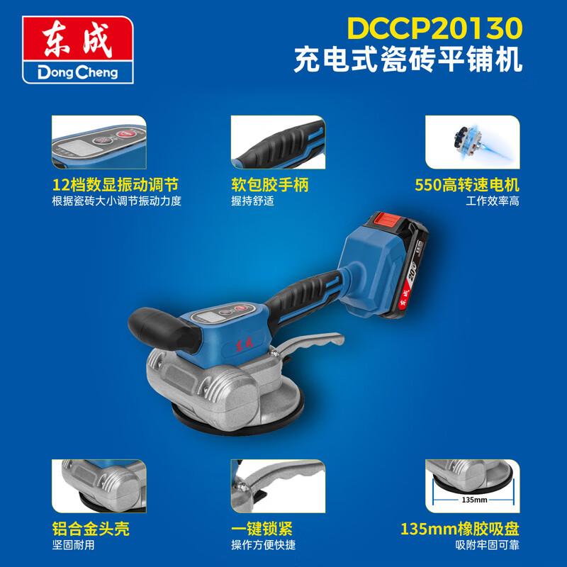 东成 充电瓷砖平铺机锂电贴砖振动机地砖振动器大功率贴砖神器铺平机 DCCP20130ADM 单电20V2.0ah 60W(130mm吸盘直径)