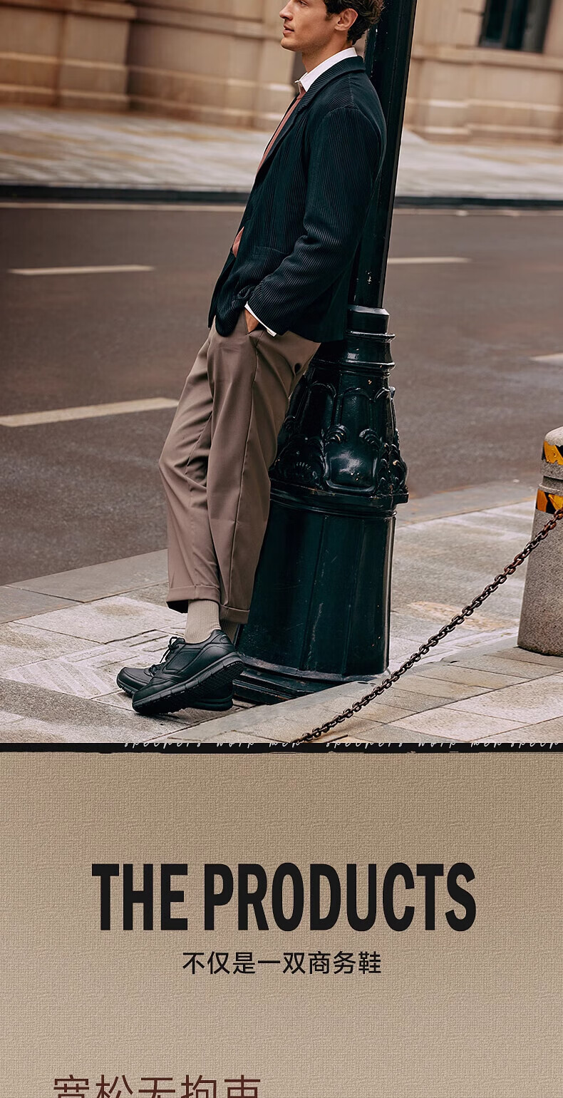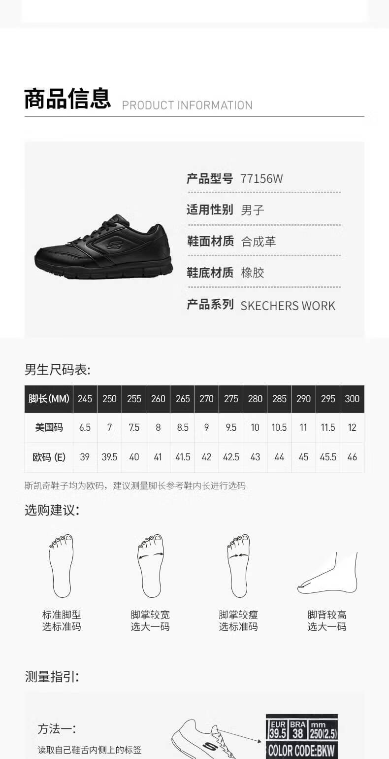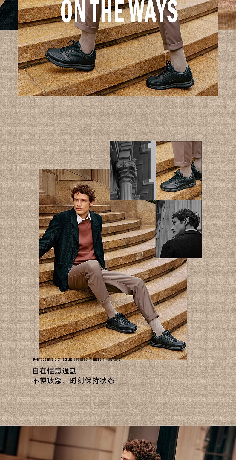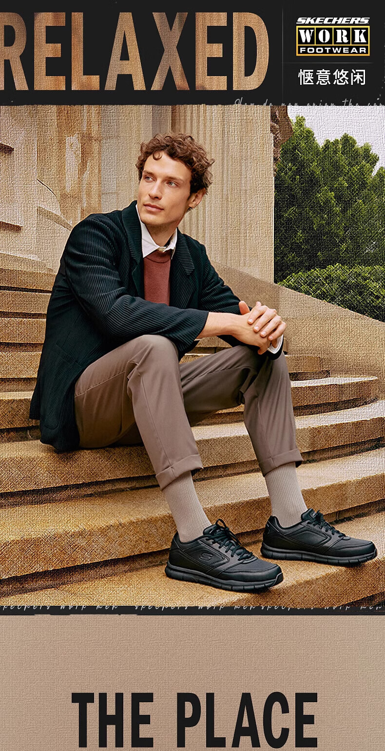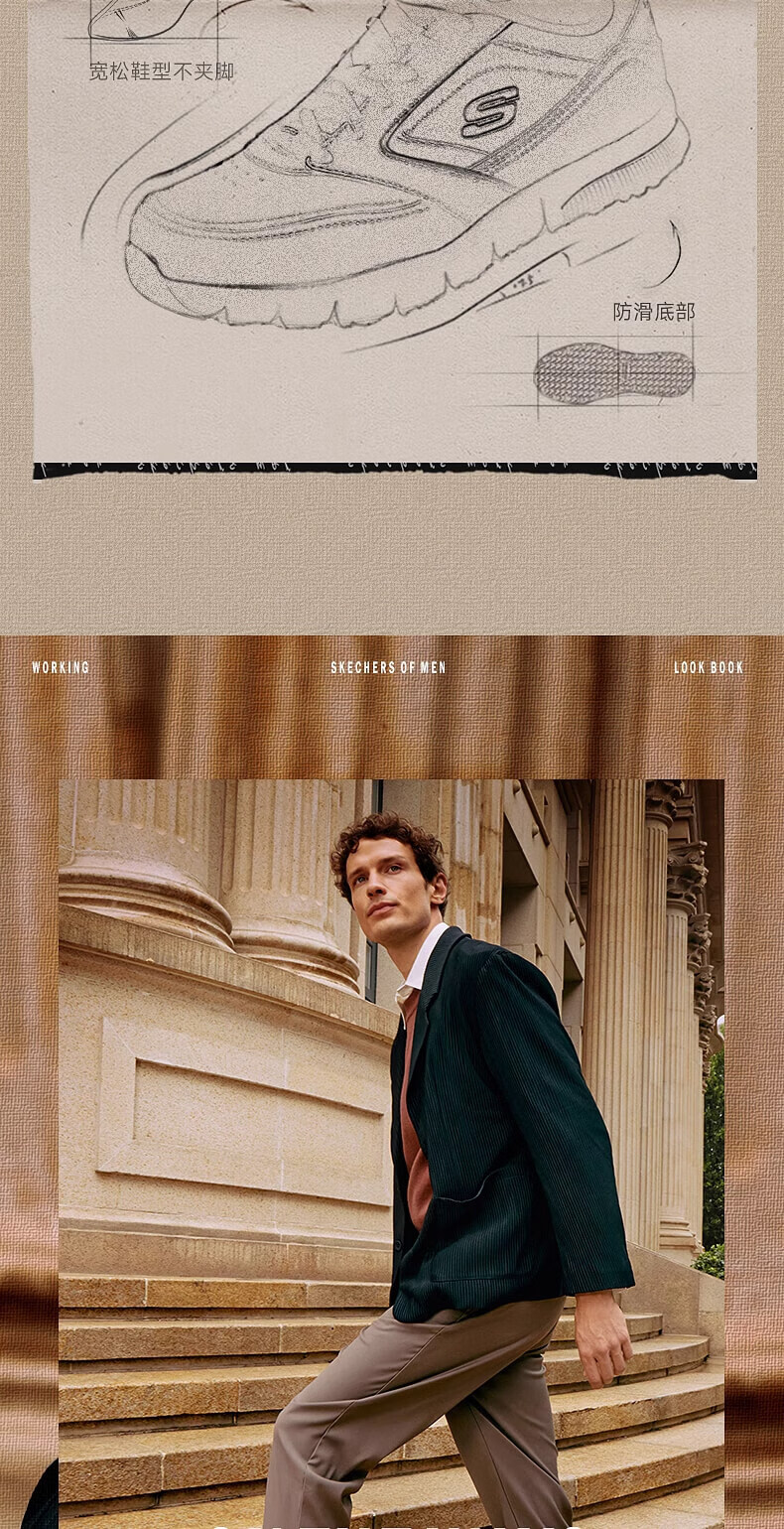 斯凯奇(Skechers)新年礼物男士商务鞋冬厚底休闲板鞋软底舒适上班鞋工作鞋77156