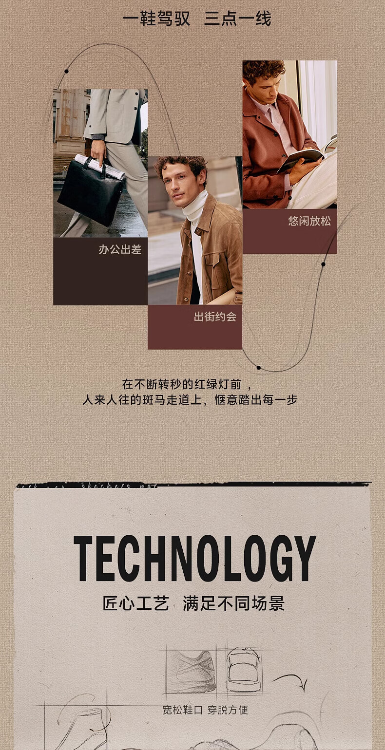 奥康(Aokang)男鞋套脚商务休闲皮鞋男士牛皮软底一脚蹬皮鞋黑色43码