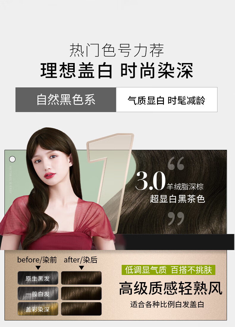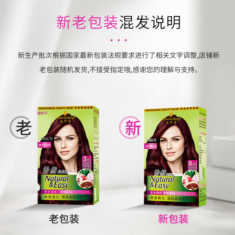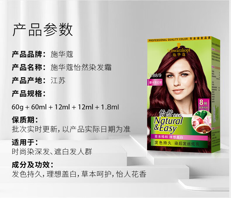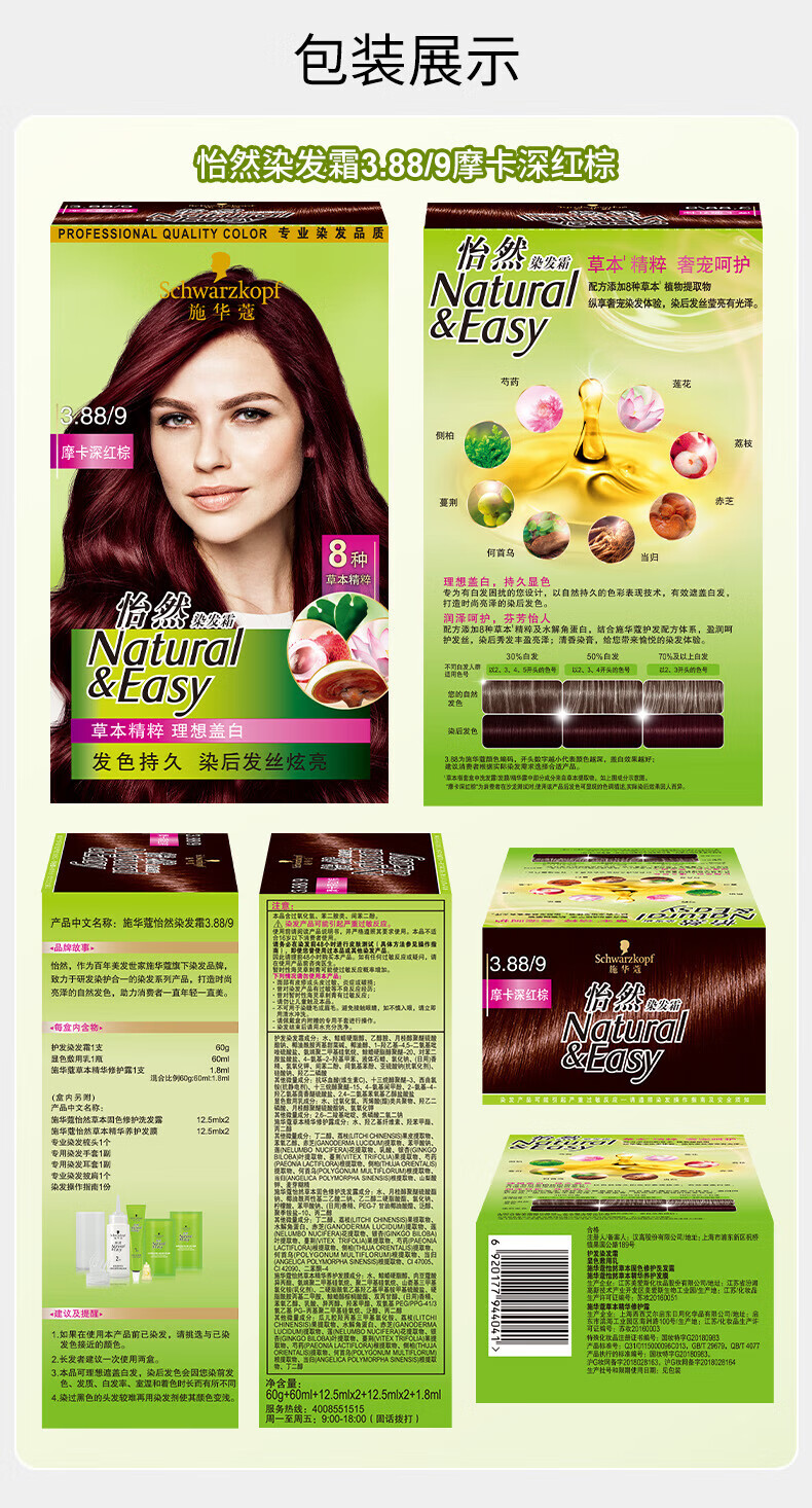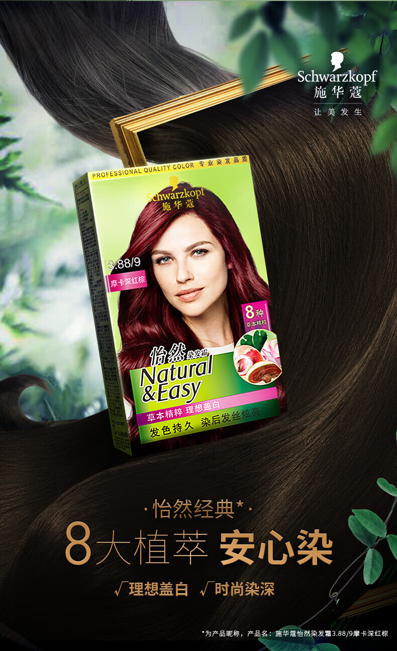施华蔻怡然植物染发霜3.88摩卡深红棕(草本染发剂染发膏 男女士 盖白发)
