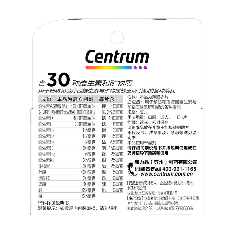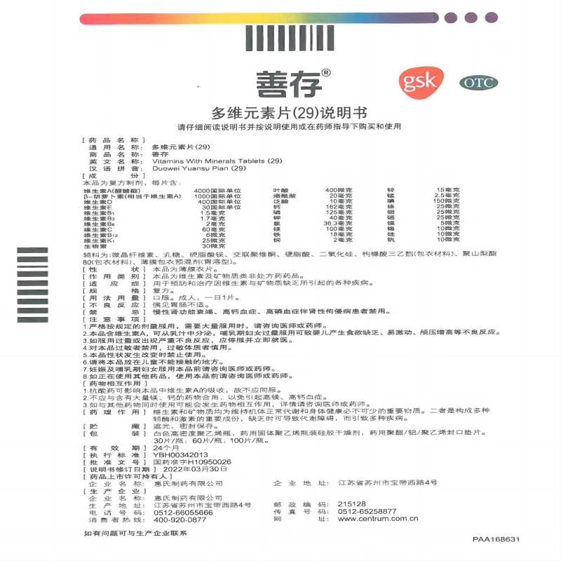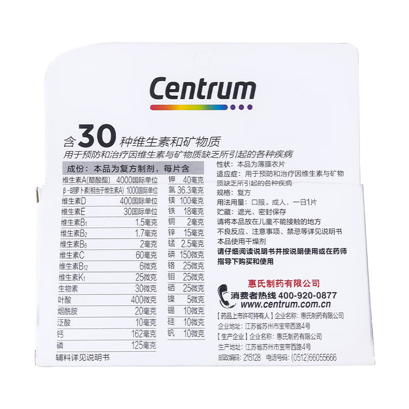 善存多维元素片(29) 30片OTC成人补充30种复合维生素d叶酸备孕期维生素cVb族Ve钙铁锌VA