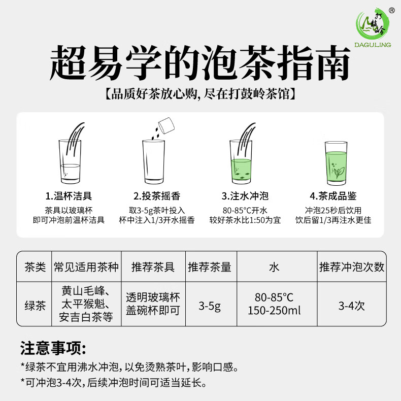 打鼓岭茶叶绿茶 安吉白叶一号珍稀白茶100g*1袋 雨前新茶 茶叶自己喝