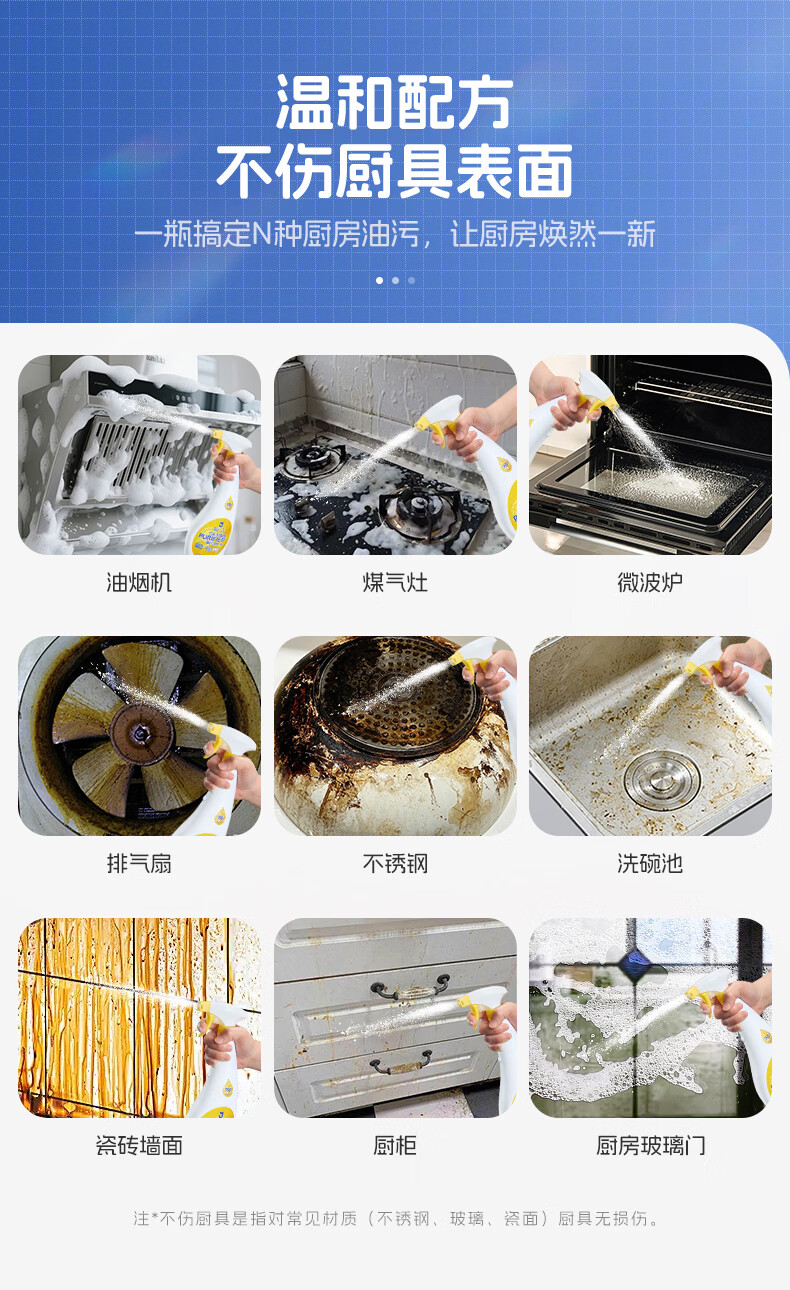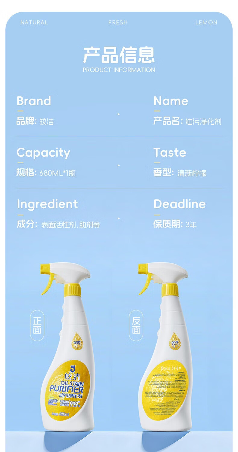 皎洁重油污清洗剂680ml厨房油污清洁剂油烟机清洁剂油污净柠檬清香