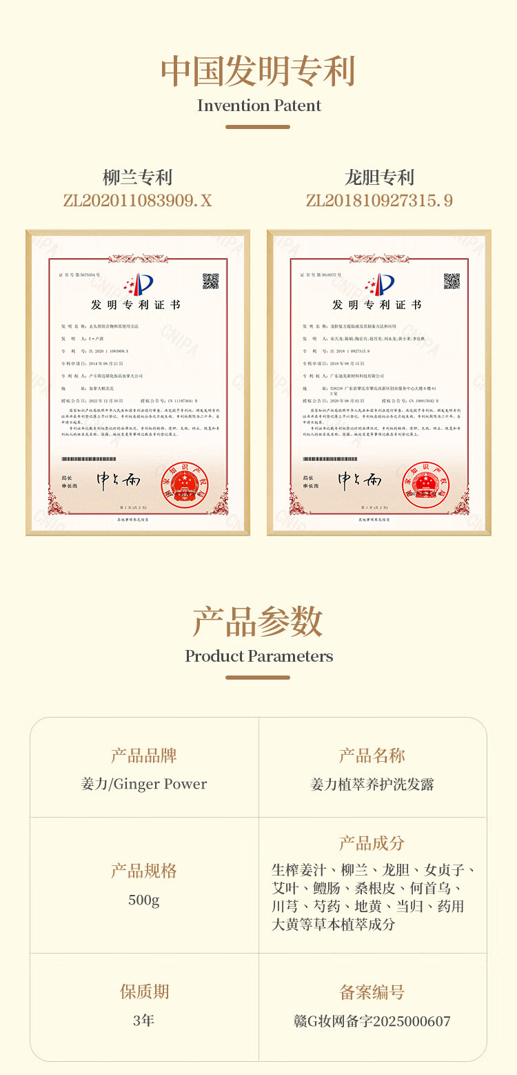 姜力植萃养护洗发露500g 去屑控油生姜洗发水滋养保湿 华润同款