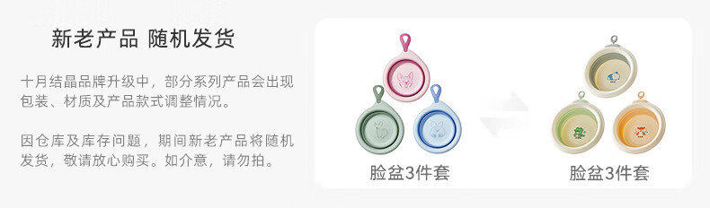 十月结晶婴儿可折叠脸盆新生婴儿洗脸洗屁屁盆便存放宝宝专用脸盆三件装