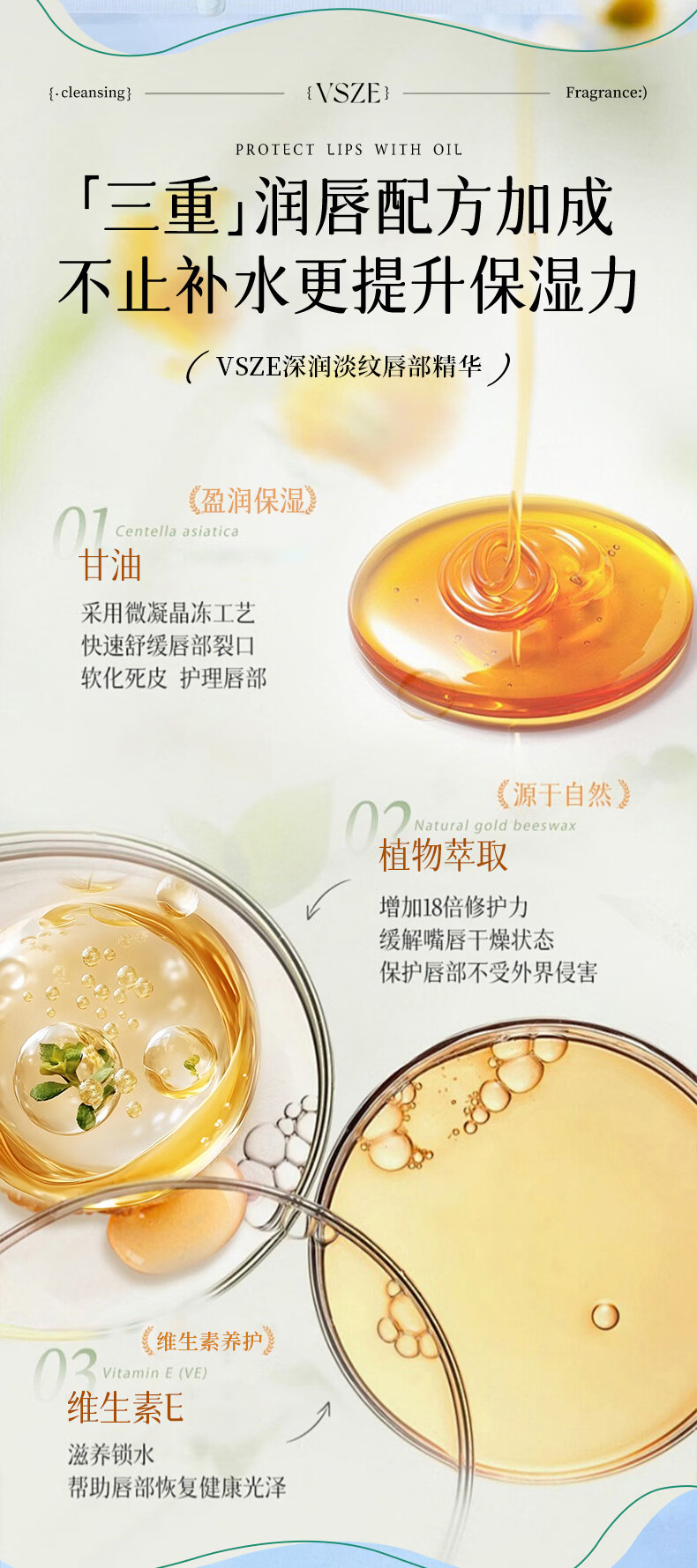 VSZE唇部精华油润唇膏秋冬补水保湿滋润淡化唇纹去死皮防干裂护理女 【深润淡纹唇部】维生素E唇部润唇膏8.5ml×3支