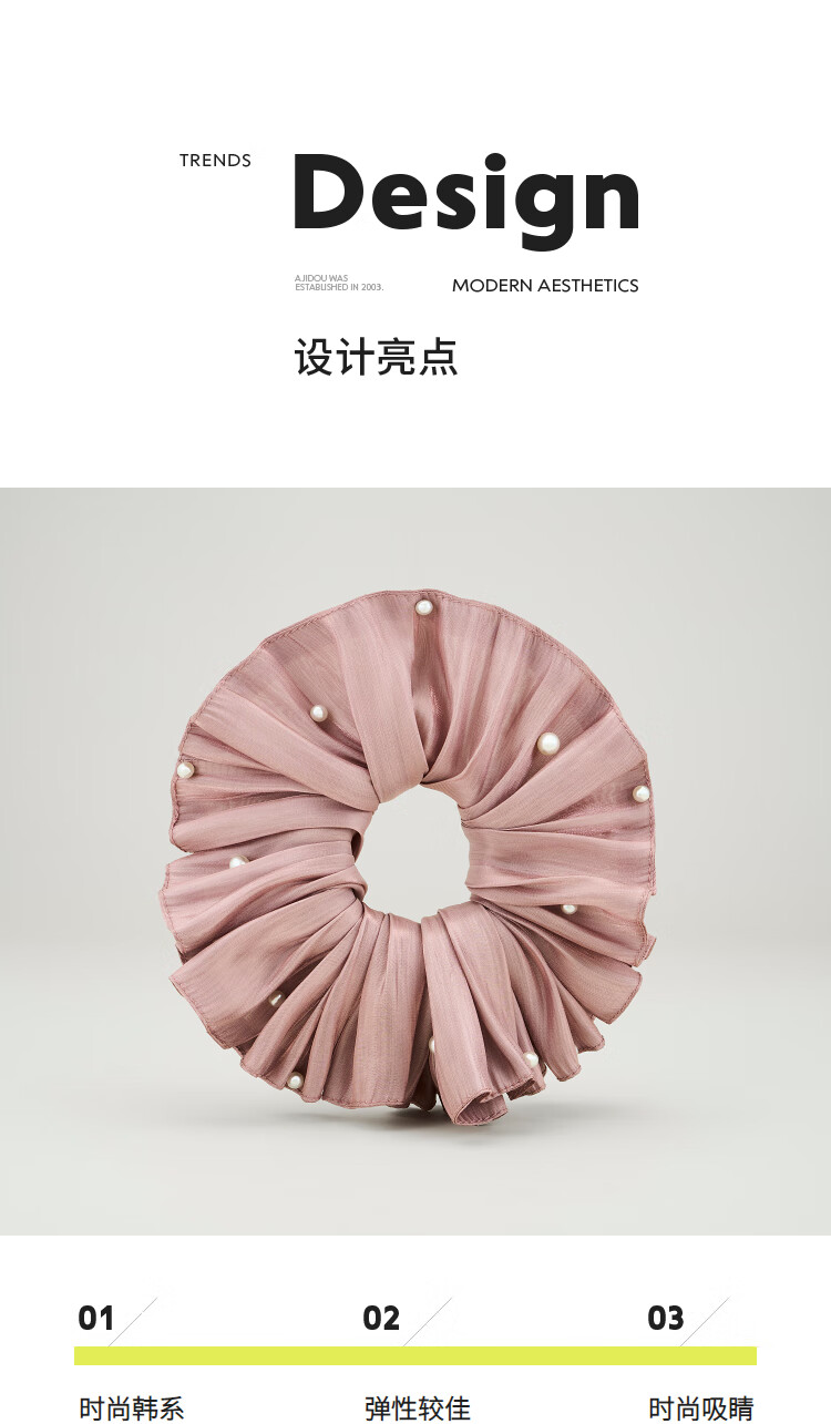 阿吉豆柔美时尚发圈奶油甜心芭蕾风丝带蝴蝶结大肠发圈超仙森系生日礼物 樱花粉 1个