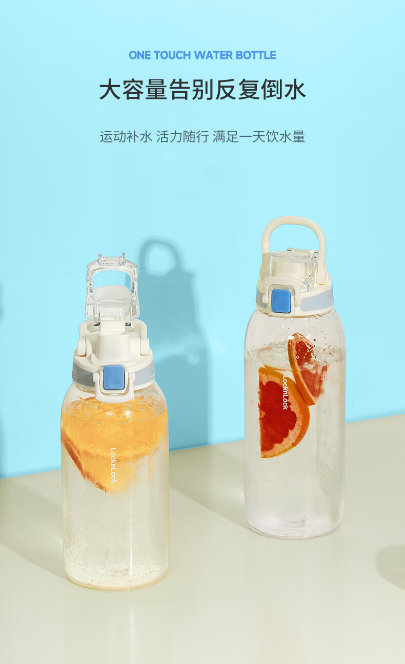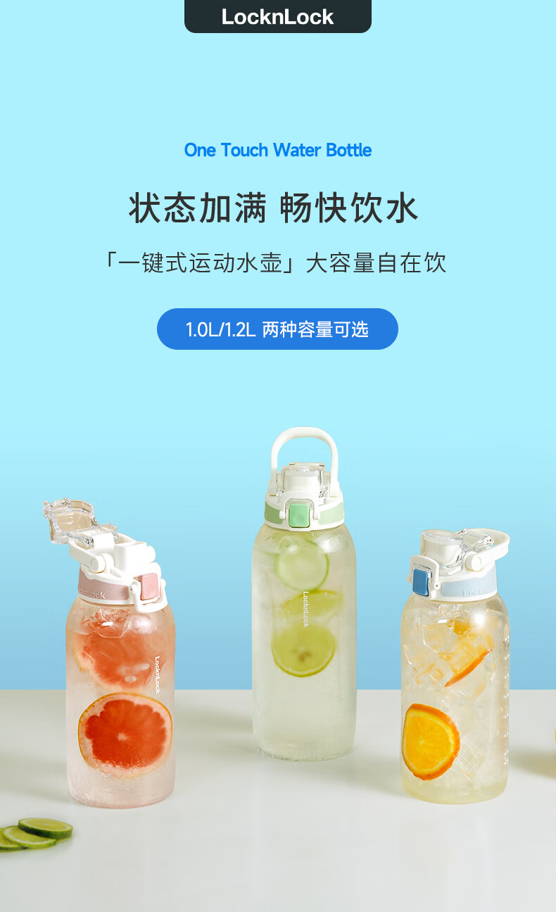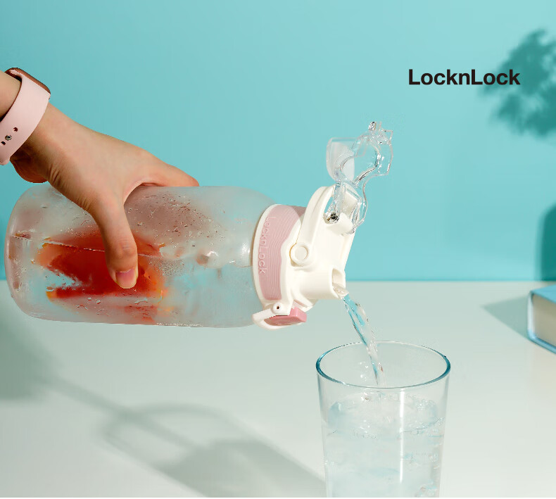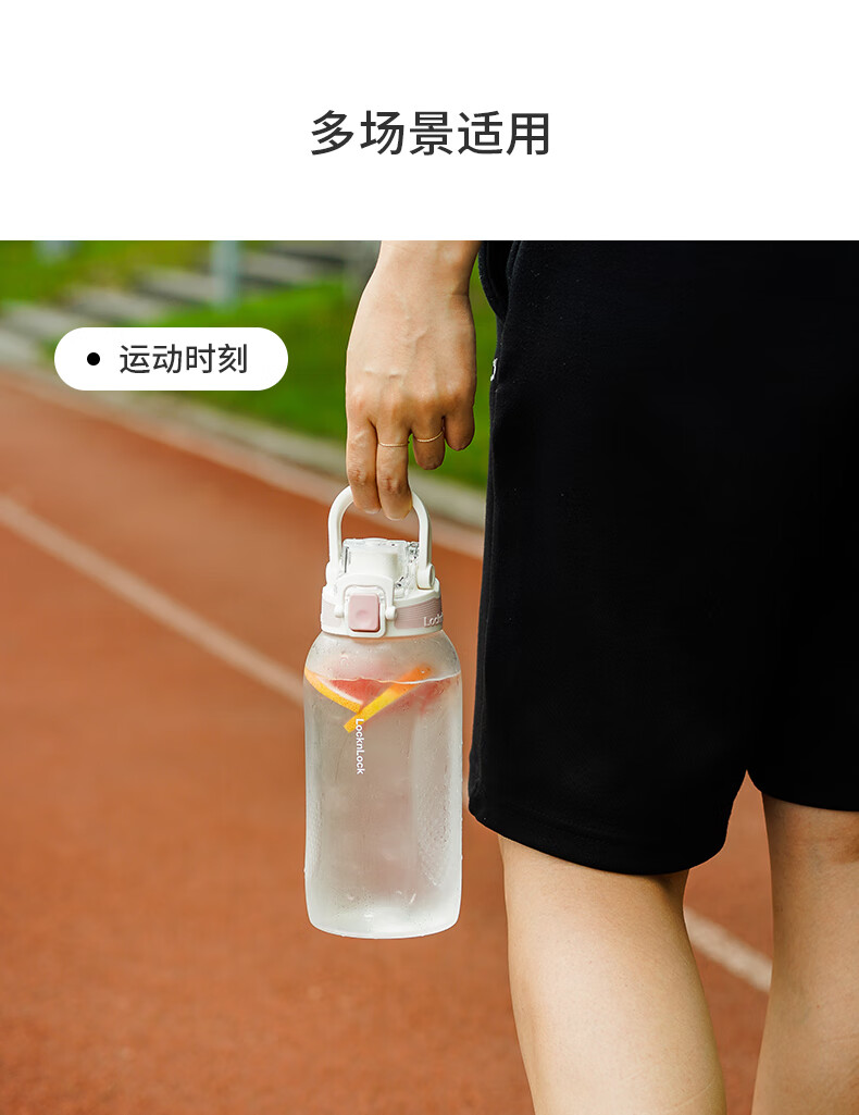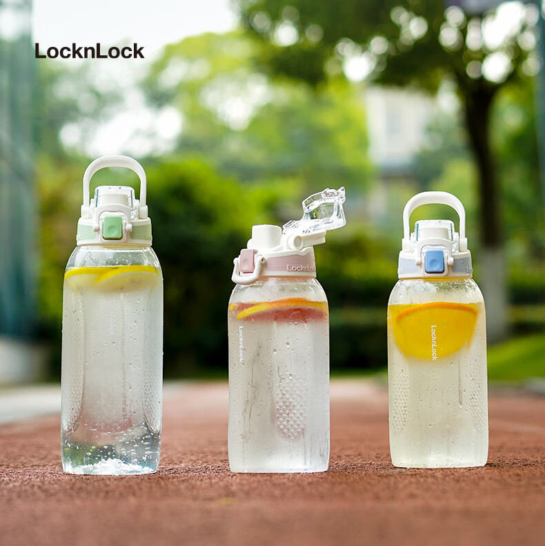 乐扣乐扣(LOCK&LOCK)户外大容量运动水壶水杯子塑料杯便携健身水杯 蜜桃粉1.2升