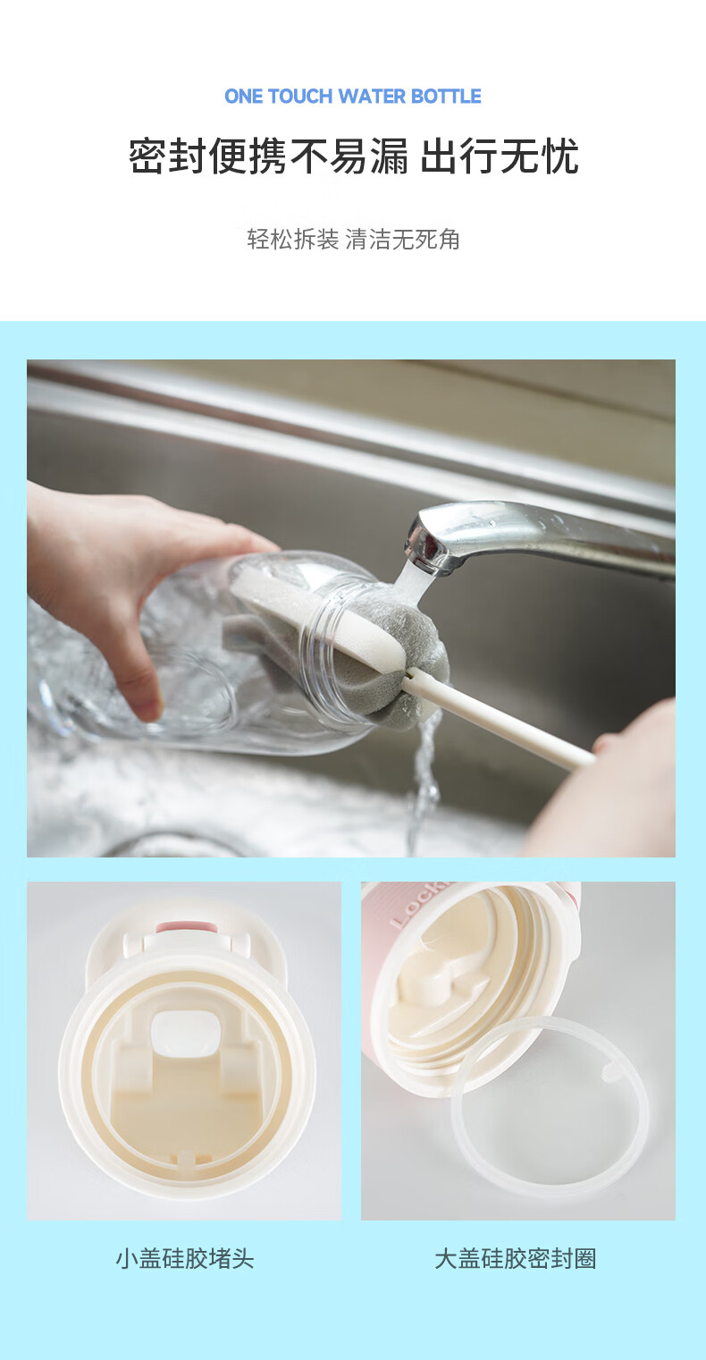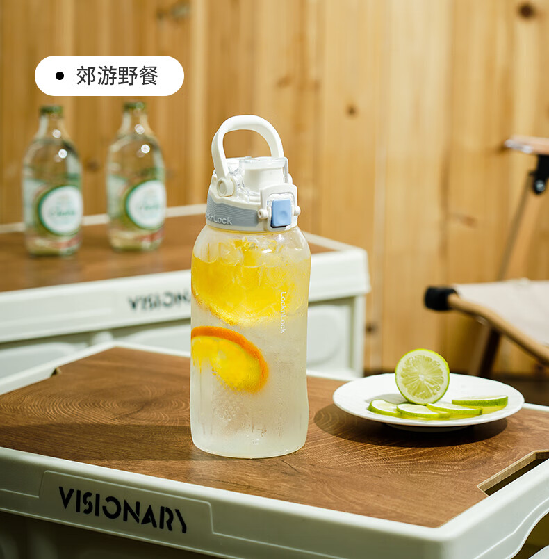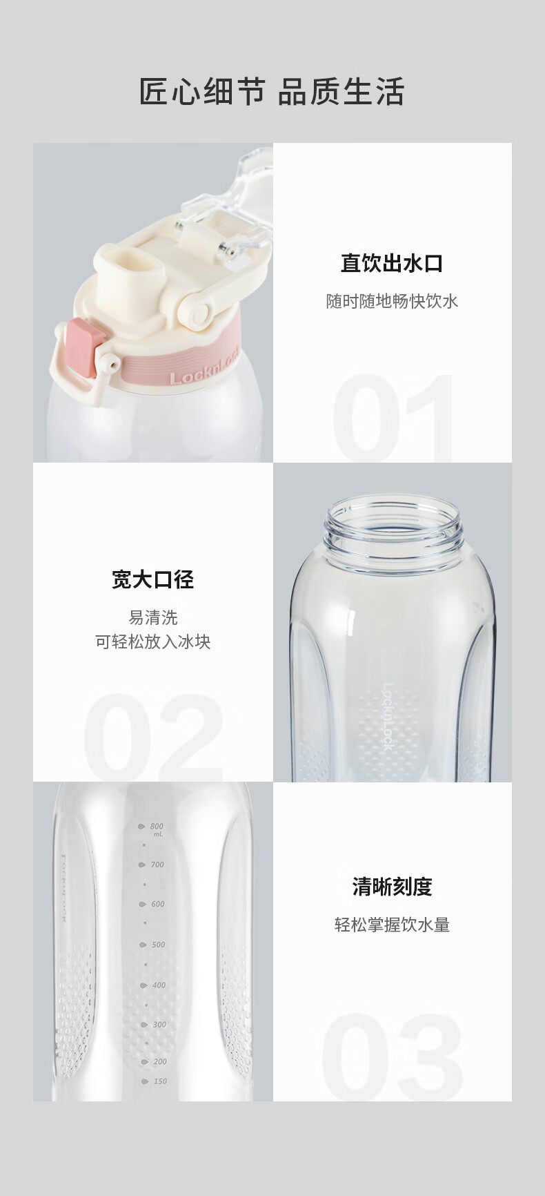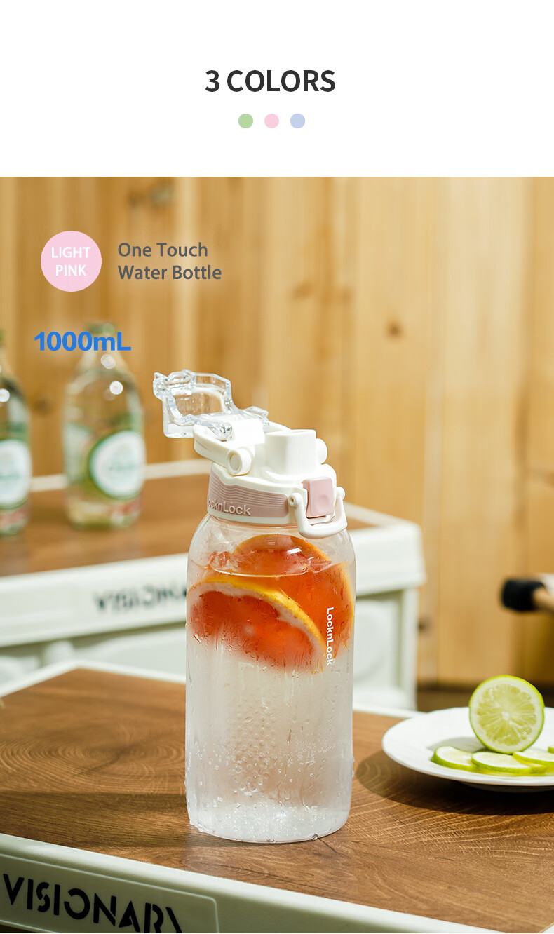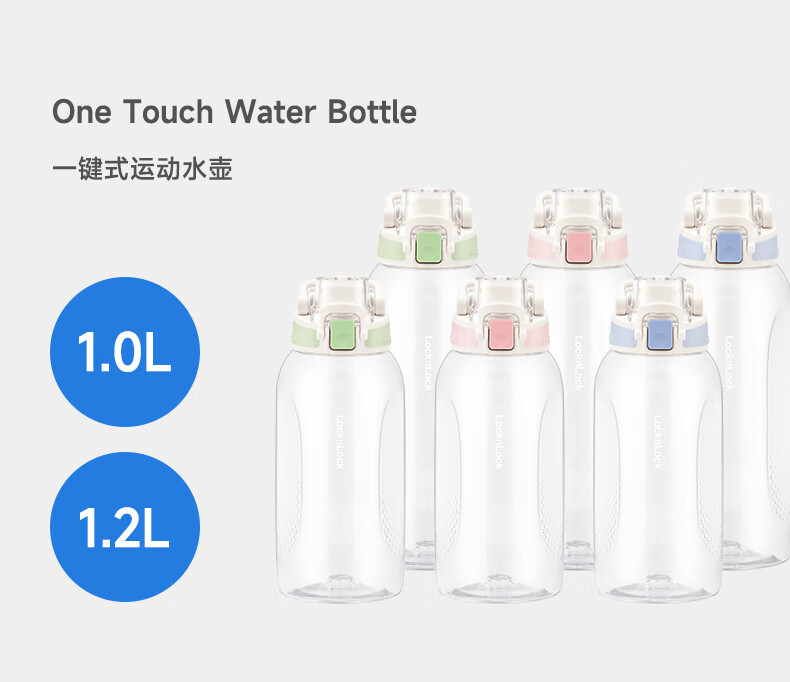 乐扣乐扣(LOCK&LOCK)户外大容量运动水壶水杯子塑料杯便携健身水杯 蜜桃粉1.2升