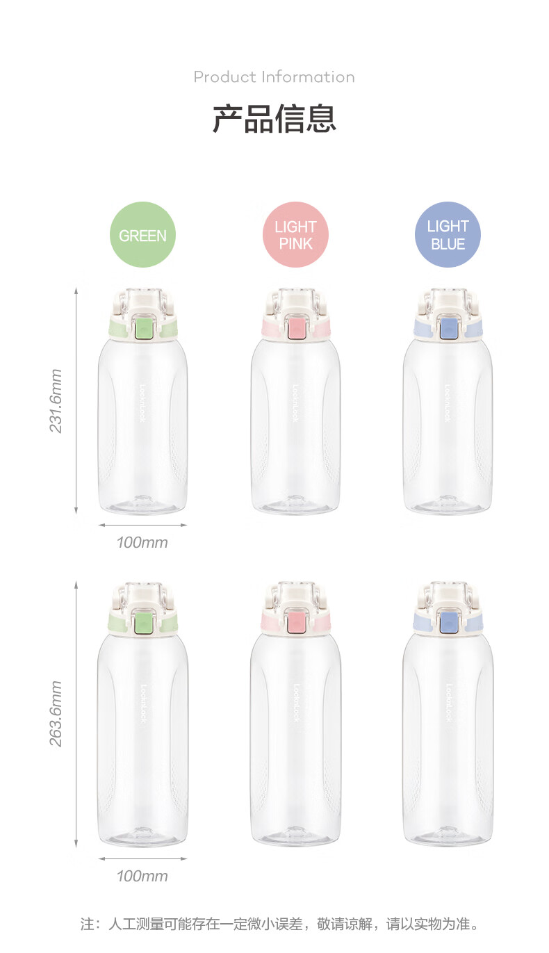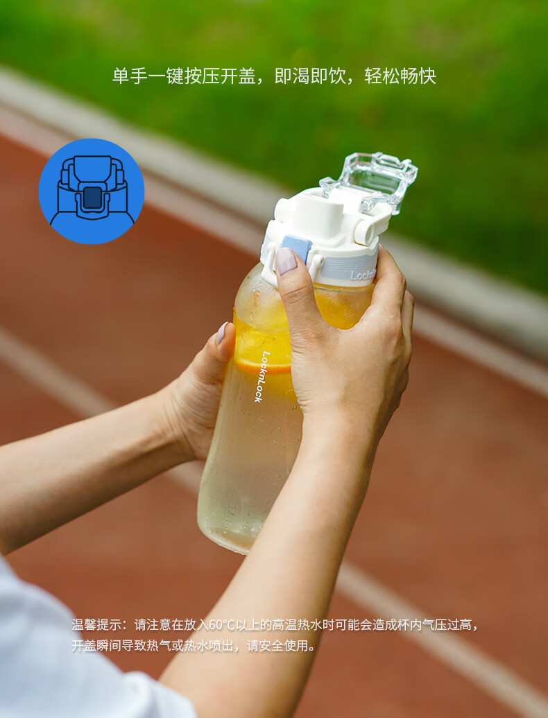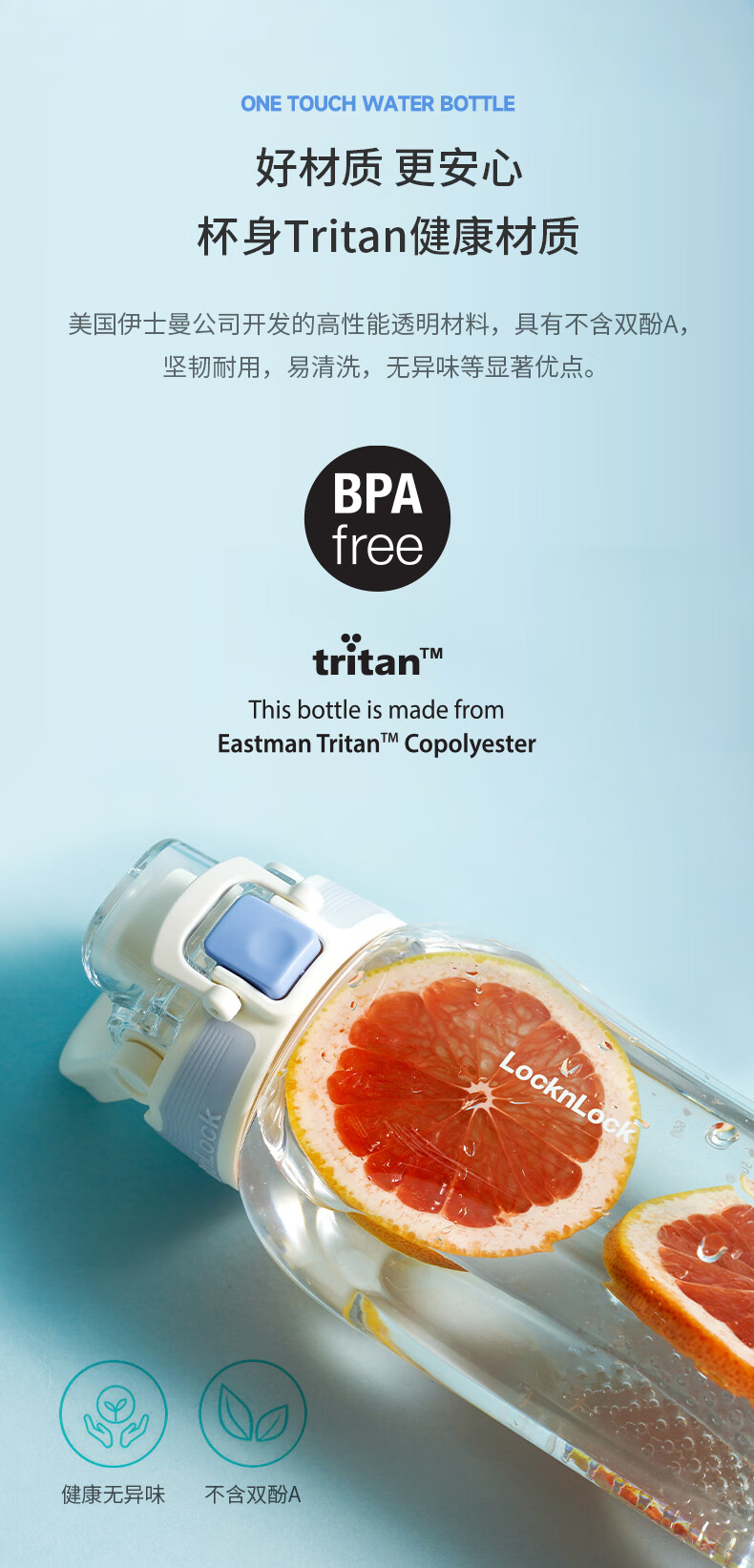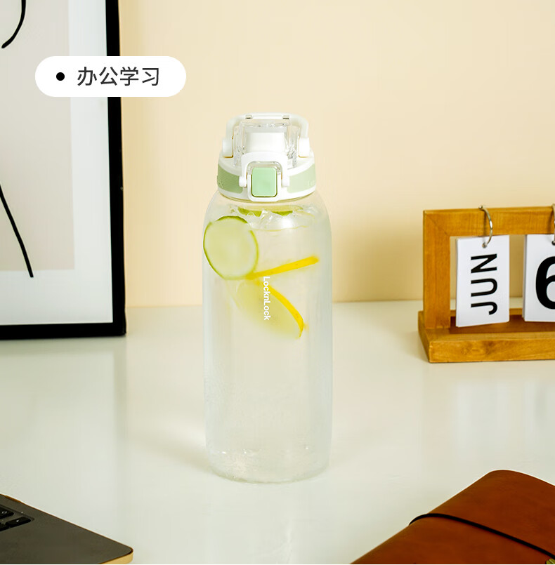 乐扣乐扣(LOCK&LOCK)户外大容量运动水壶水杯子塑料杯便携健身水杯 蜜桃粉1.2升