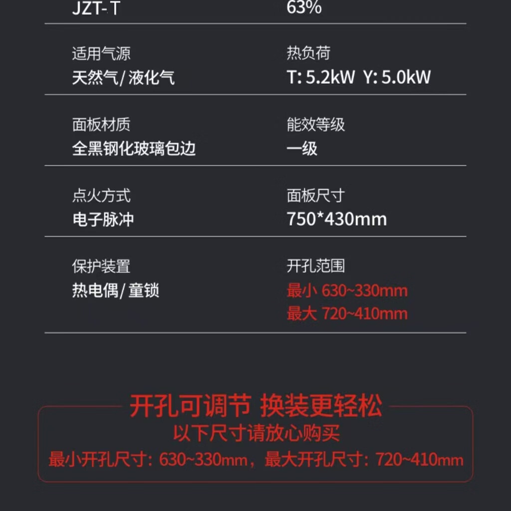 荣胜750大面板天然气灶5.2KW大火力家用燃气灶天然气双灶台嵌两用灶一级能效猛火灶具天然气灶 天然气
