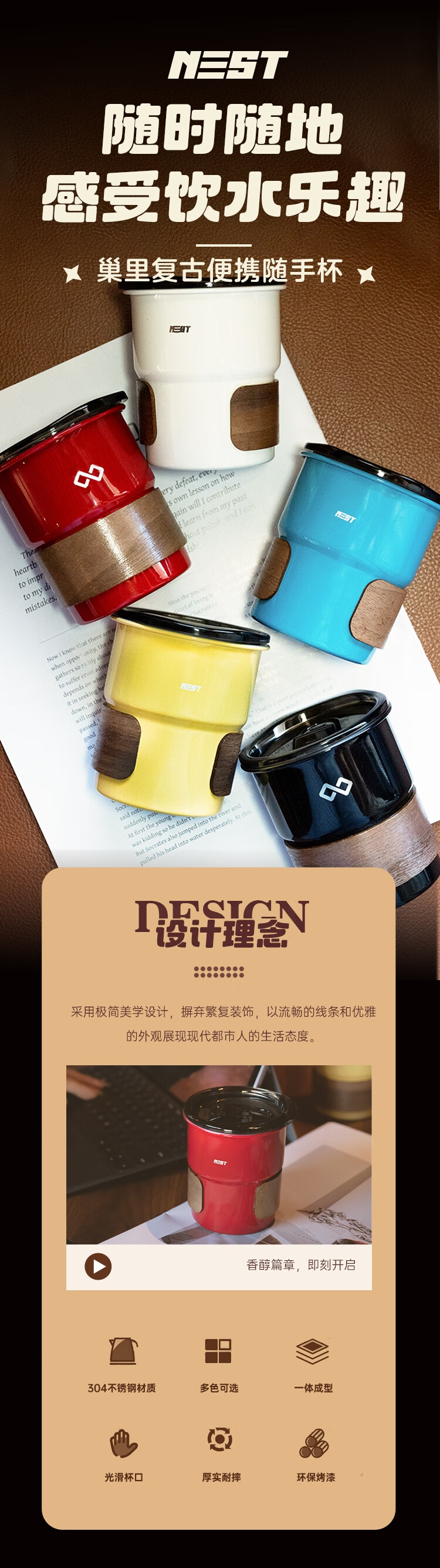 巢里复古便携随手竹节杯304不锈钢户外露营迷你雪糕冰杯家居馆蓝