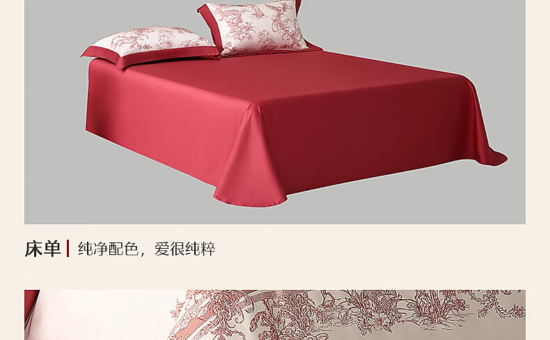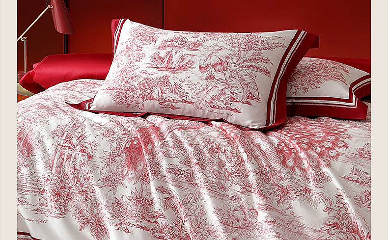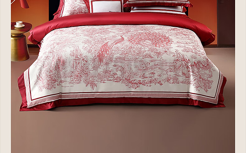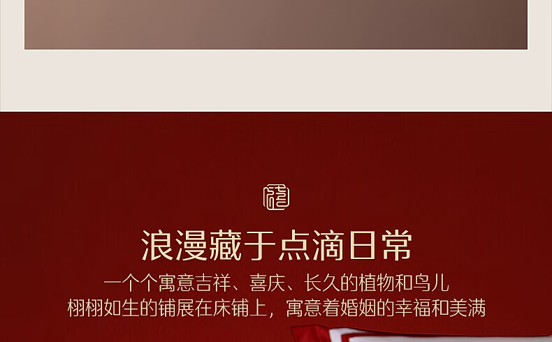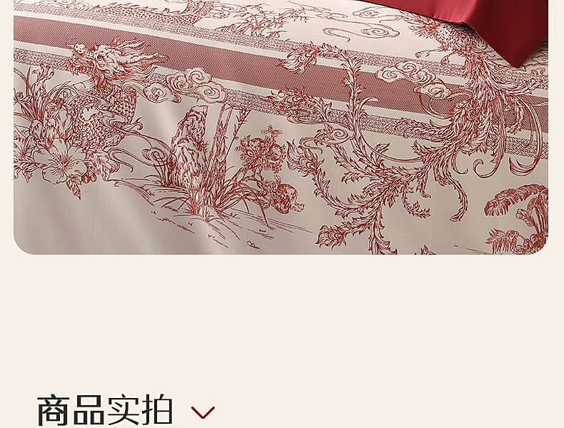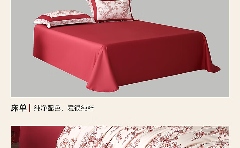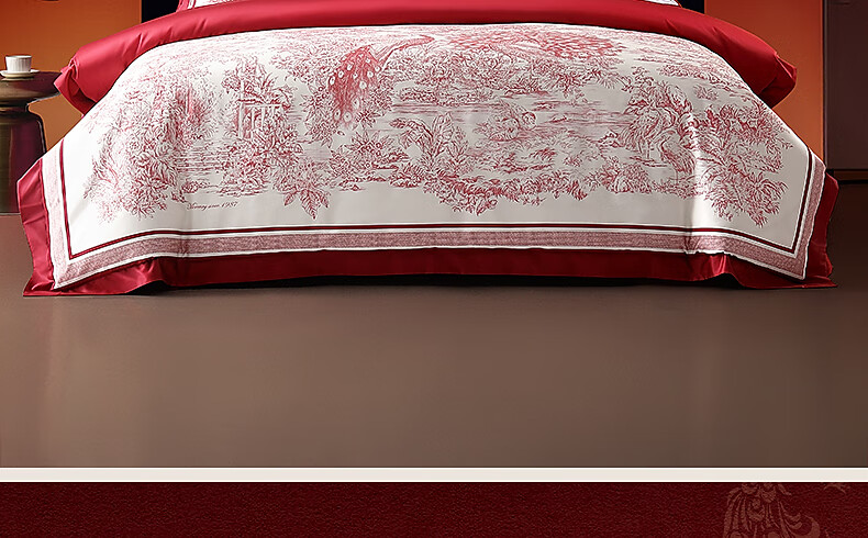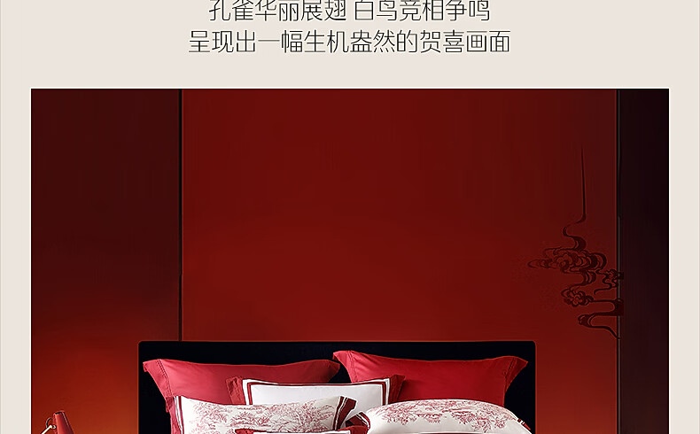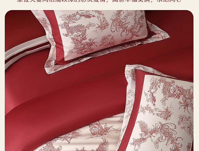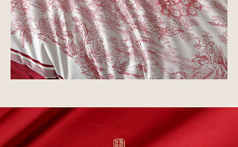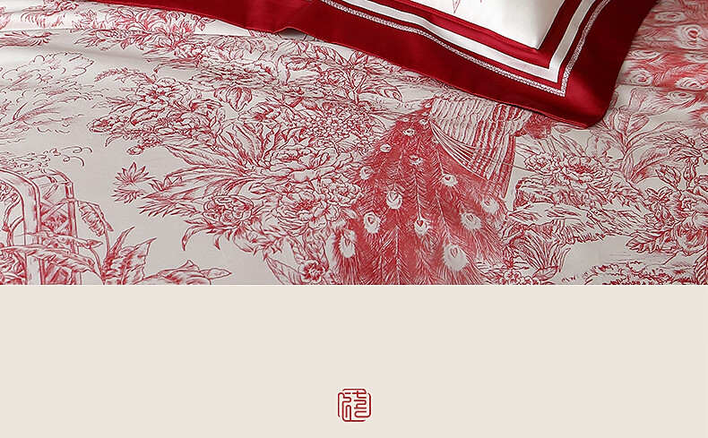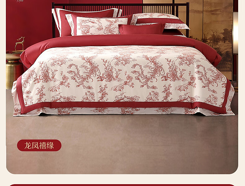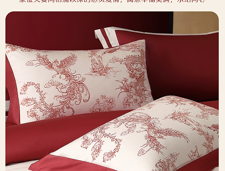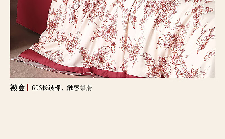 水星家纺 结婚床上四件套/多件套 长绒棉婚庆套件 大红结婚被套床单枕套 [百鸟印花]四件套-百鸟来仪 1.5米床(200*230cm被套)