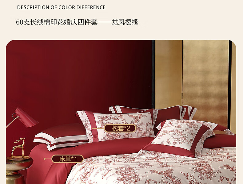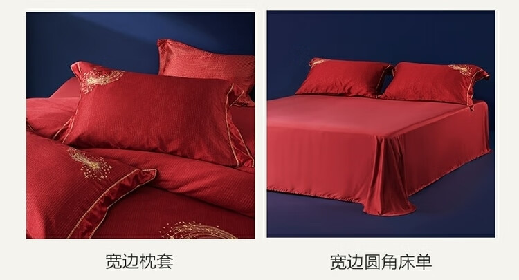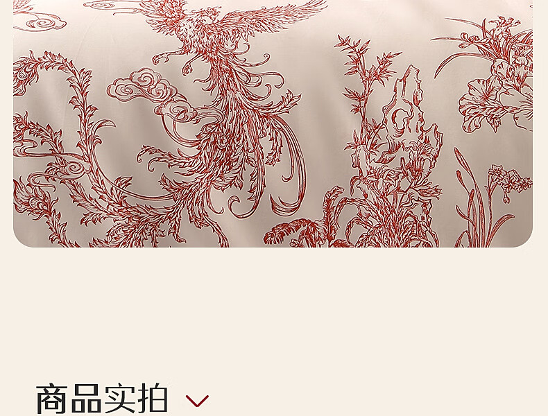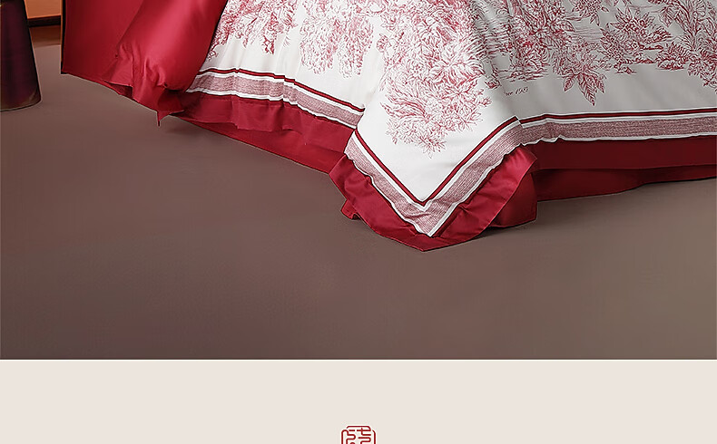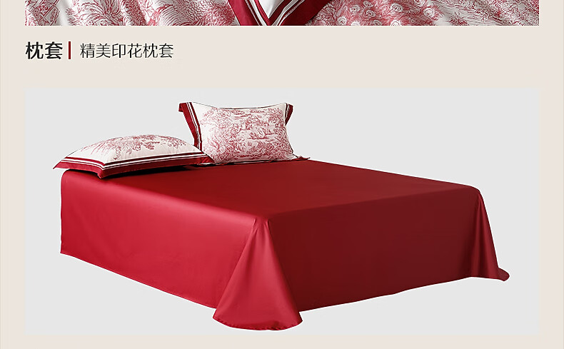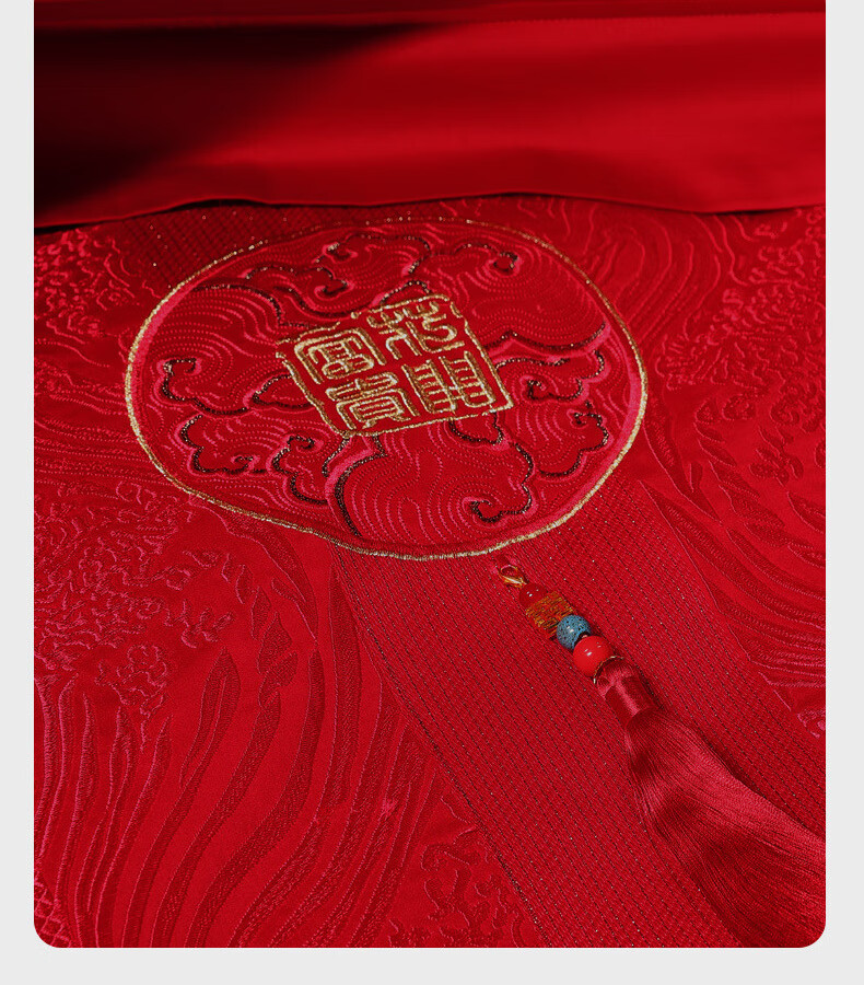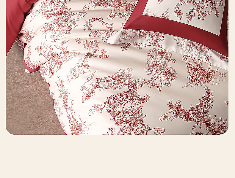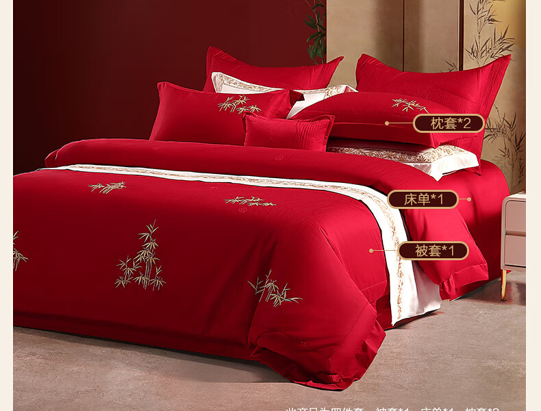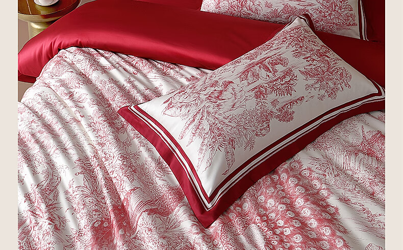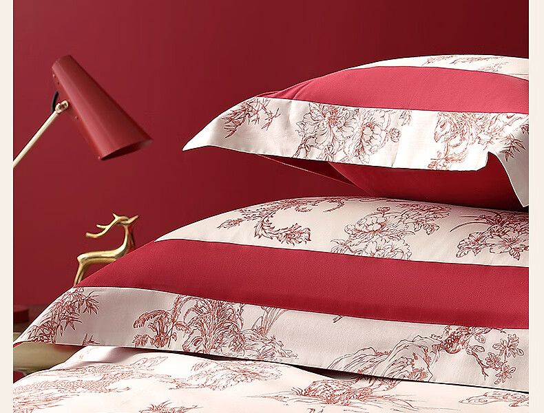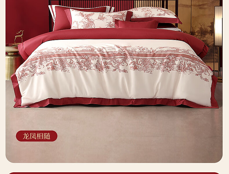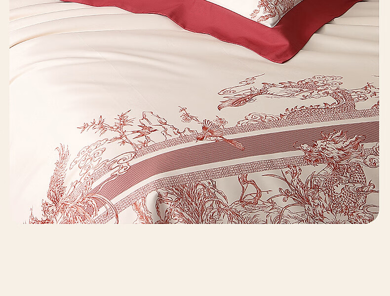 水星家纺 结婚床上四件套/多件套 长绒棉婚庆套件 大红结婚被套床单枕套 [百鸟印花]四件套-百鸟来仪 1.5米床(200*230cm被套)