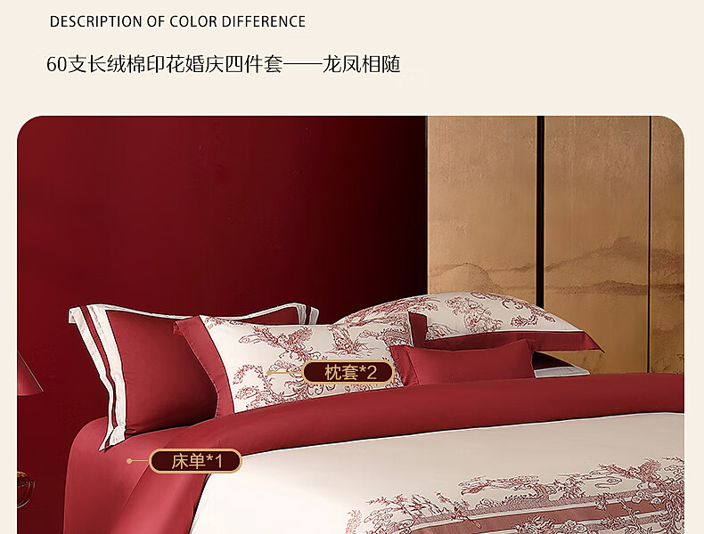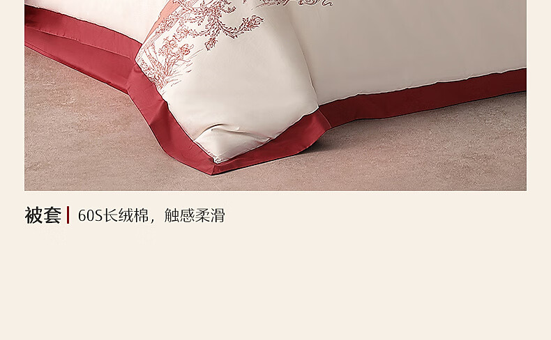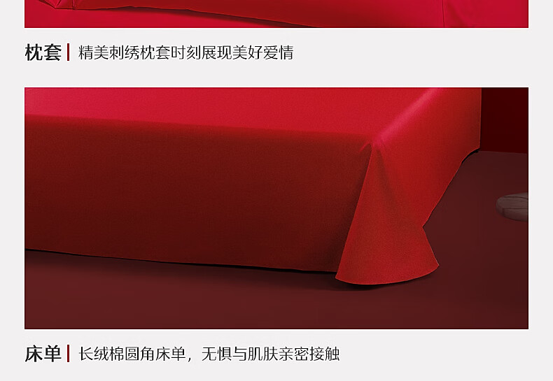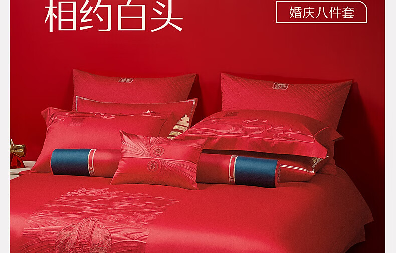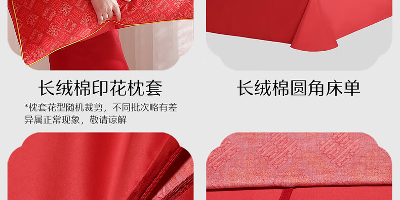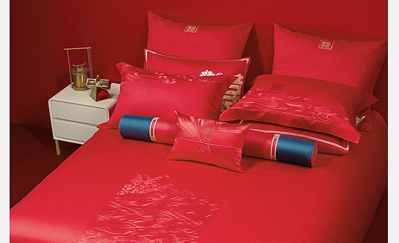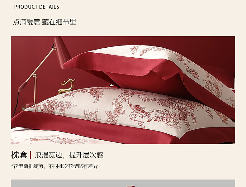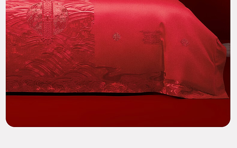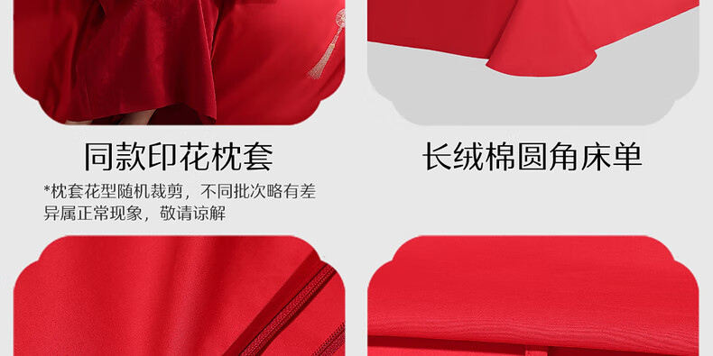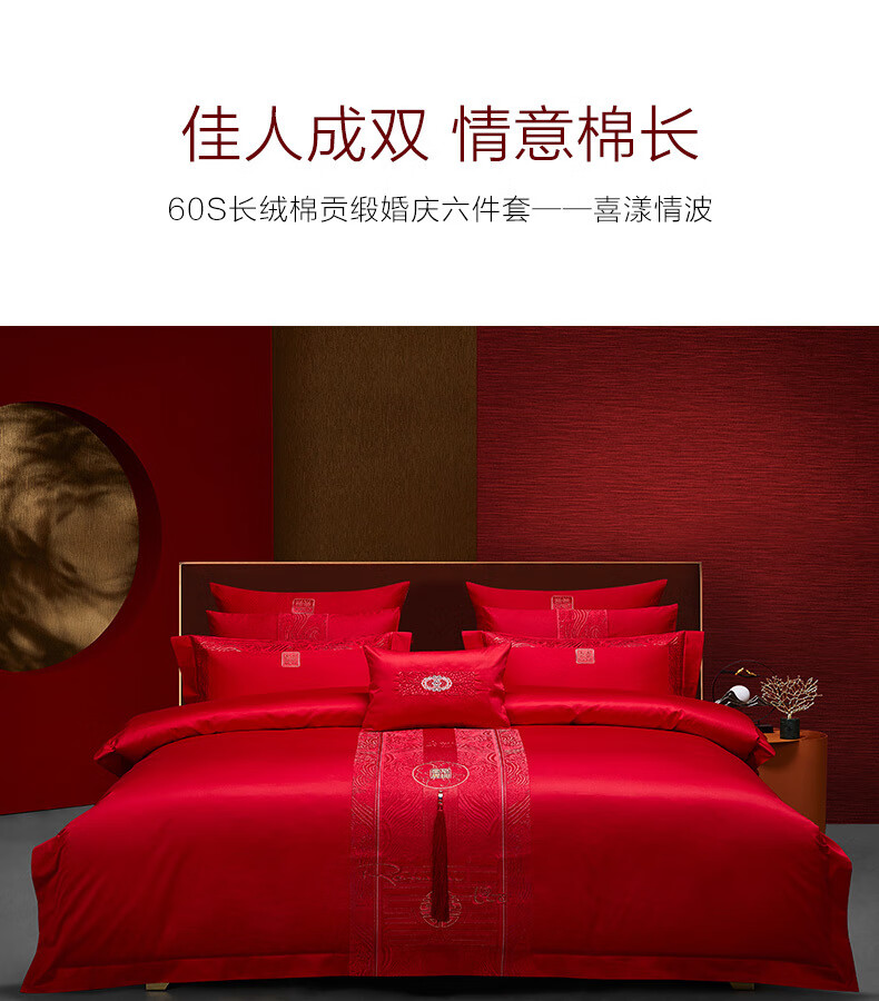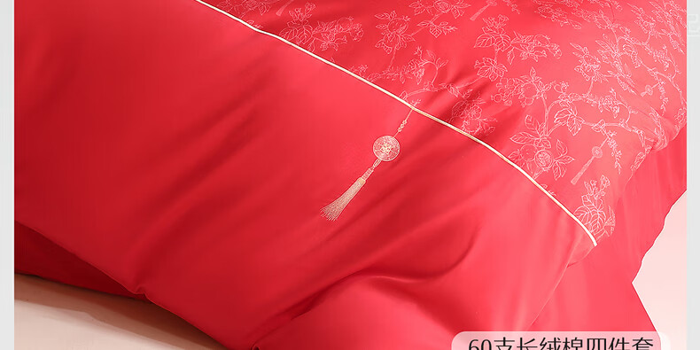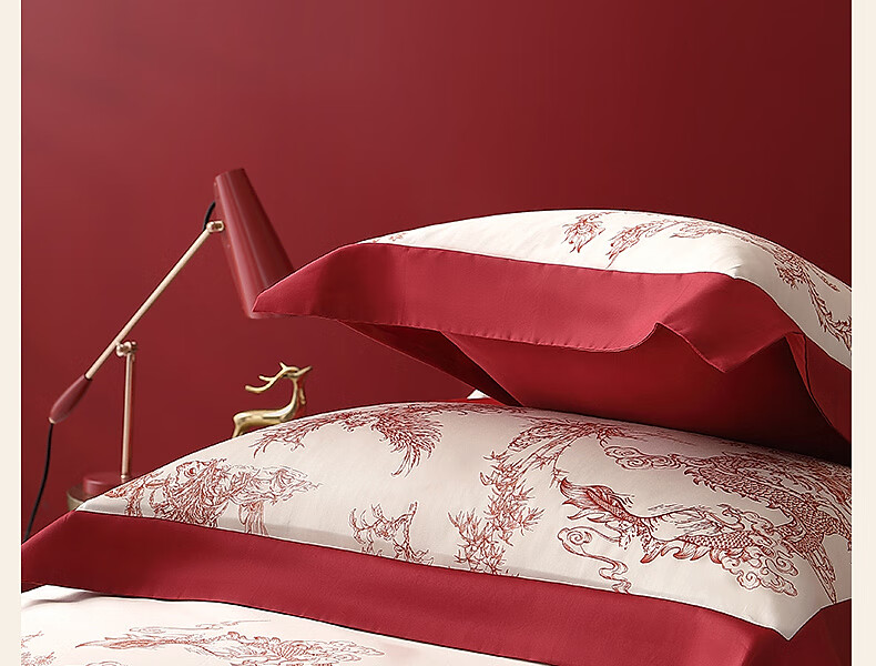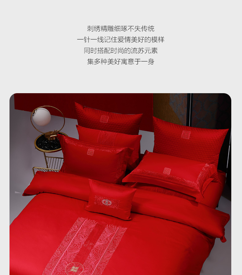 水星家纺 结婚床上四件套/多件套 长绒棉婚庆套件 大红结婚被套床单枕套 [百鸟印花]四件套-百鸟来仪 1.5米床(200*230cm被套)