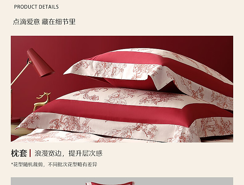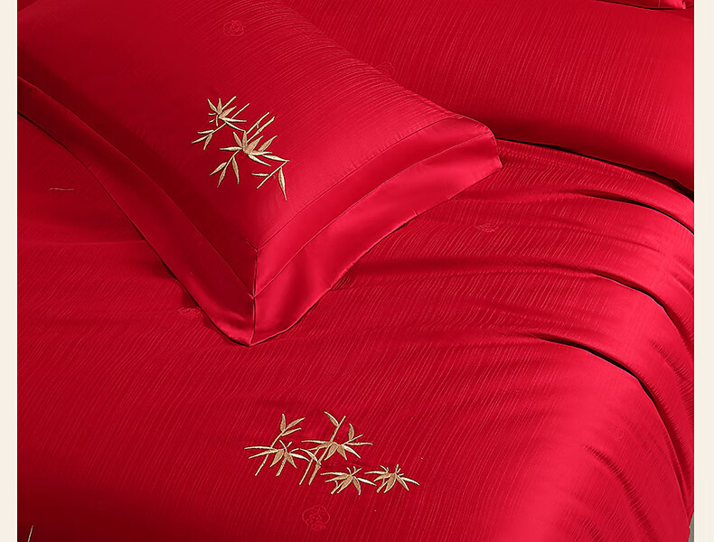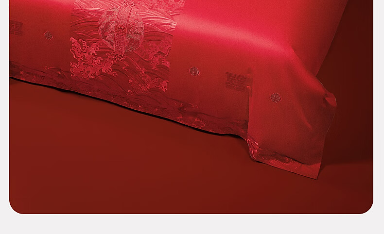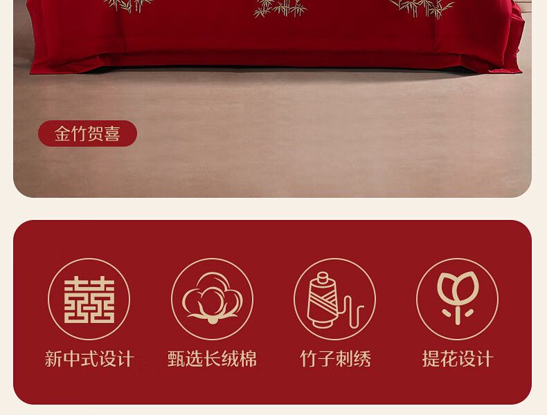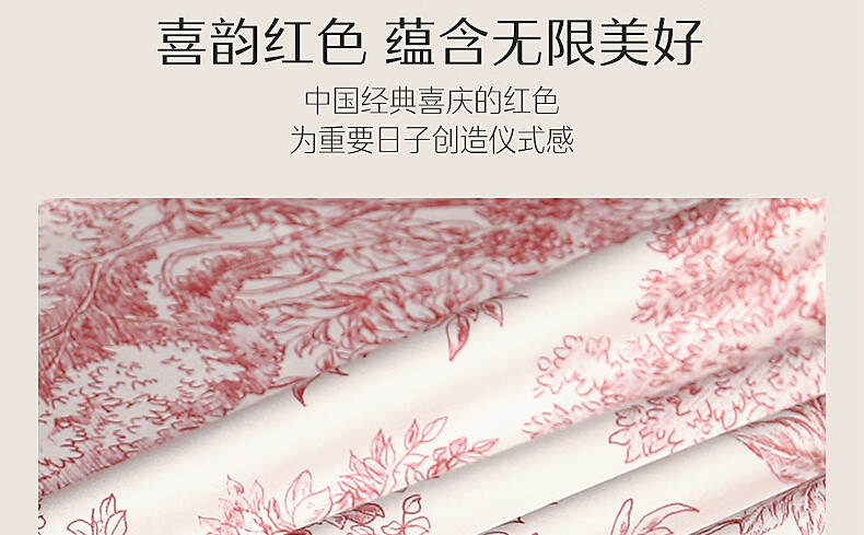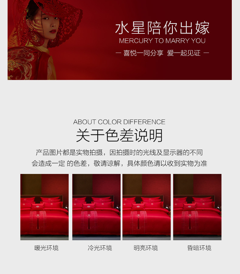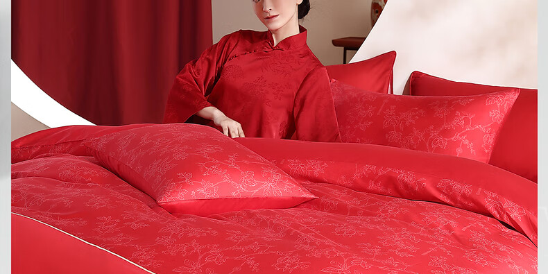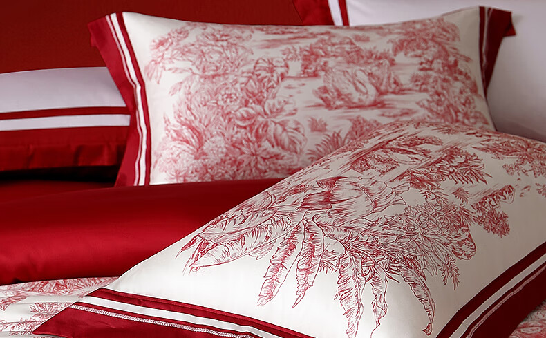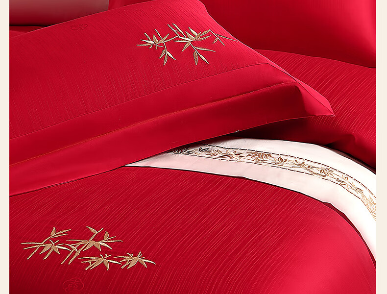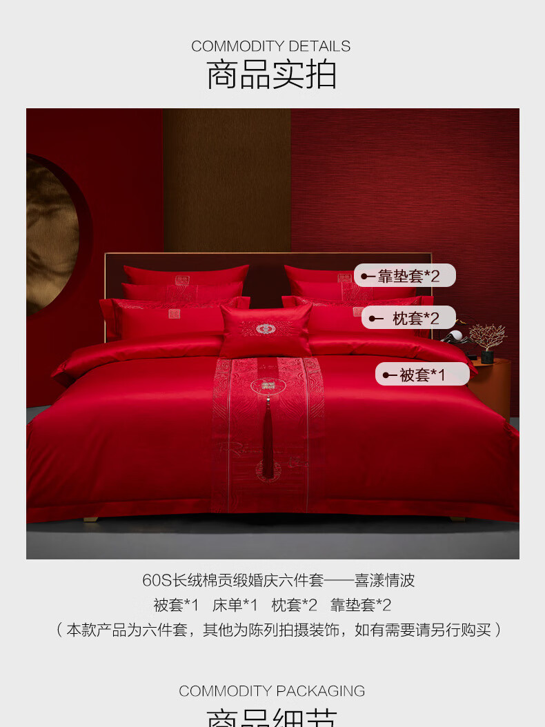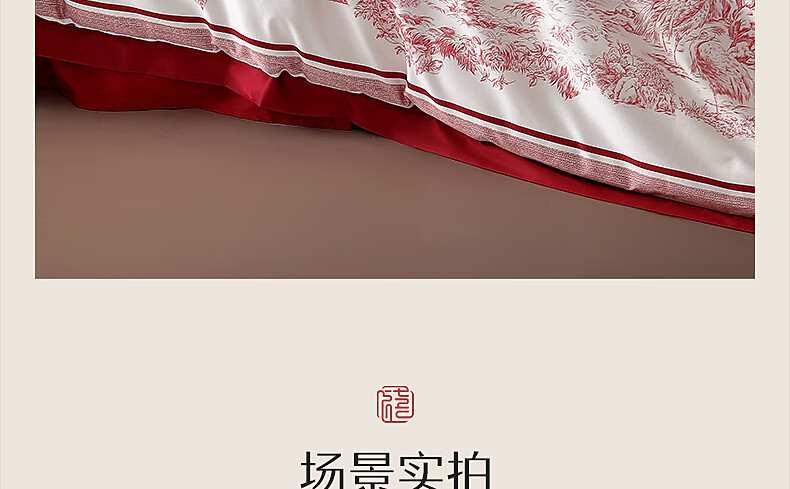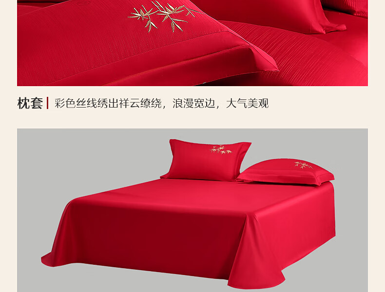 水星家纺 结婚床上四件套/多件套 长绒棉婚庆套件 大红结婚被套床单枕套 [百鸟印花]四件套-百鸟来仪 1.5米床(200*230cm被套)